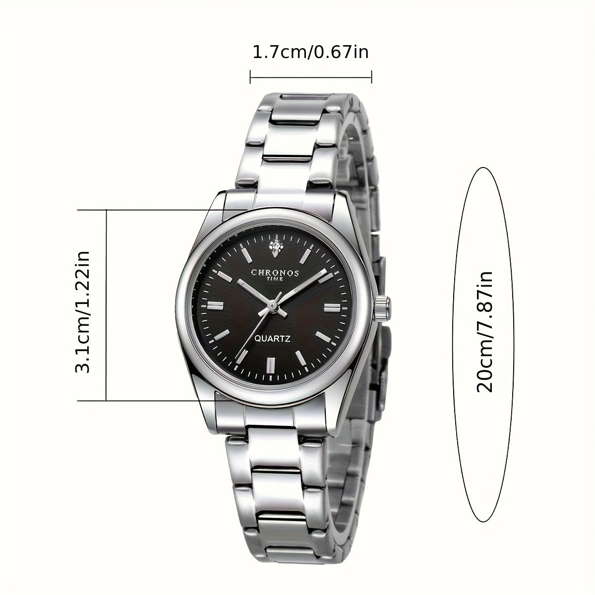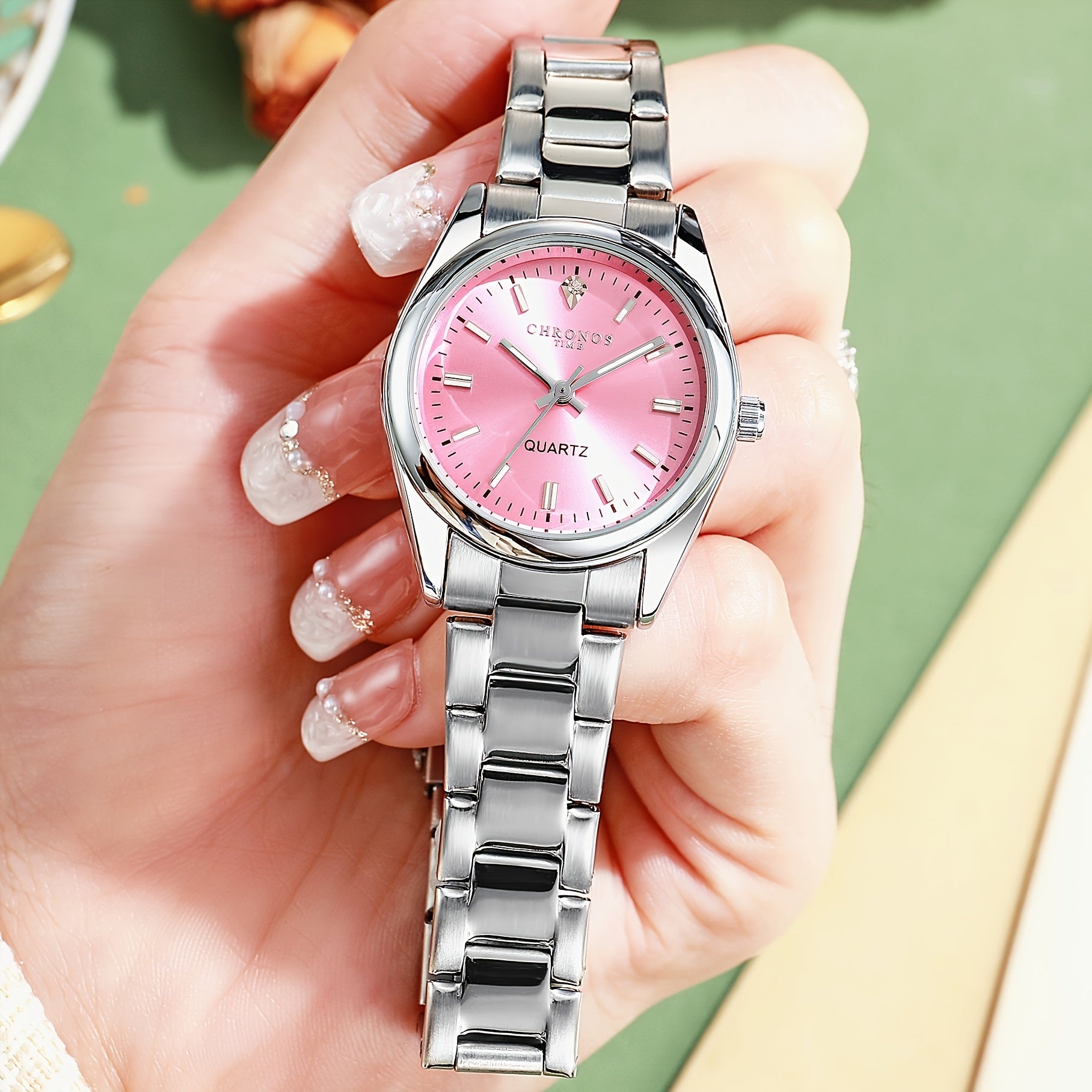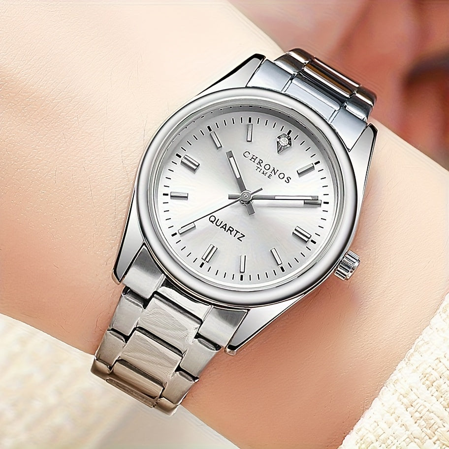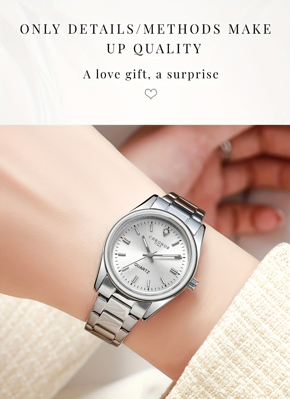 CHRONOS Women'S Quartz Watch - Elegant Stainless Steel Strap, Luminous, Round Dial, Business Casual Style, Perfect for Commuting and Casual Attire, Date Display, Pointer Display, Zinc Alloy Case, Button Battery Powered, Timer