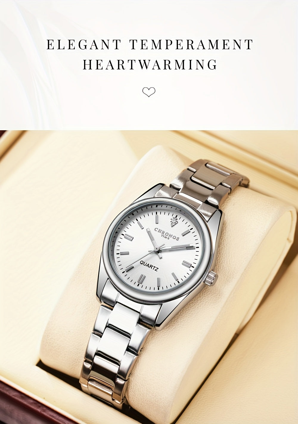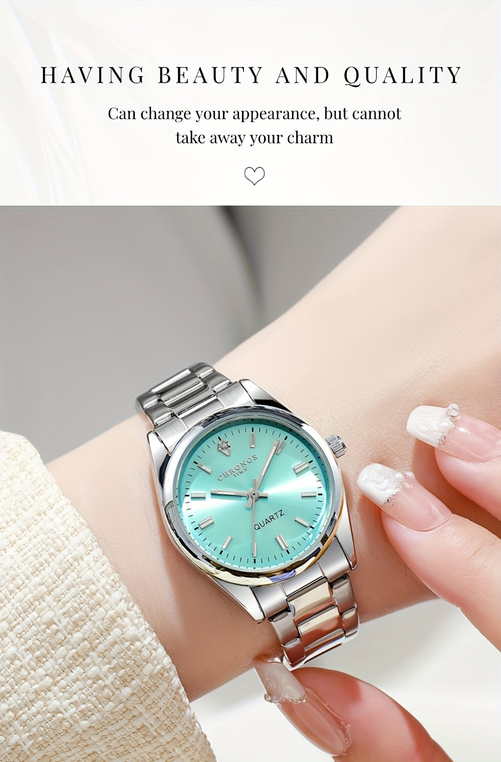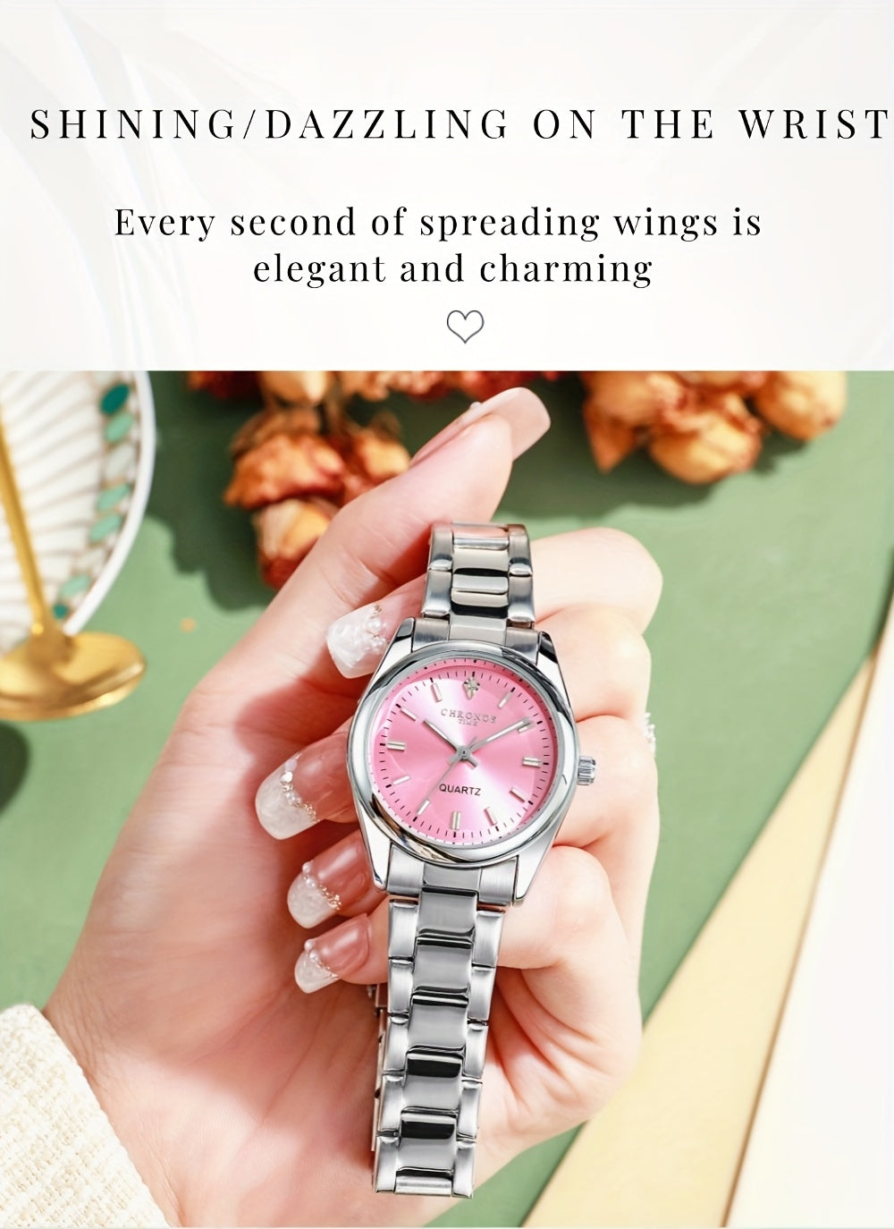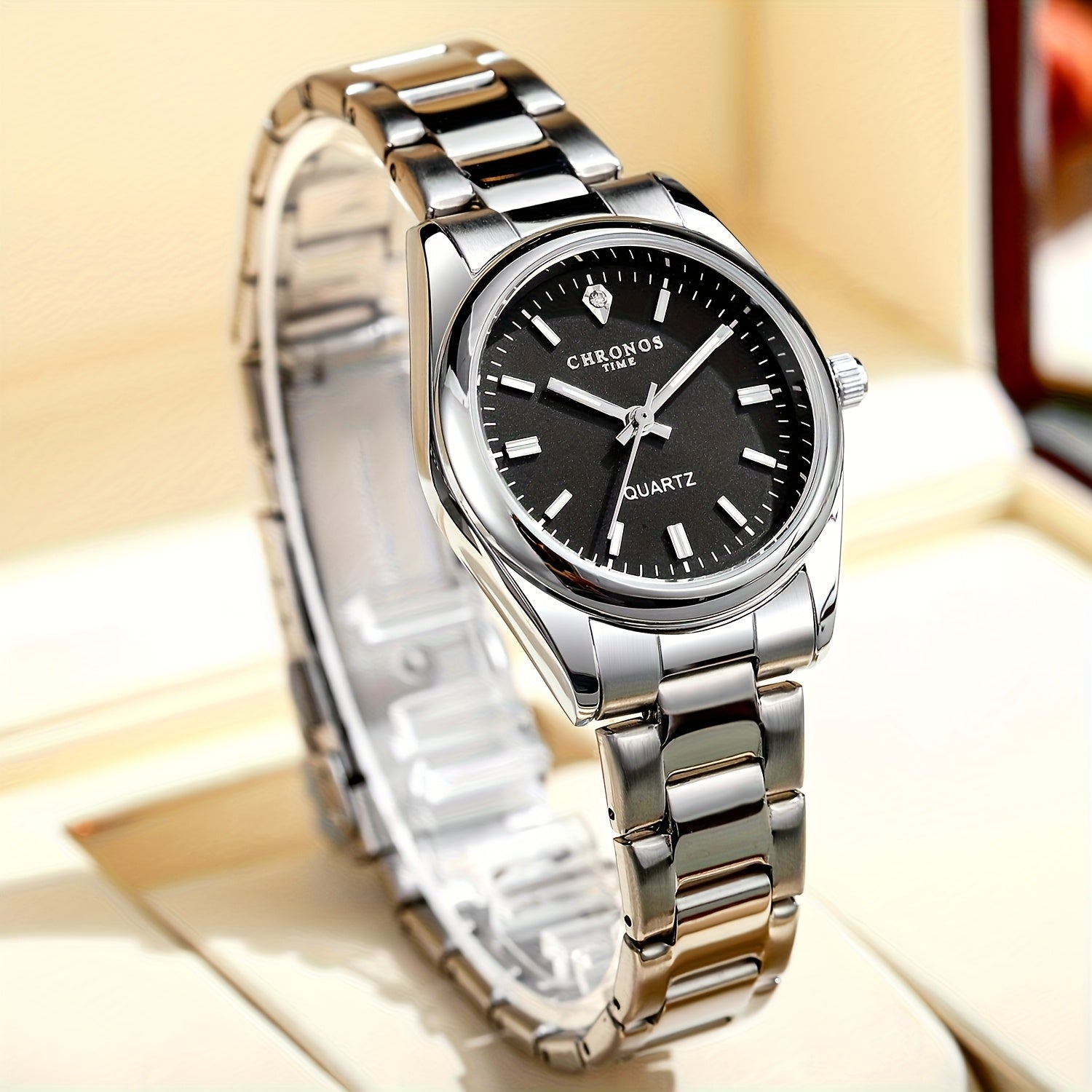 CHRONOS Women'S Quartz Watch - Elegant Stainless Steel Strap, Luminous, Round Dial, Business Casual Style, Perfect for Commuting and Casual Attire, Date Display, Pointer Display, Zinc Alloy Case, Button Battery Powered, Timer