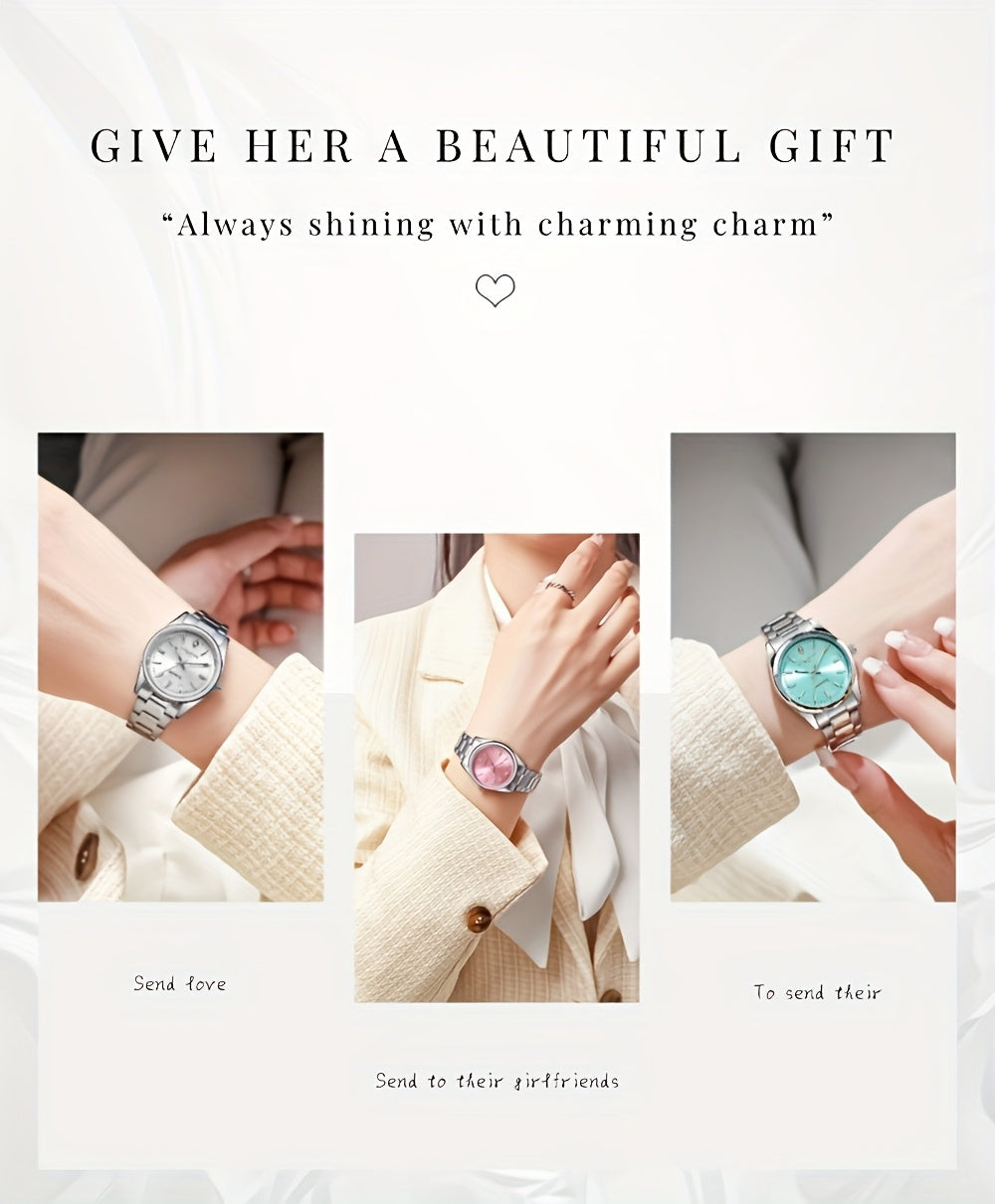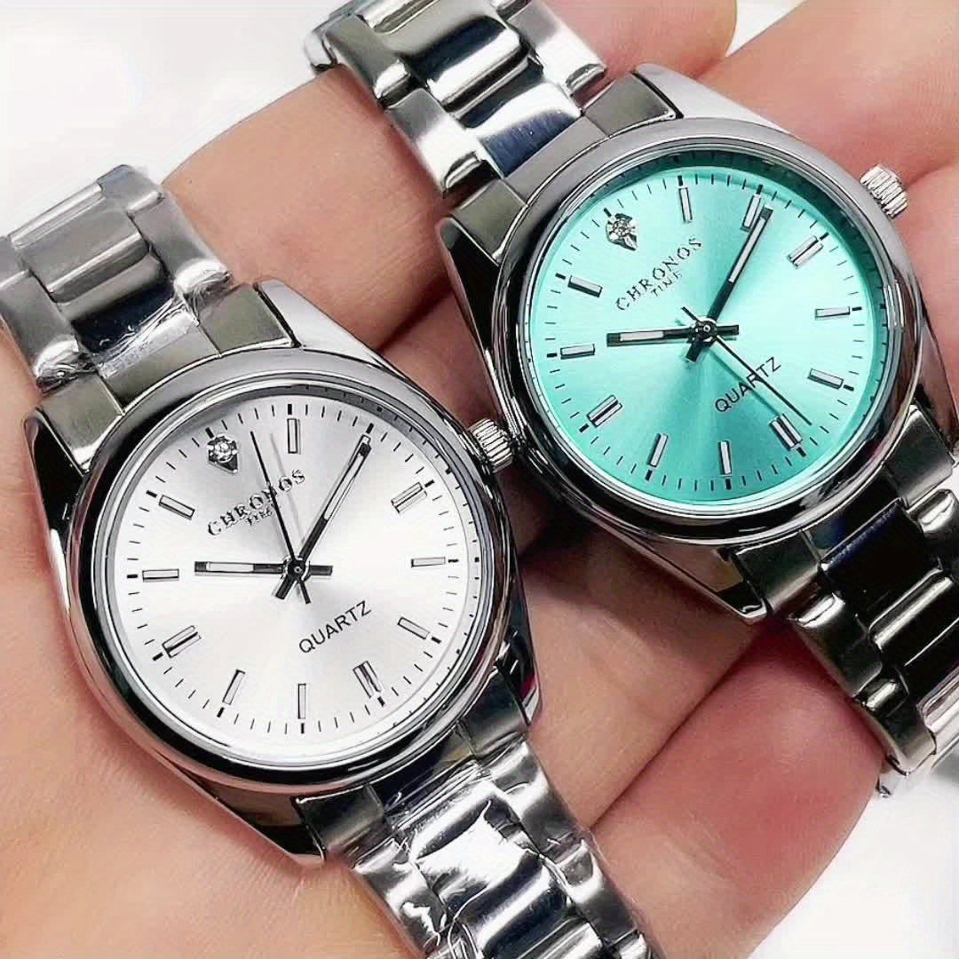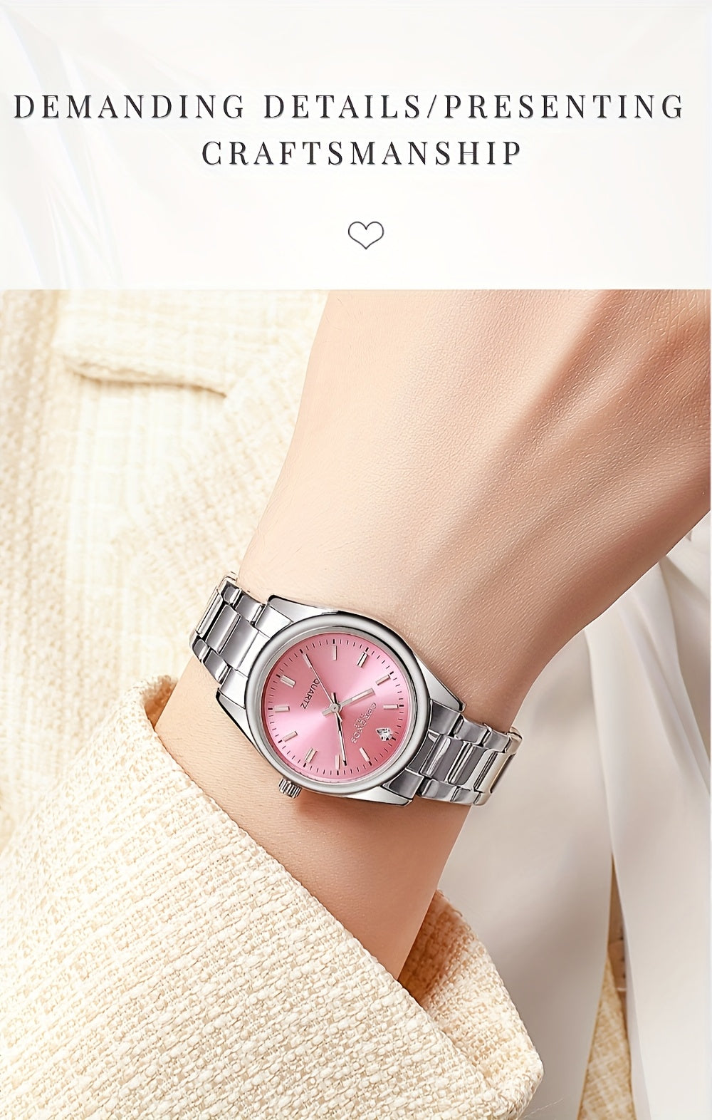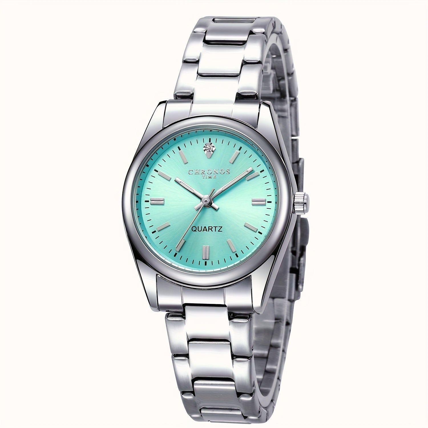CHRONOS Women'S Quartz Watch - Elegant Stainless Steel Strap, Luminous, Round Dial, Business Casual Style, Perfect for Commuting and Casual Attire, Date Display, Pointer Display, Zinc Alloy Case, Button Battery Powered, Timer