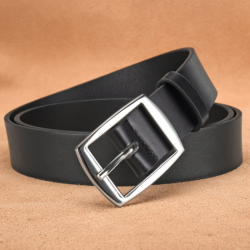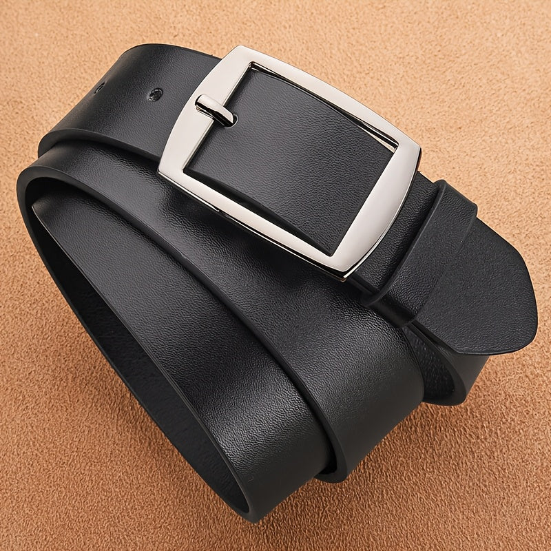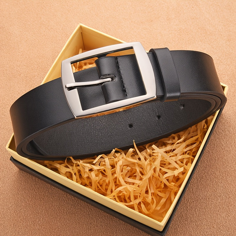 CKIRUV Men'S Elegant Faux Leather Belt with Alloy Buckle, Fashionable Business Casual Accessory, Ideal Valentine's/Mardi Gras/Campus Gift, Black