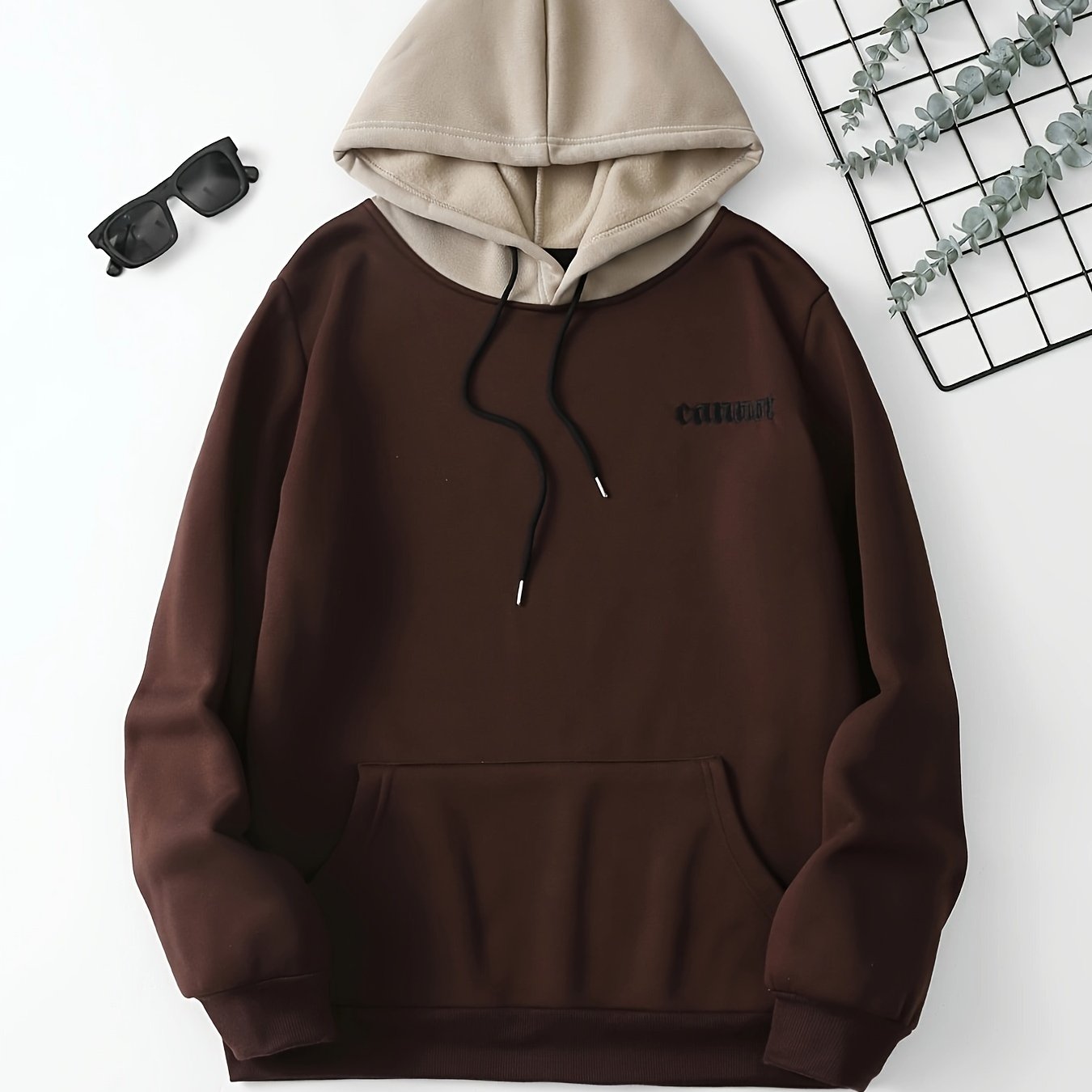 Color Block Cool Hoodies For Men, Men's Casual Graphic Design Hooded Sweatshirt Streetwear For Winter Fall, As Gifts