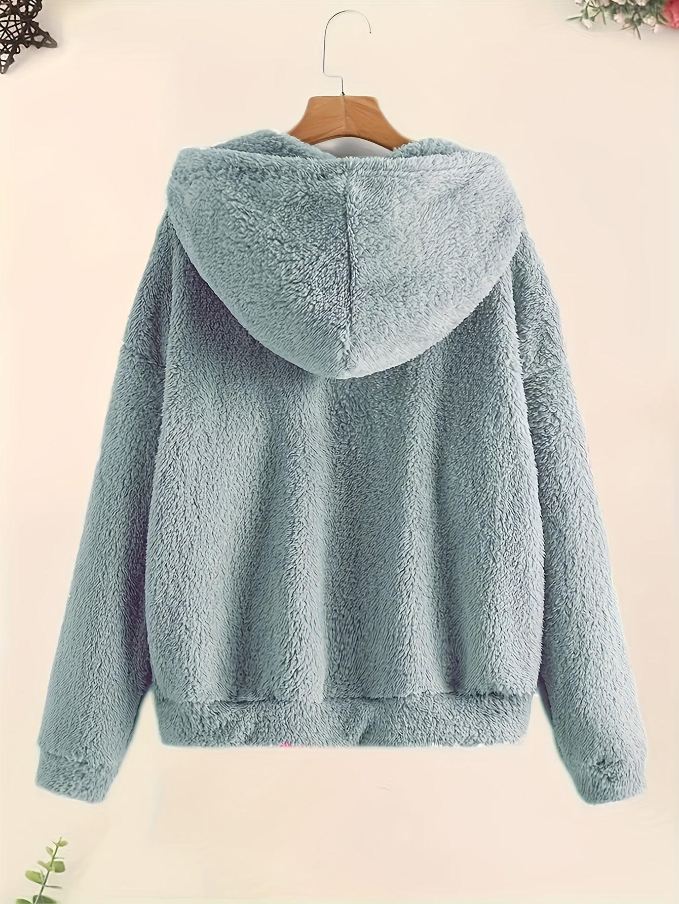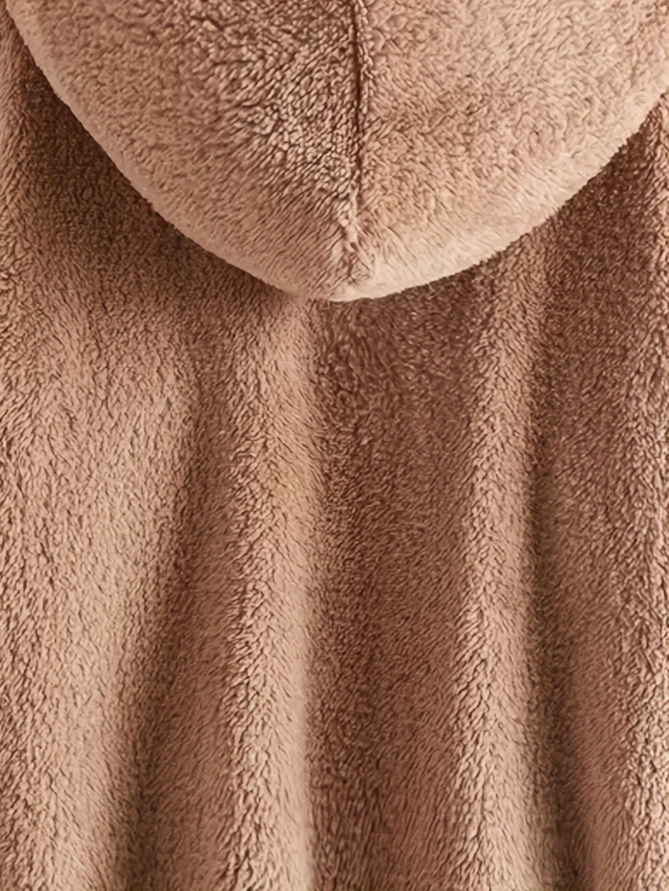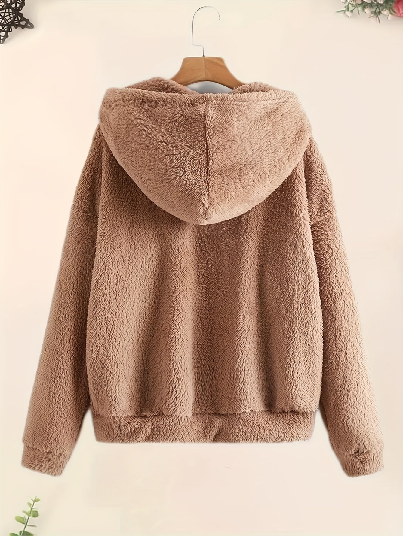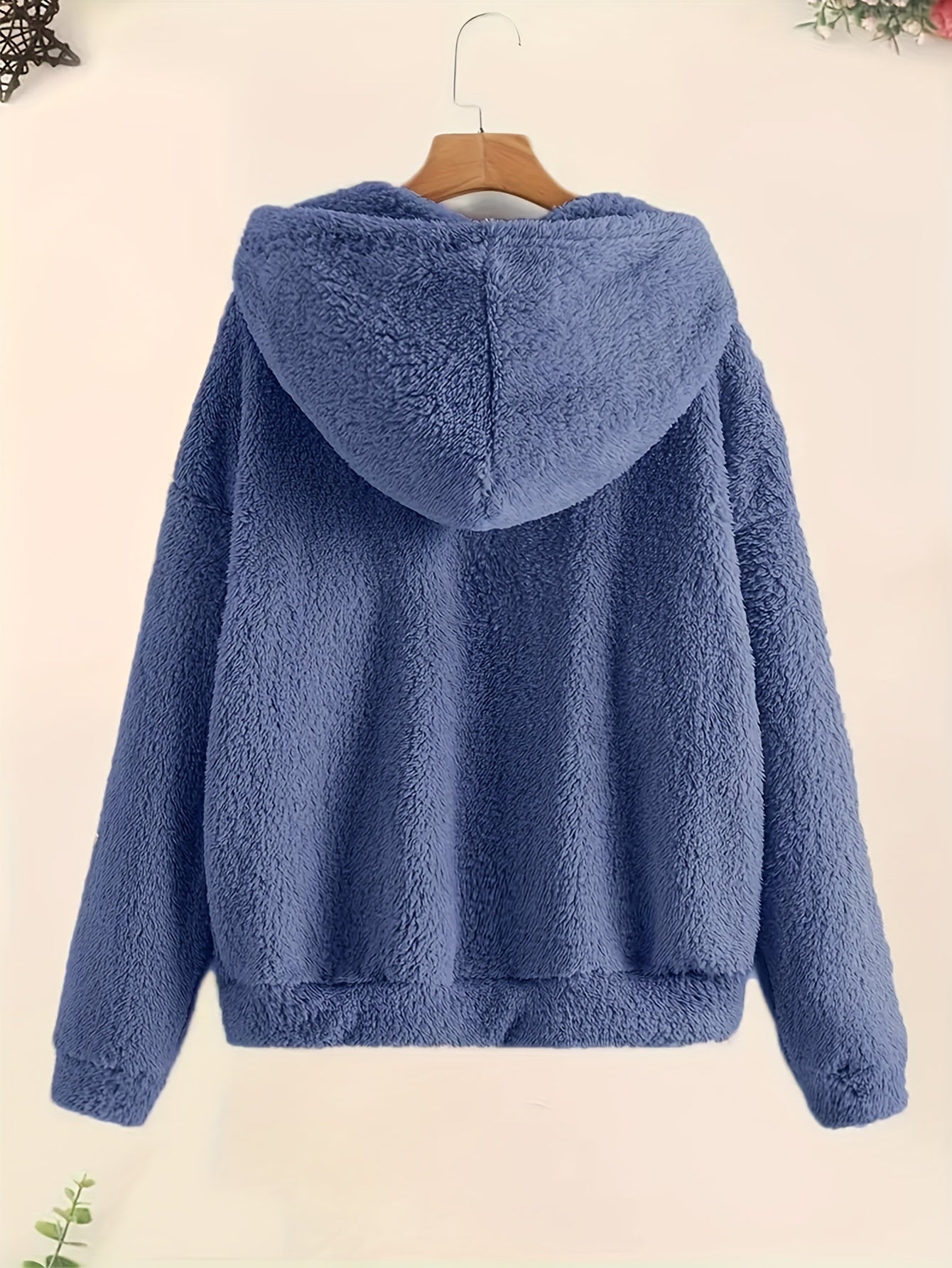 Cozy Fleece-Lined Hooded Jacket for Women - Casual Solid Color with Drawstring, Zip-Up Front, Long Sleeves - Perfect for Fall & Winter