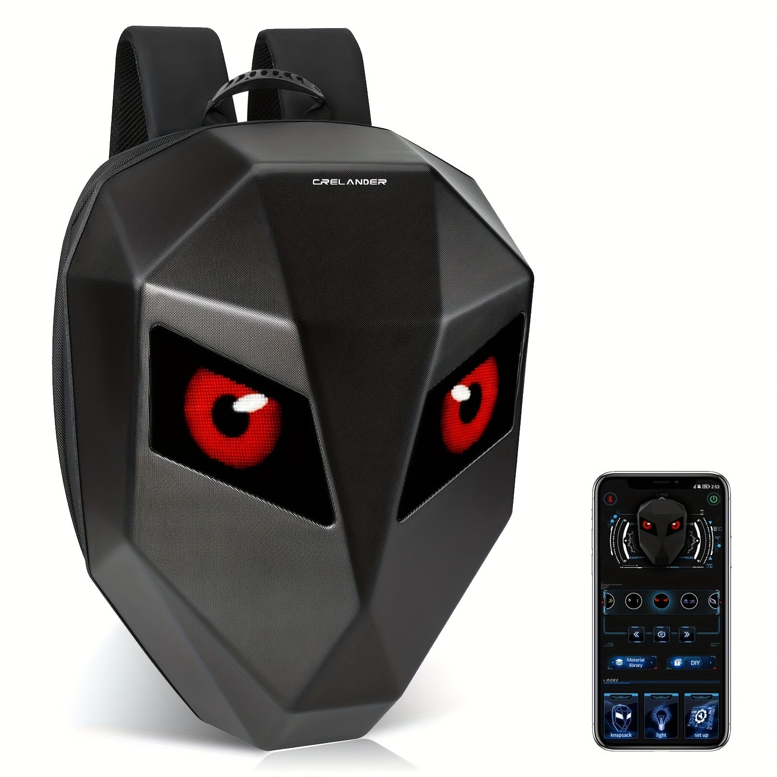 Crelander LED Men'S Motorcycle Backpack - Sleek Black Red Hard Shell Travel Bag with USB Charging, 48.01cm x 35.56cm Capacity, Ergonomic Design for Camping, Cycling Outdoor Adventures, Motorcycle Bag, Adventure Gear, Stre