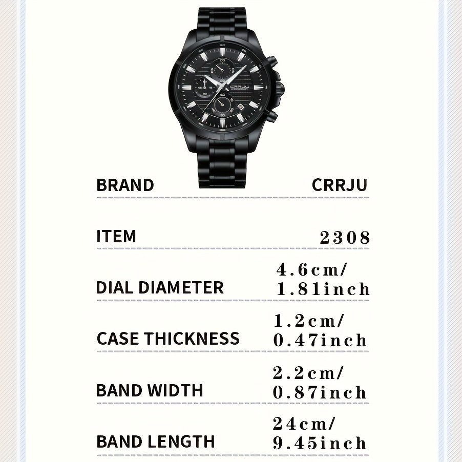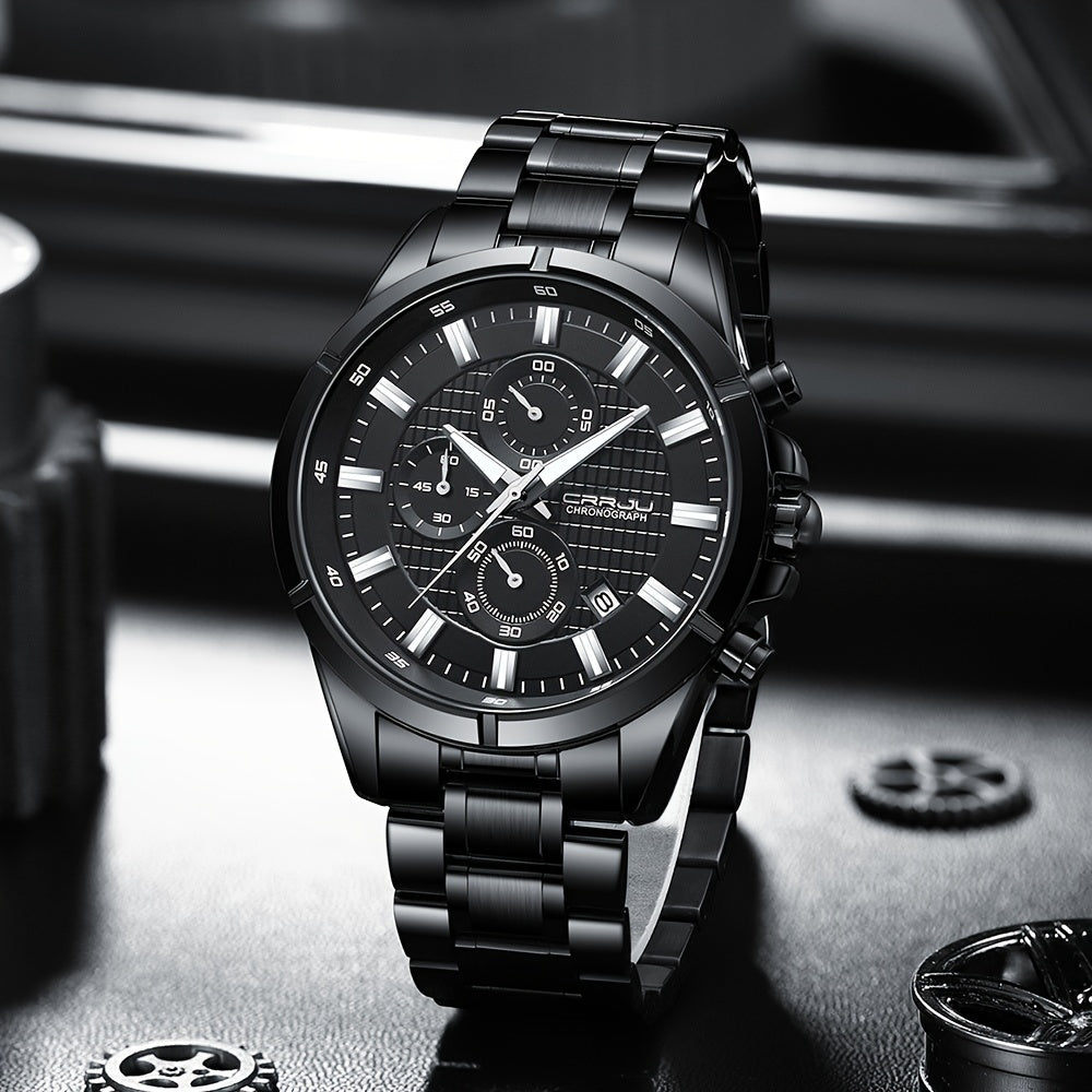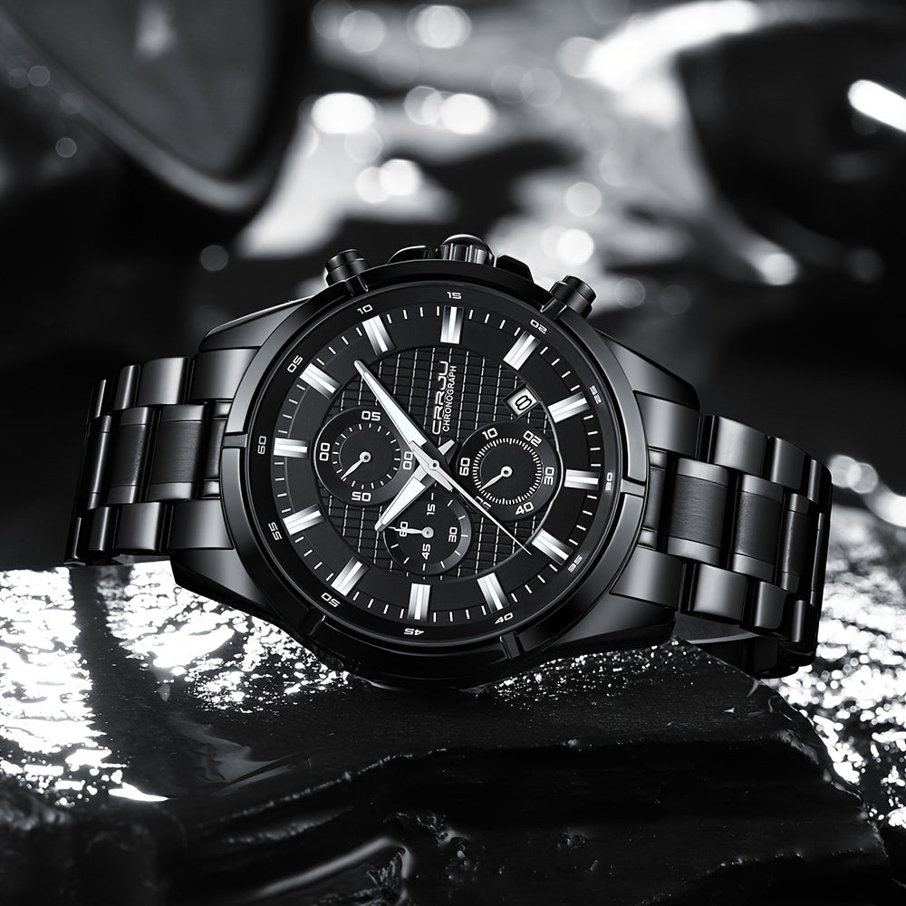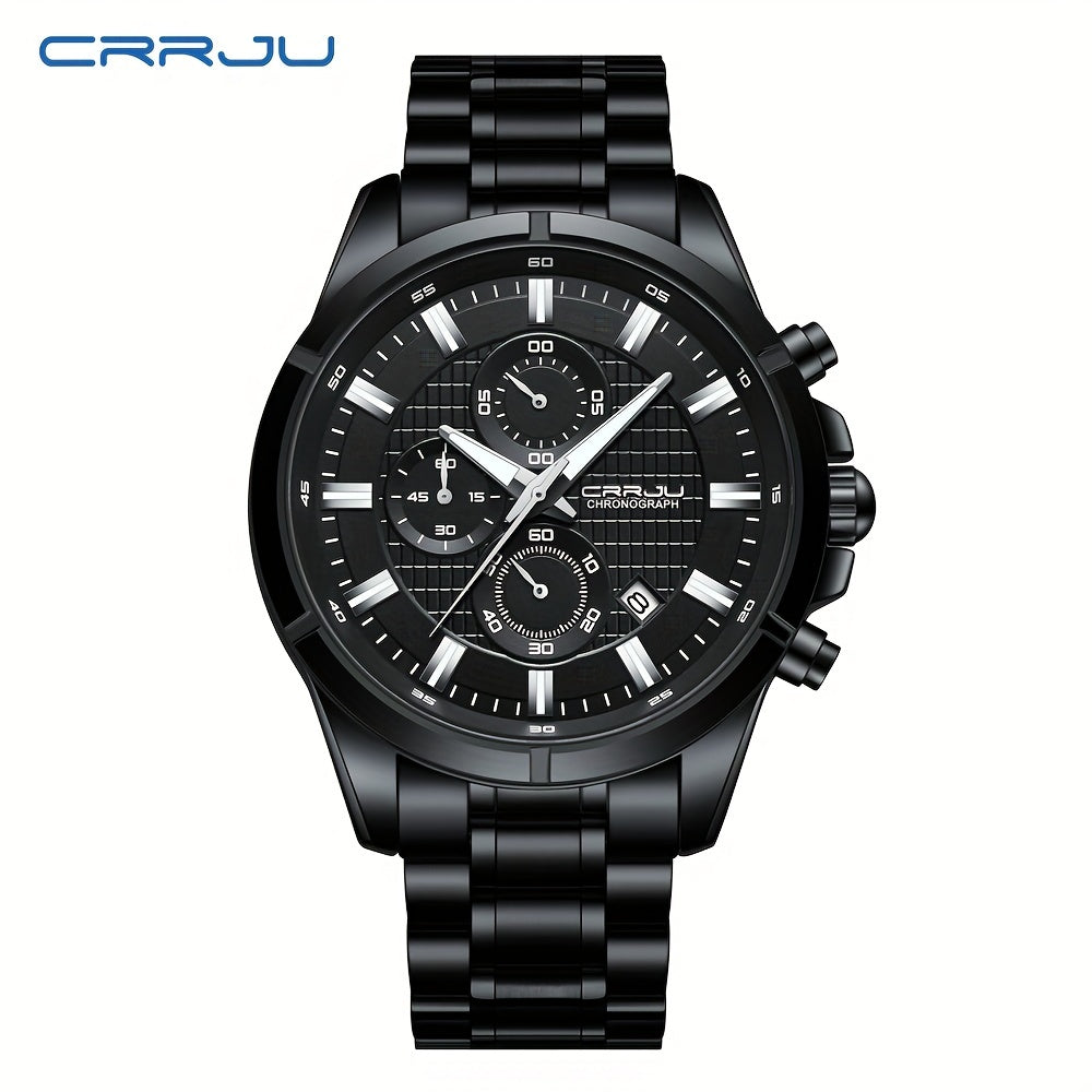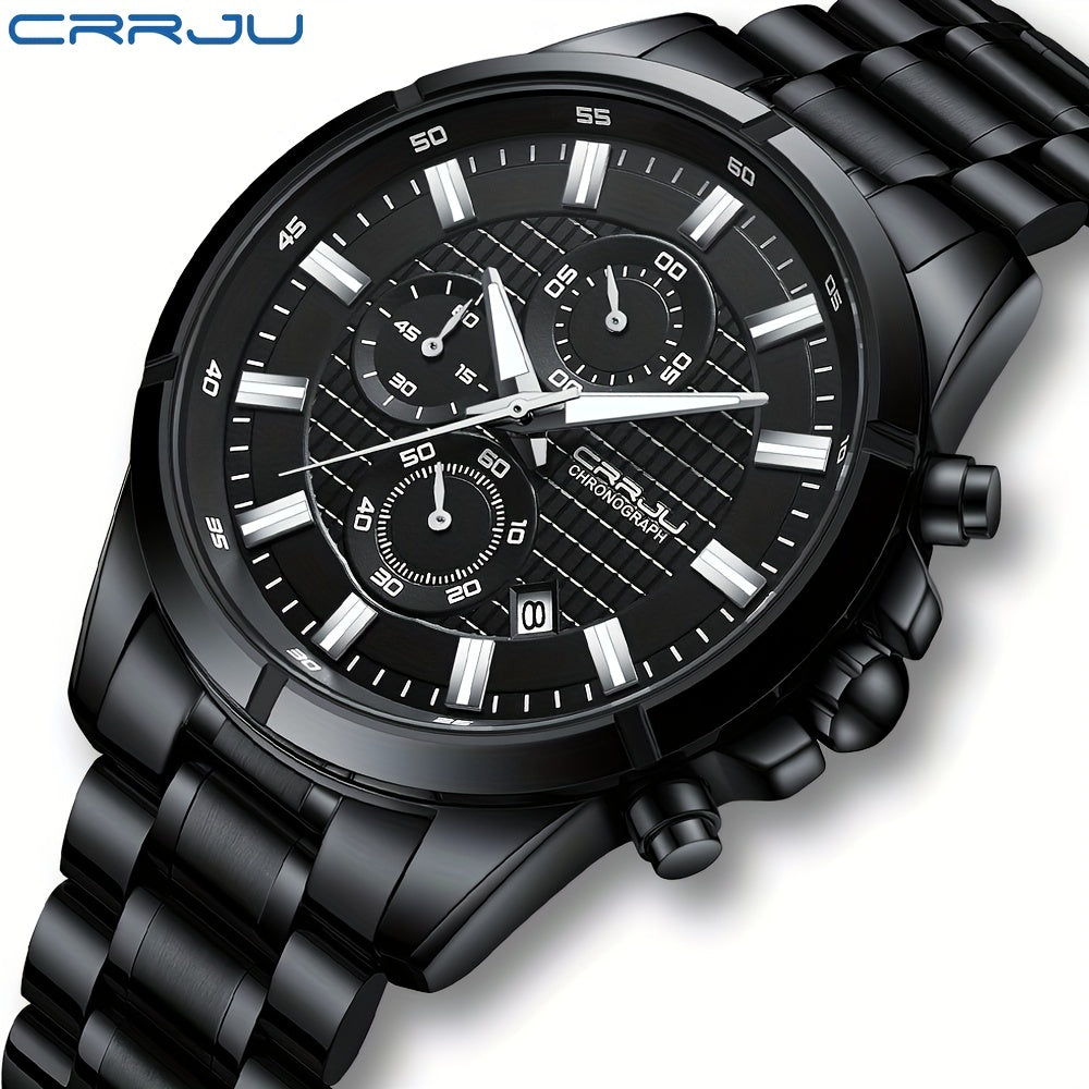 CRRJU Fashion Men's Watch, Business Solid Stainless Steel Multifunctional Chronograph Watch