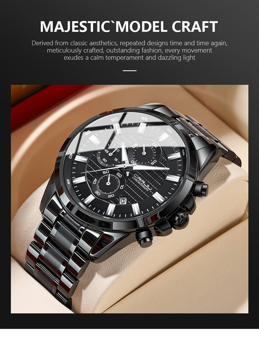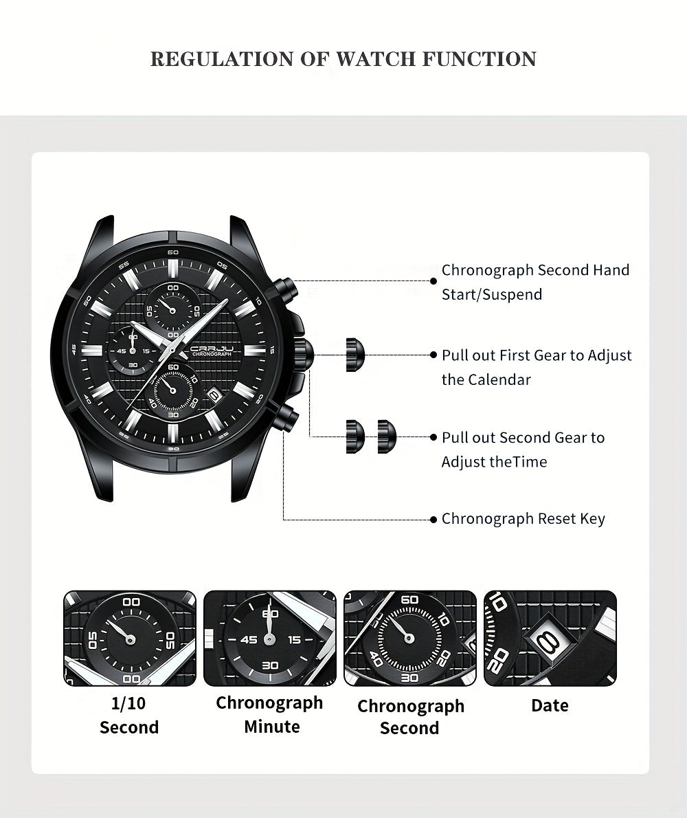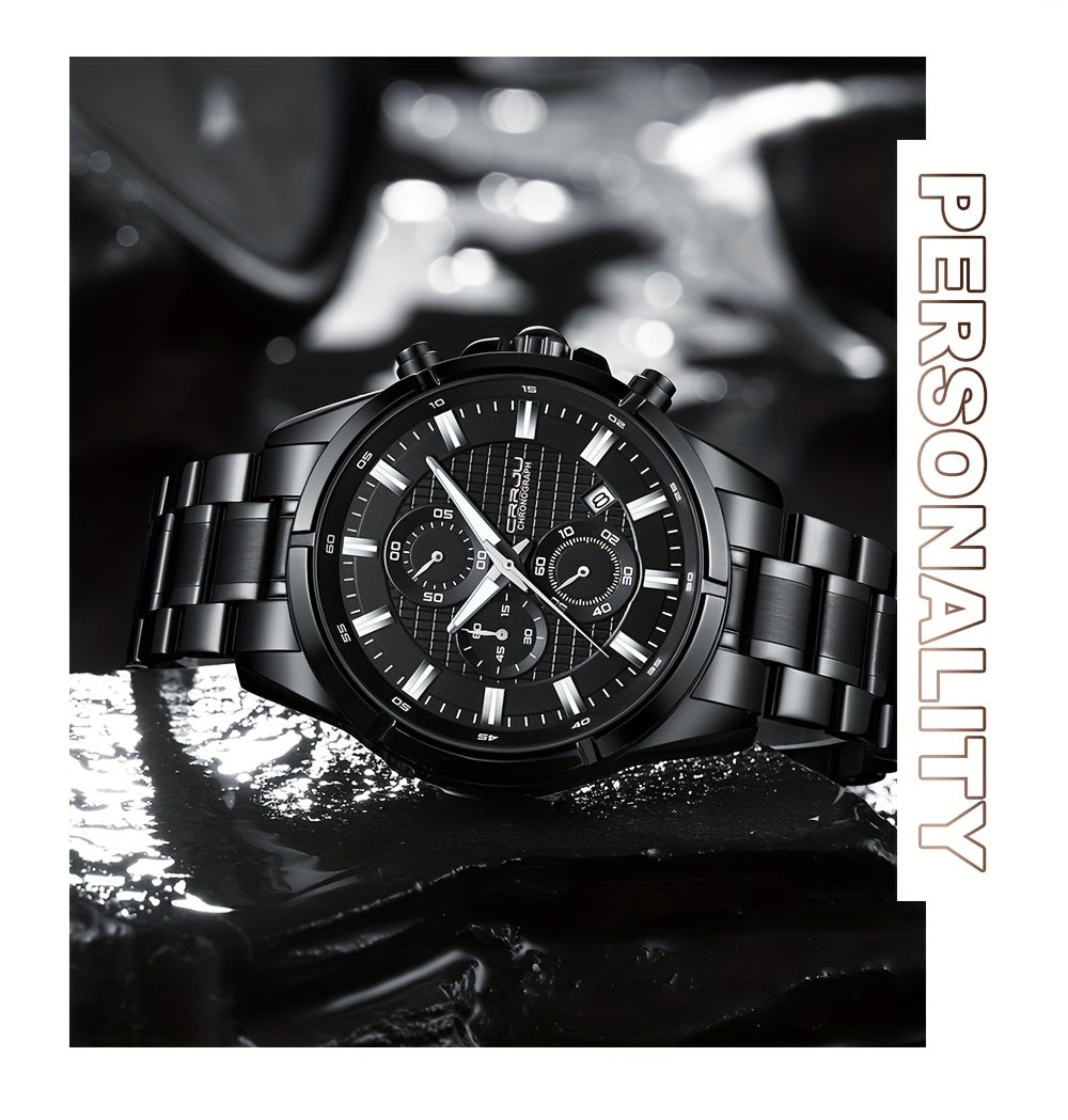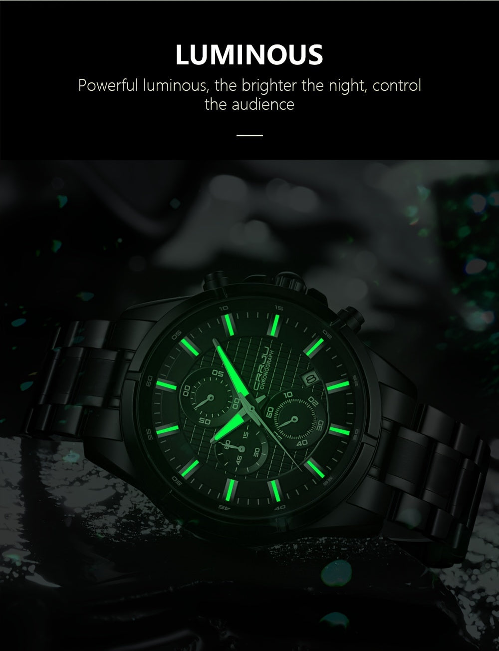 CRRJU Fashion Men's Watch, Business Solid Stainless Steel Multifunctional Chronograph Watch