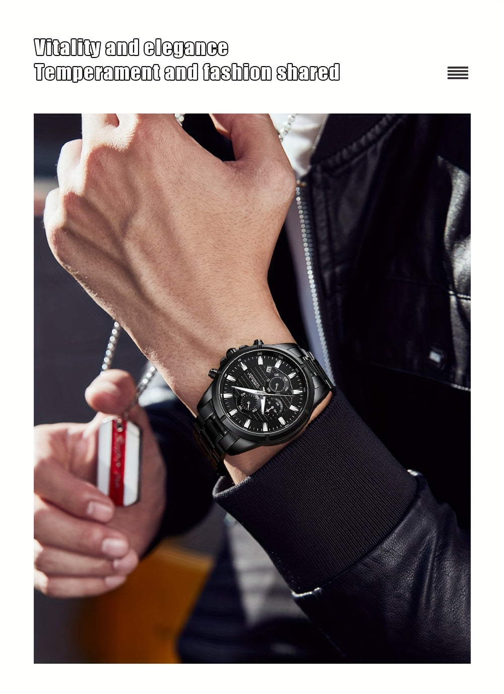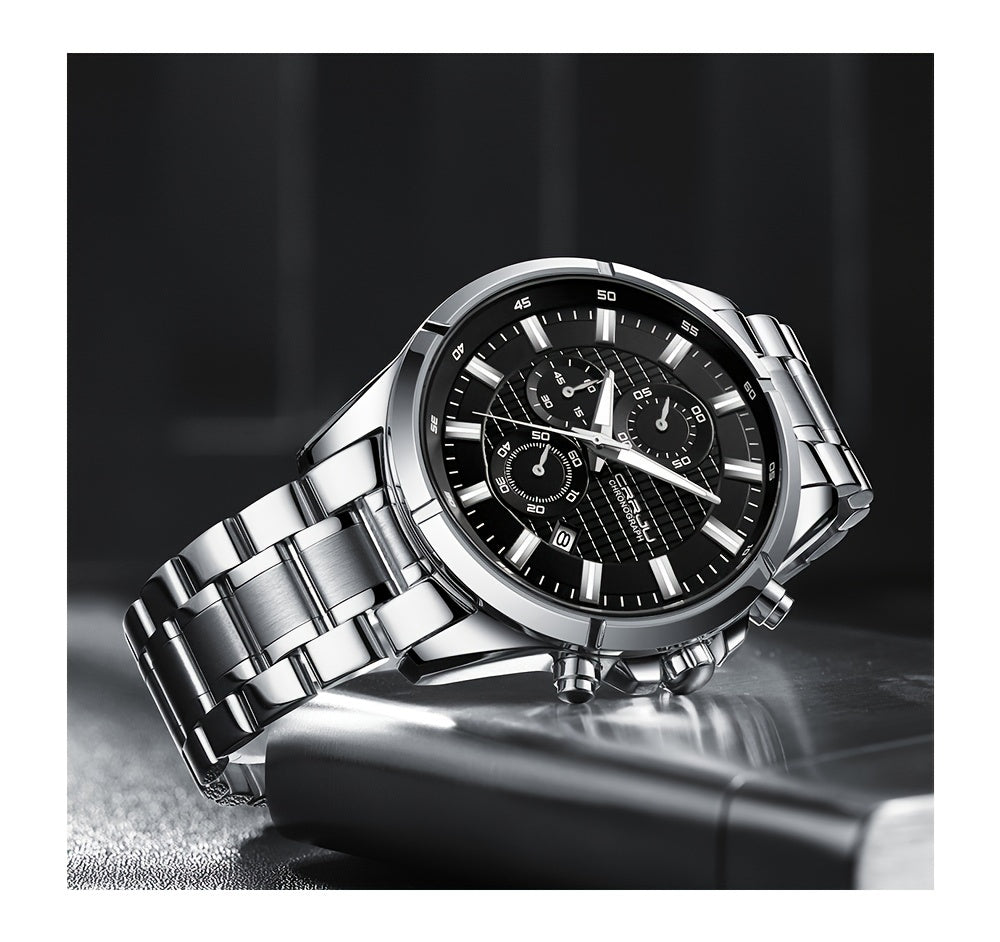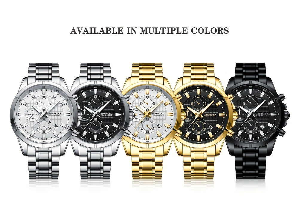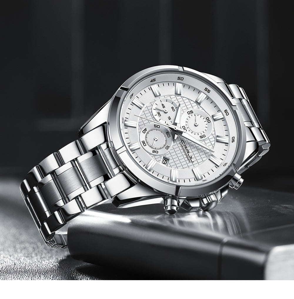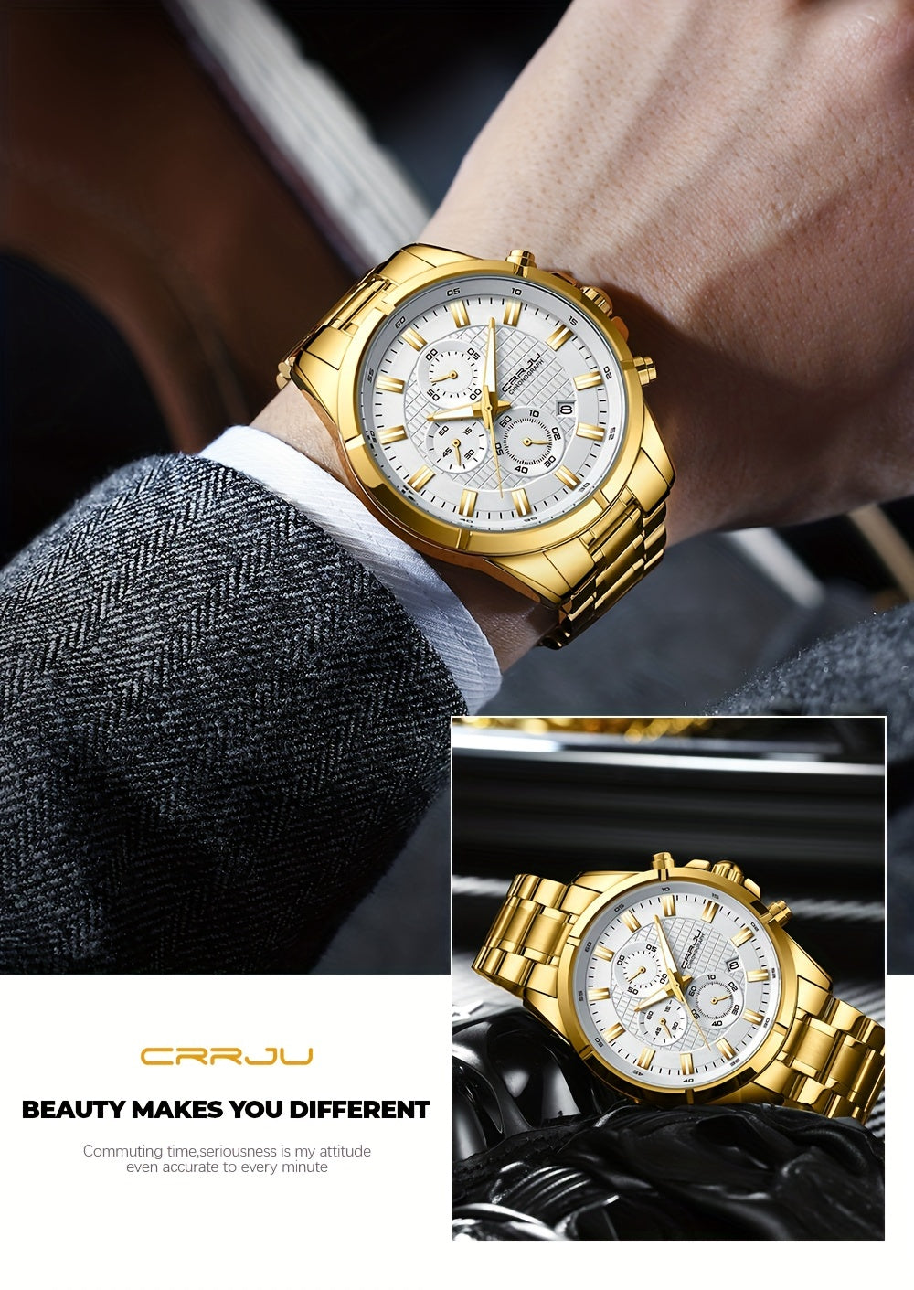 CRRJU Fashion Men's Watch, Business Solid Stainless Steel Multifunctional Chronograph Watch