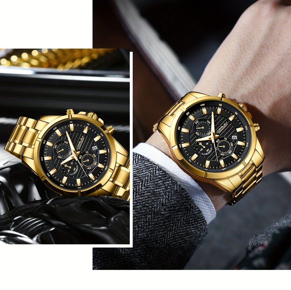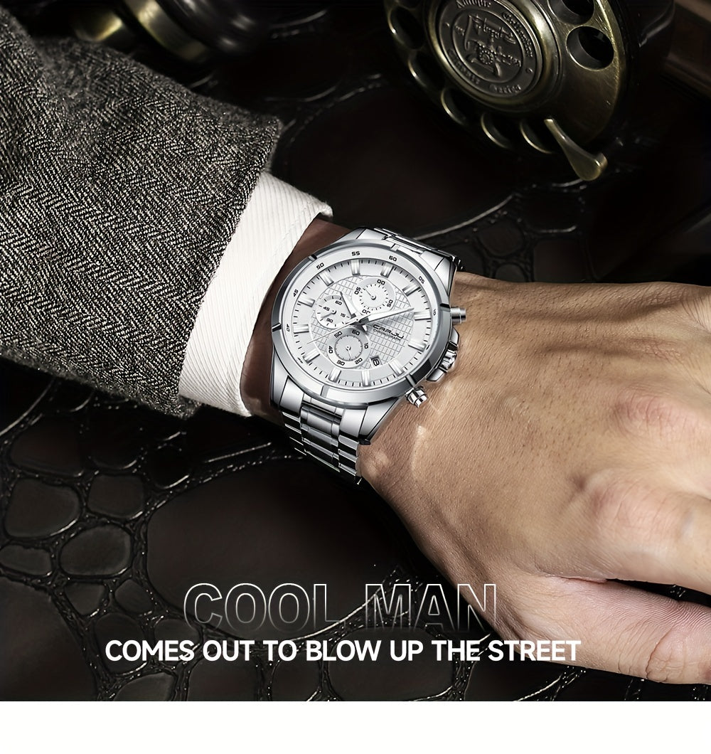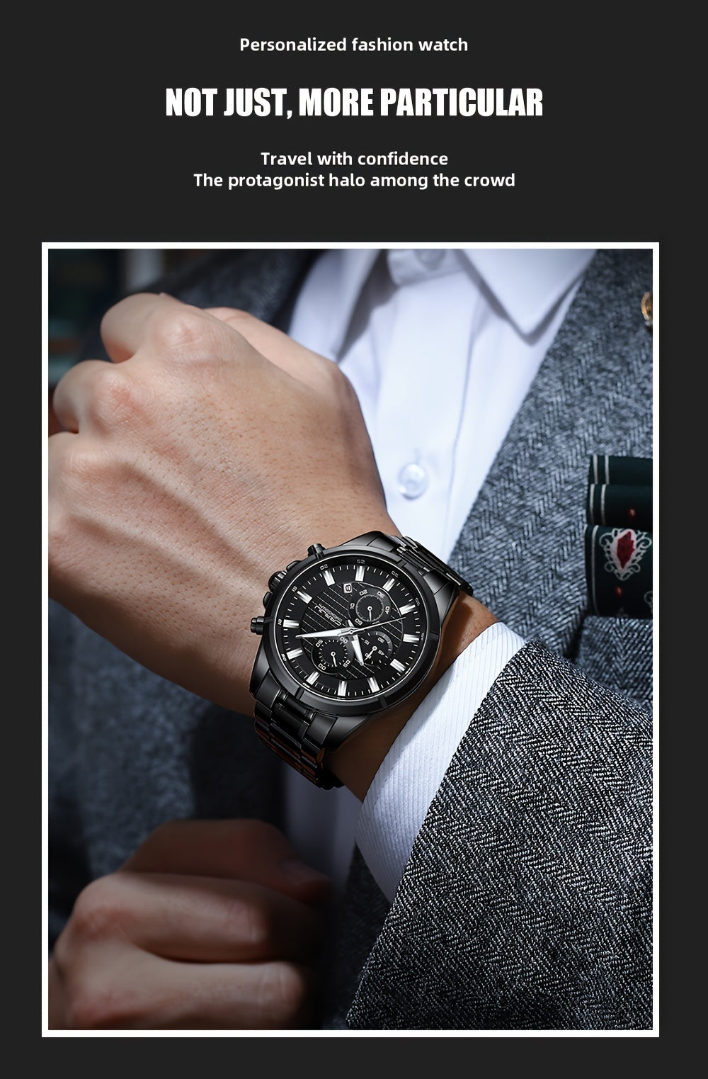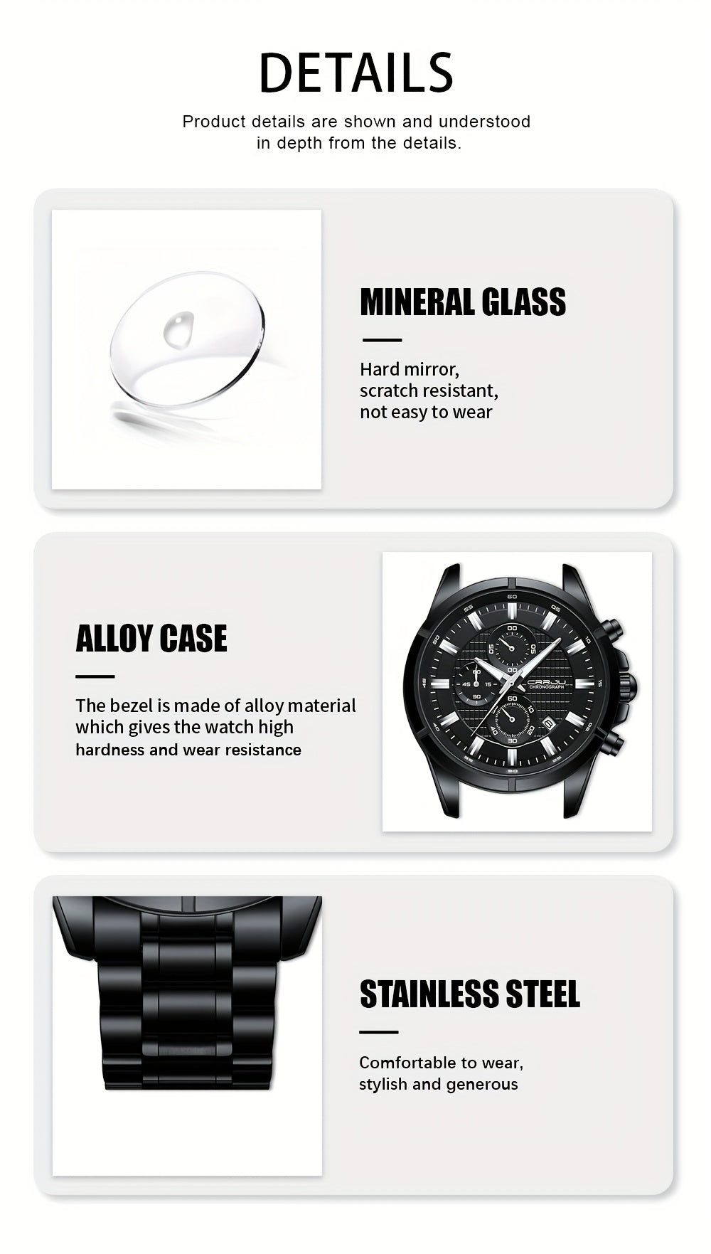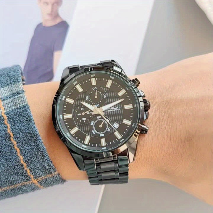 CRRJU Fashion Men's Watch, Business Solid Stainless Steel Multifunctional Chronograph Watch