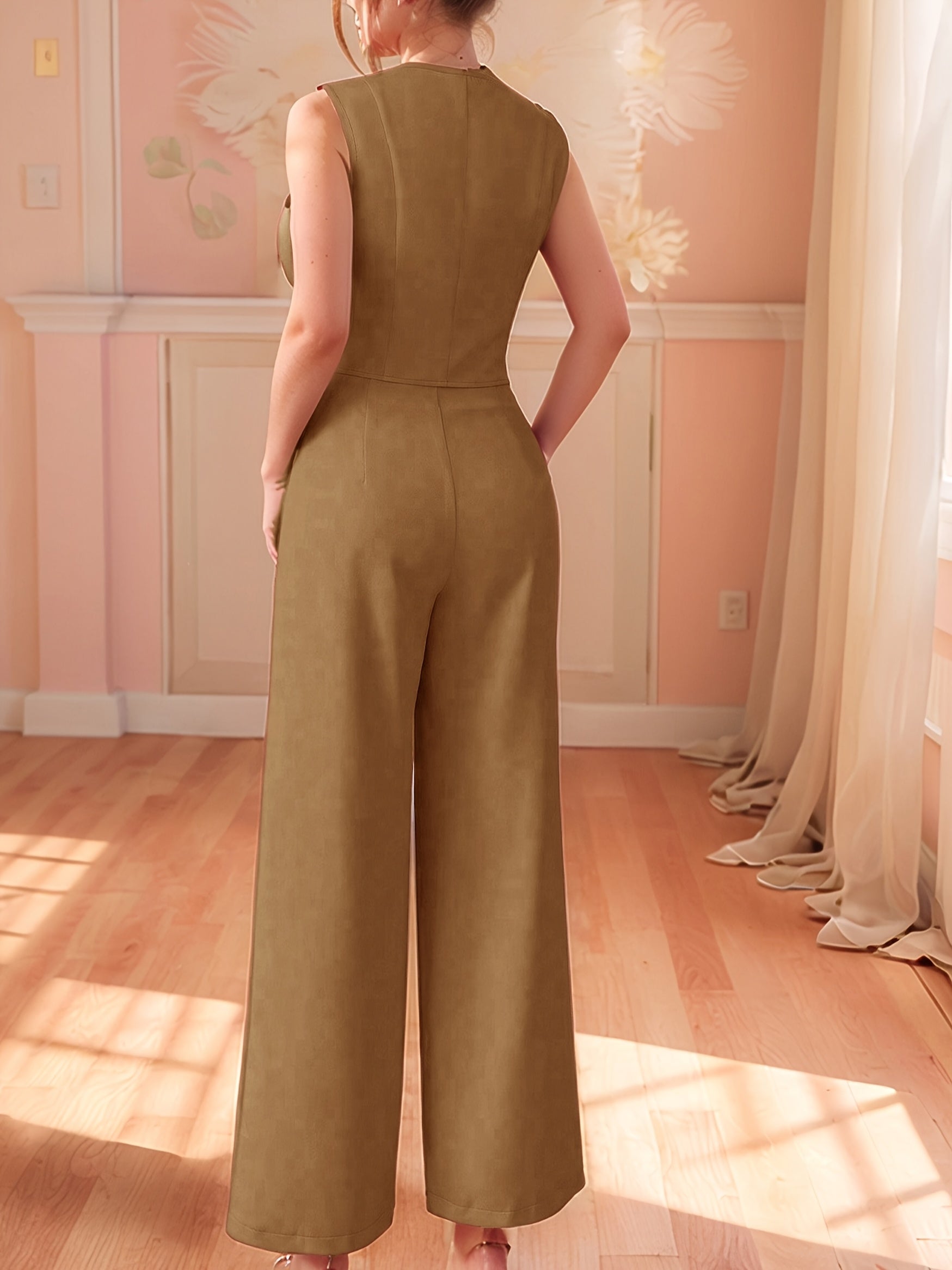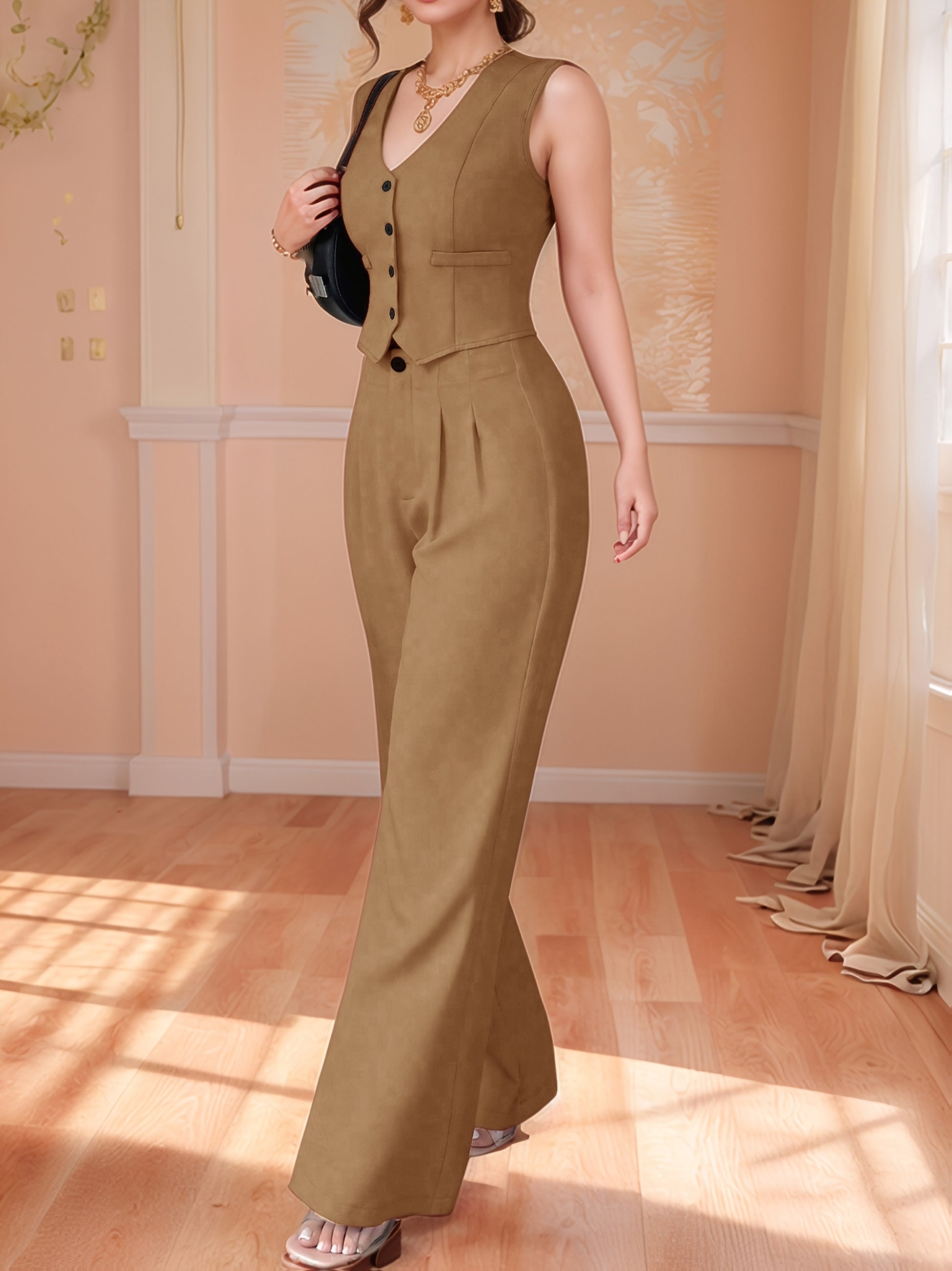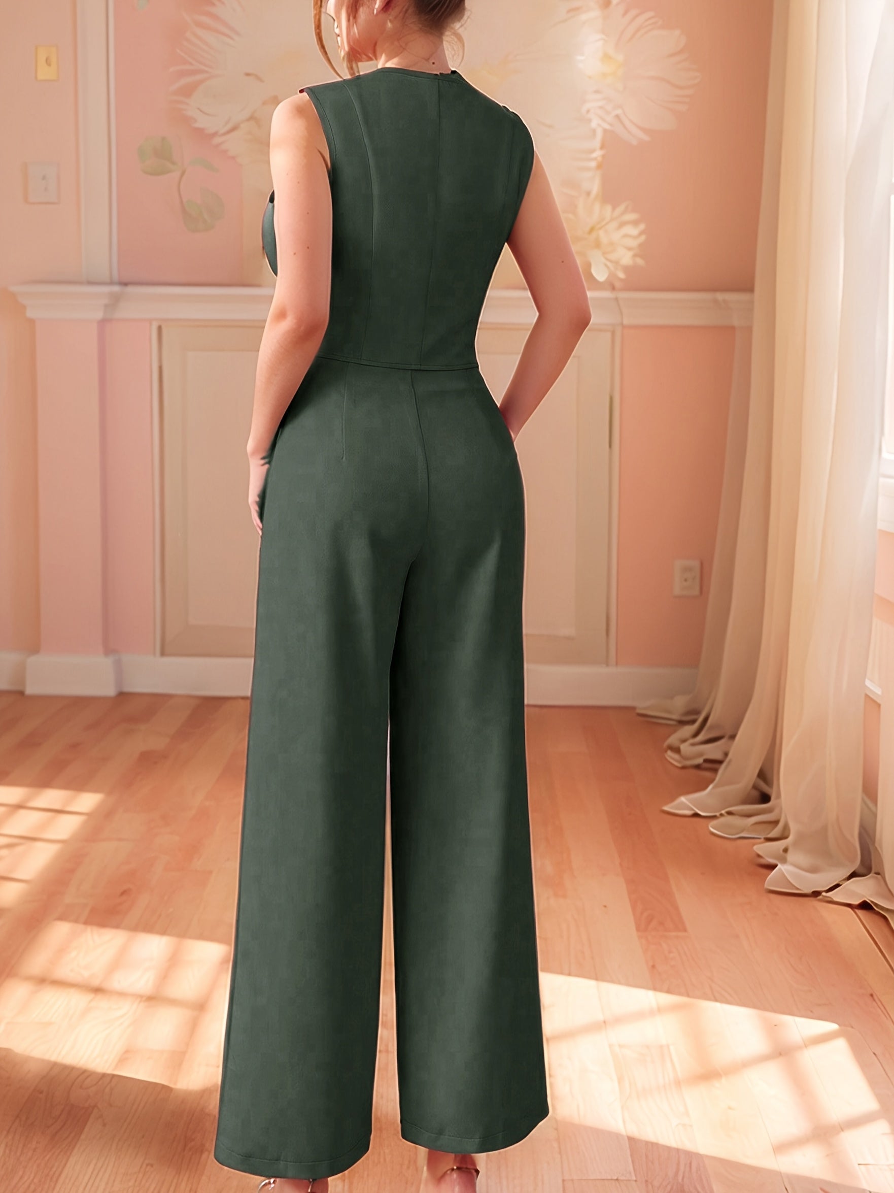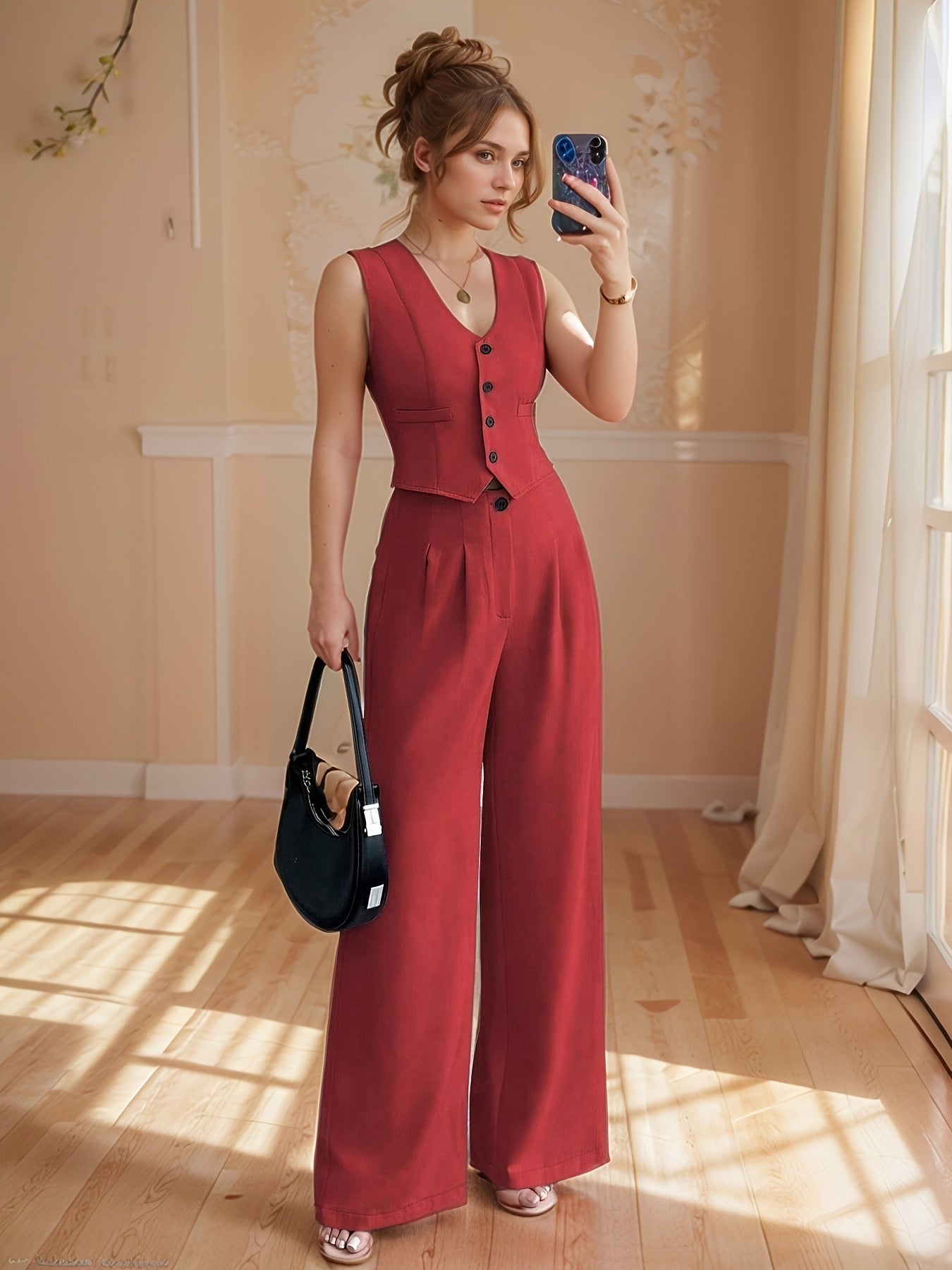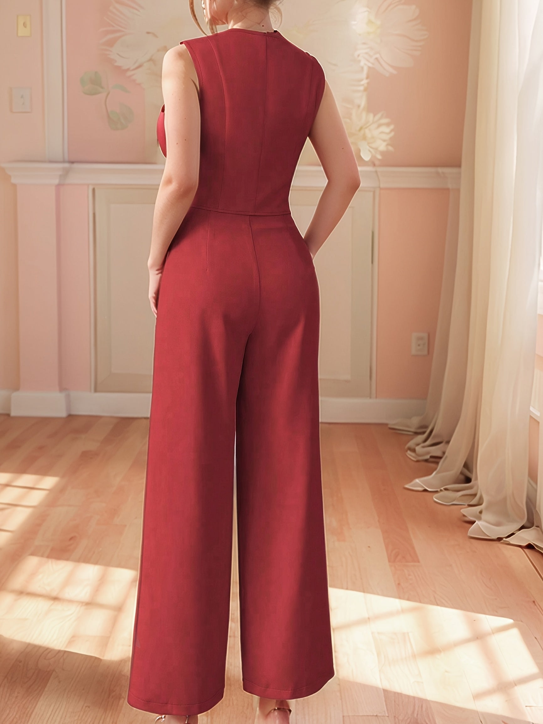 Design-Savvy Red Mini-Chic Sleeveless Suit Vest and Wide-Leg Pants Two-Piece Set