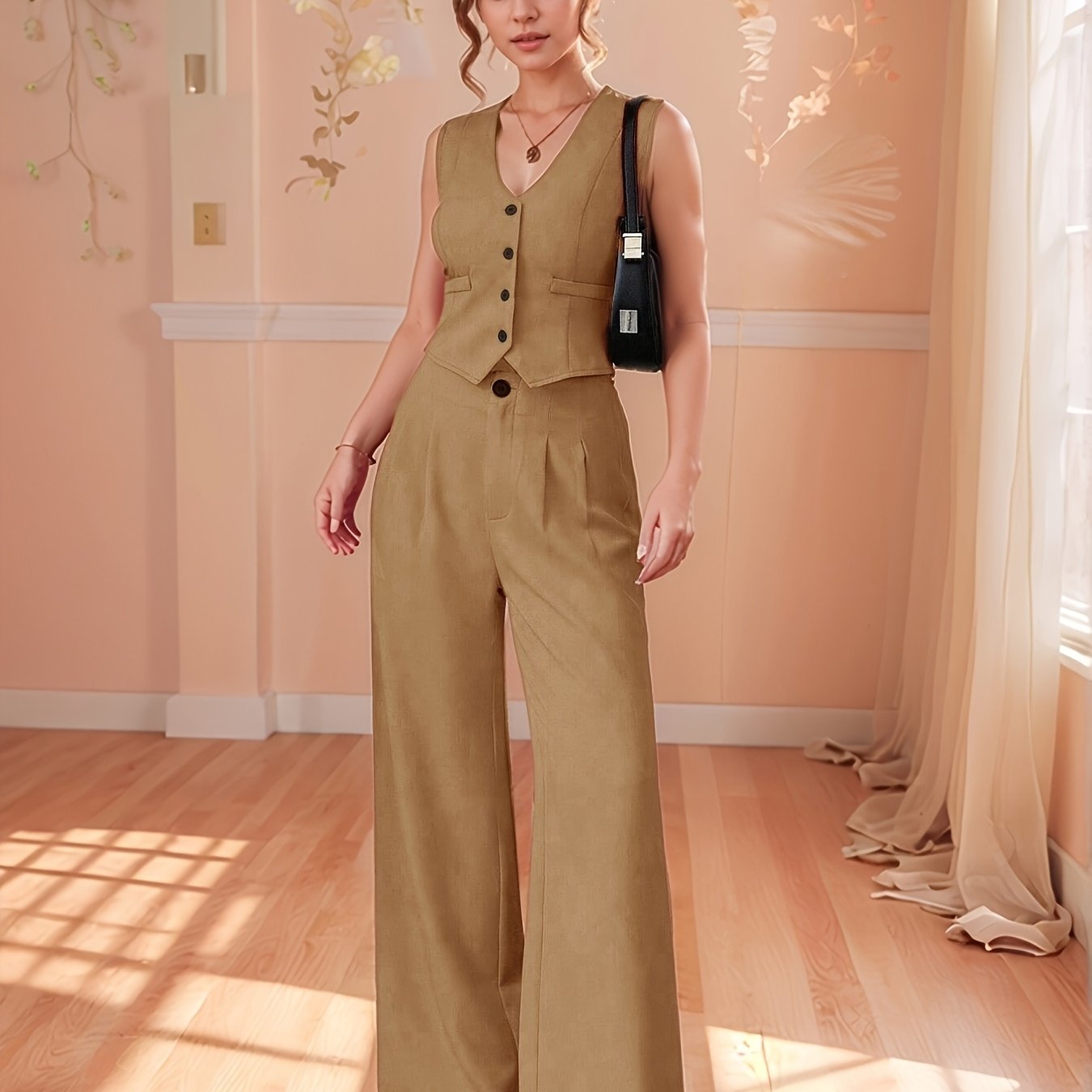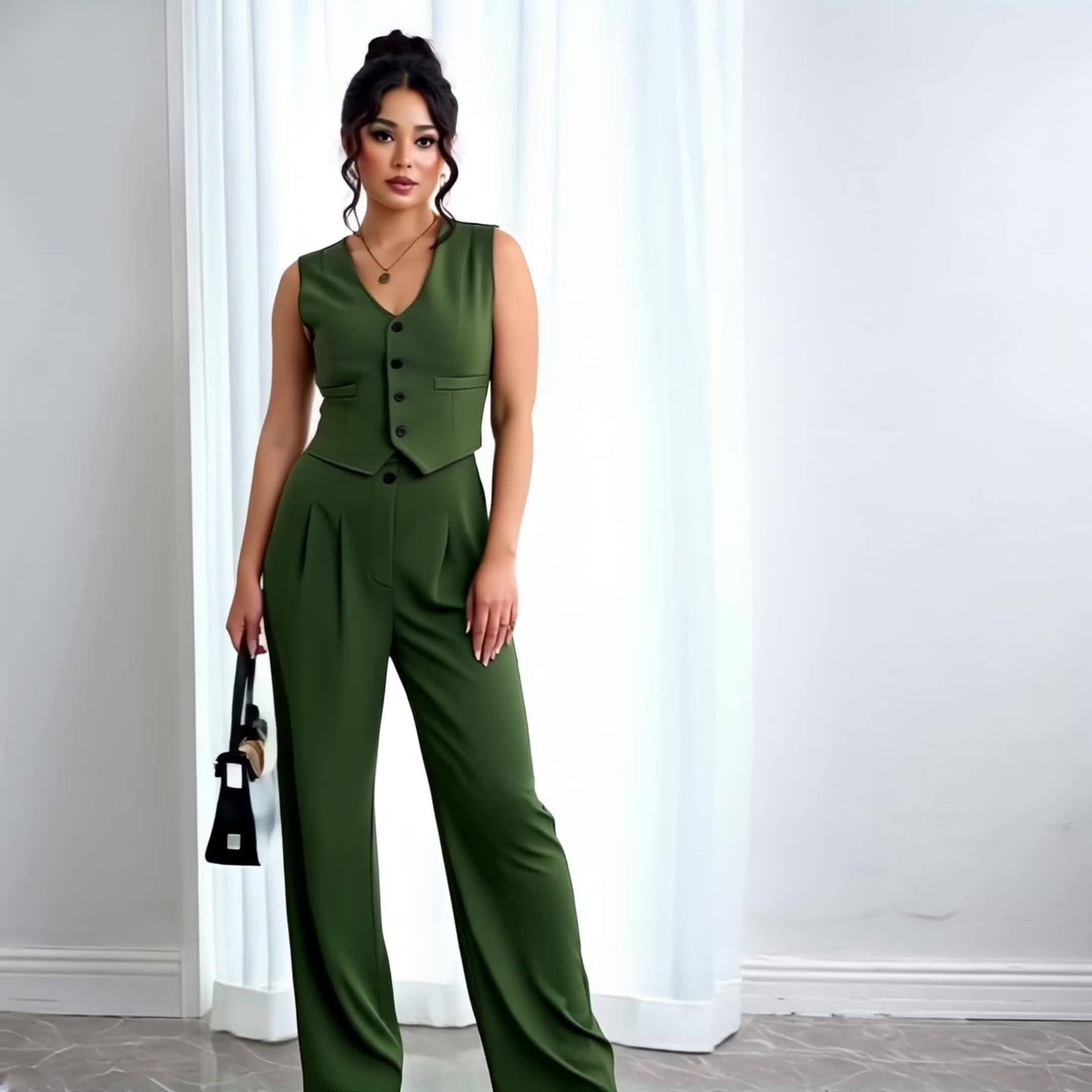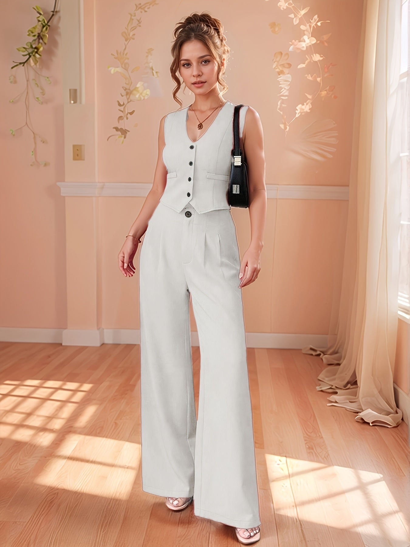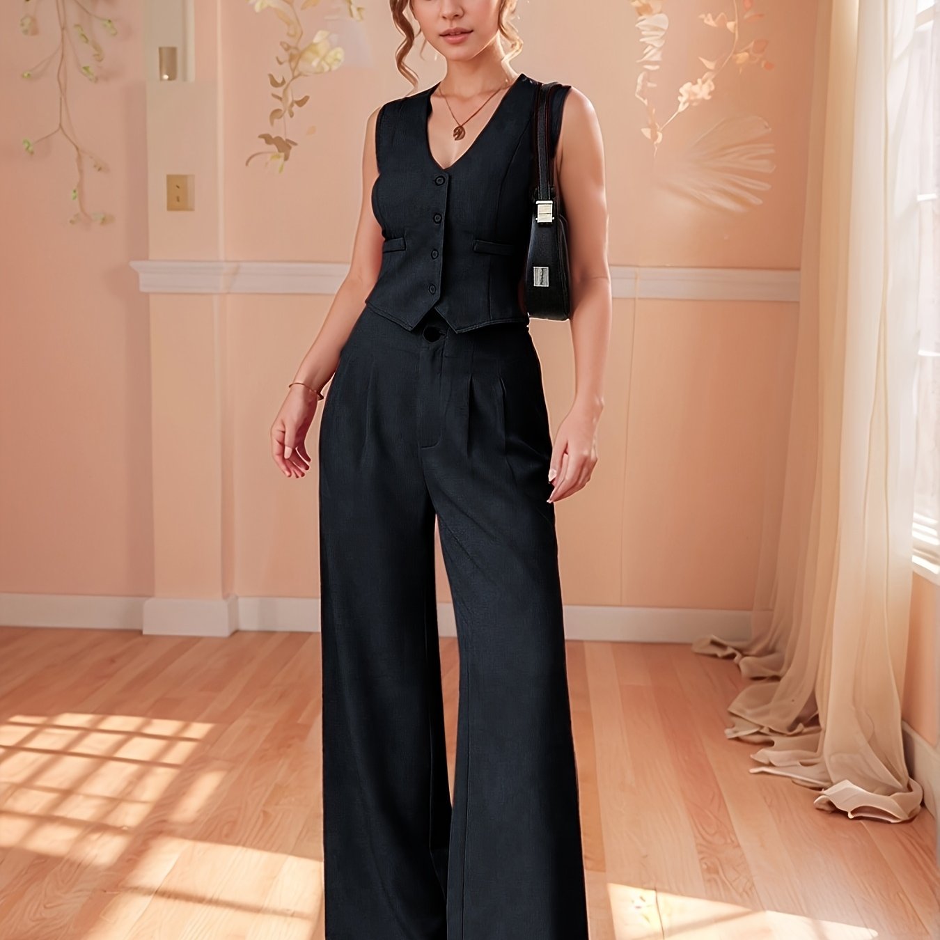 Design-Savvy Red Mini-Chic Sleeveless Suit Vest and Wide-Leg Pants Two-Piece Set