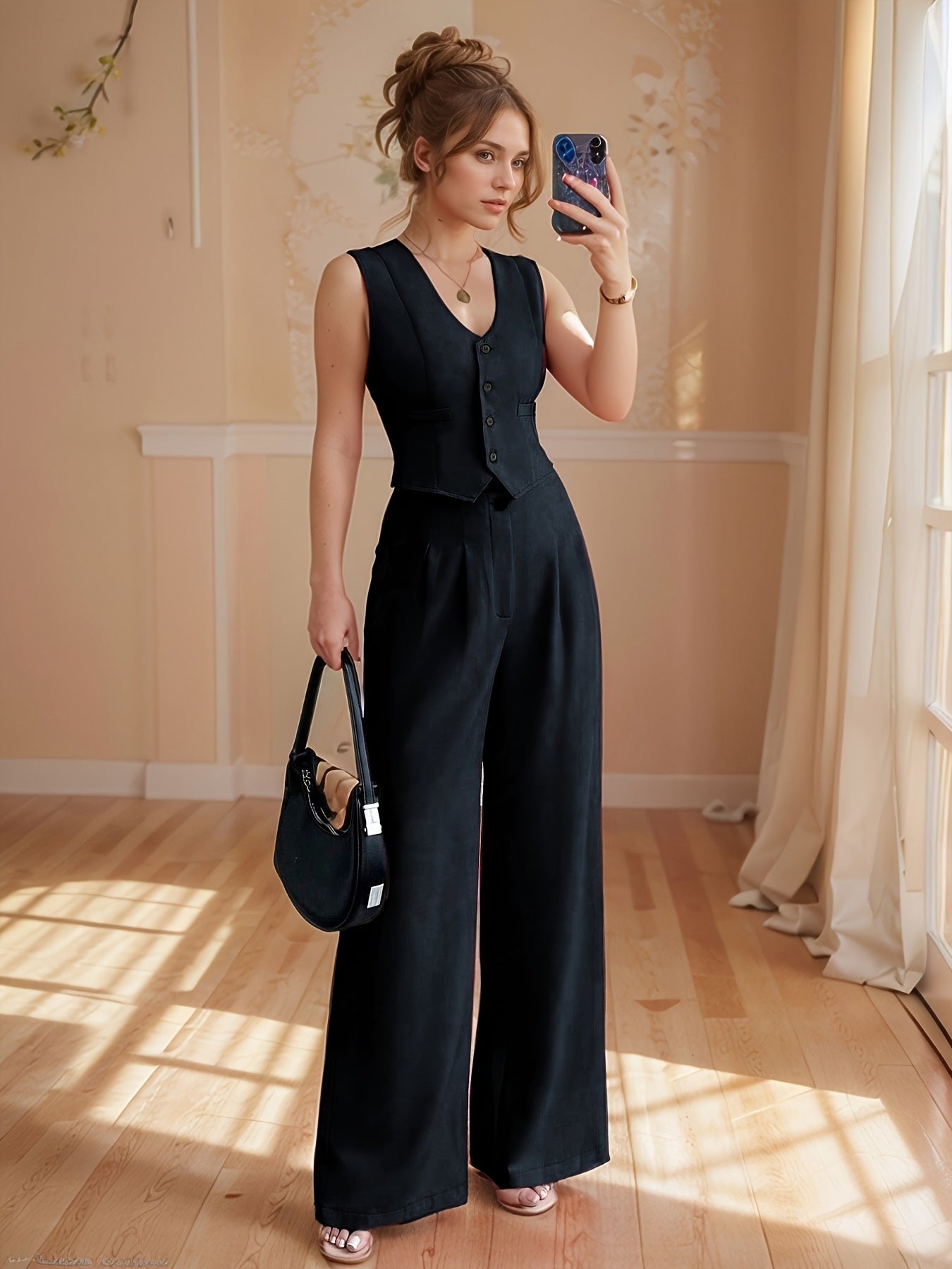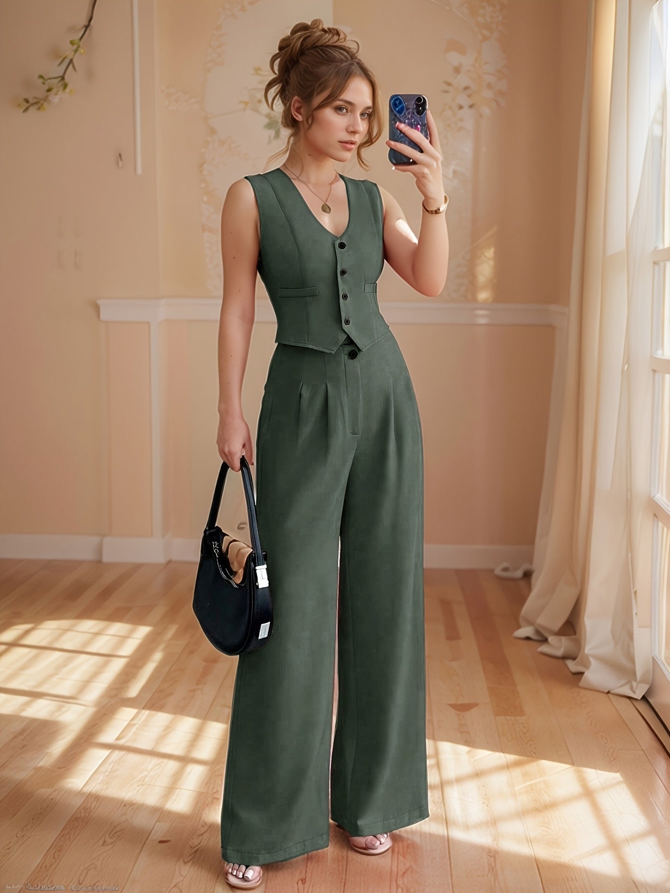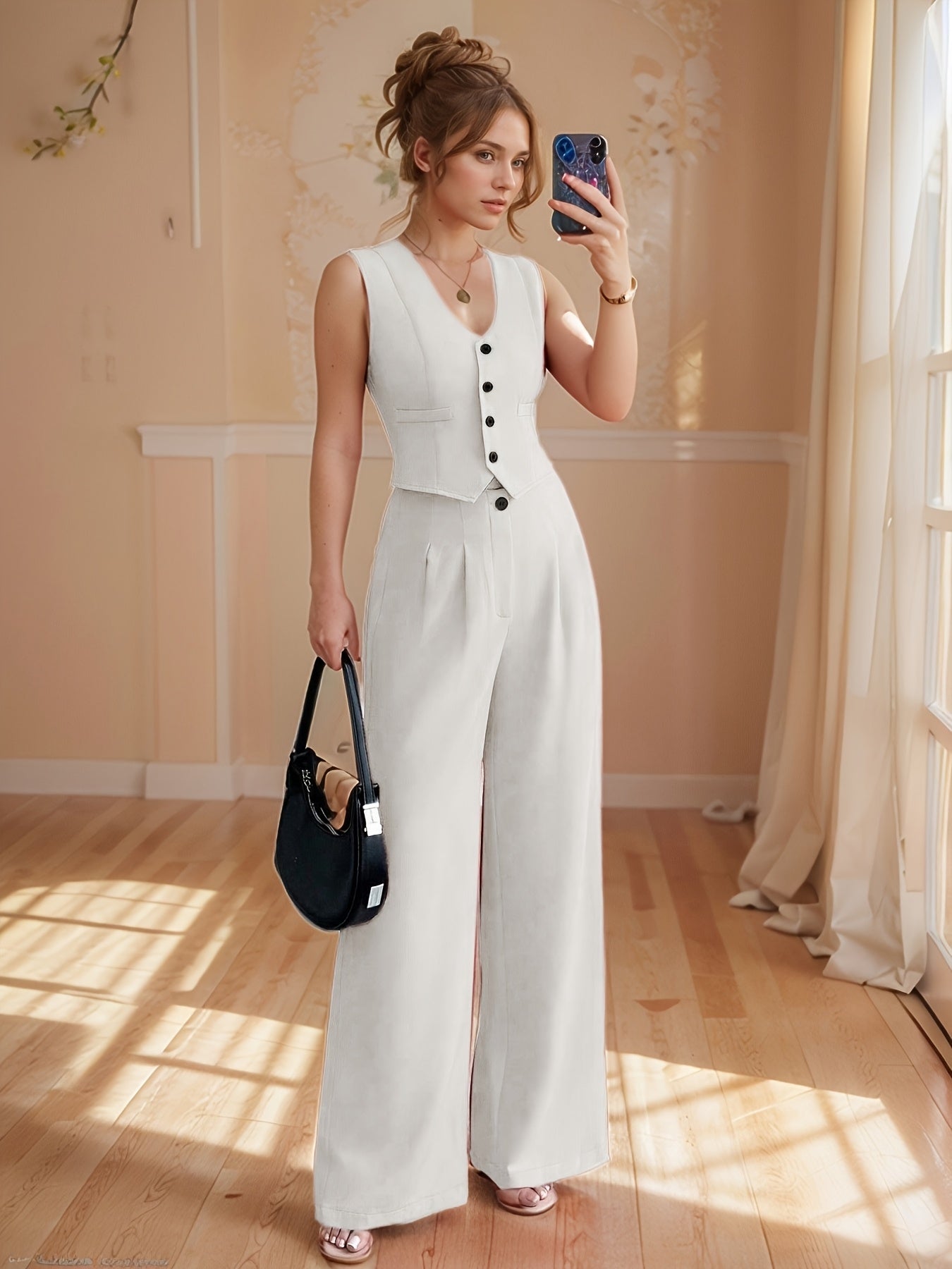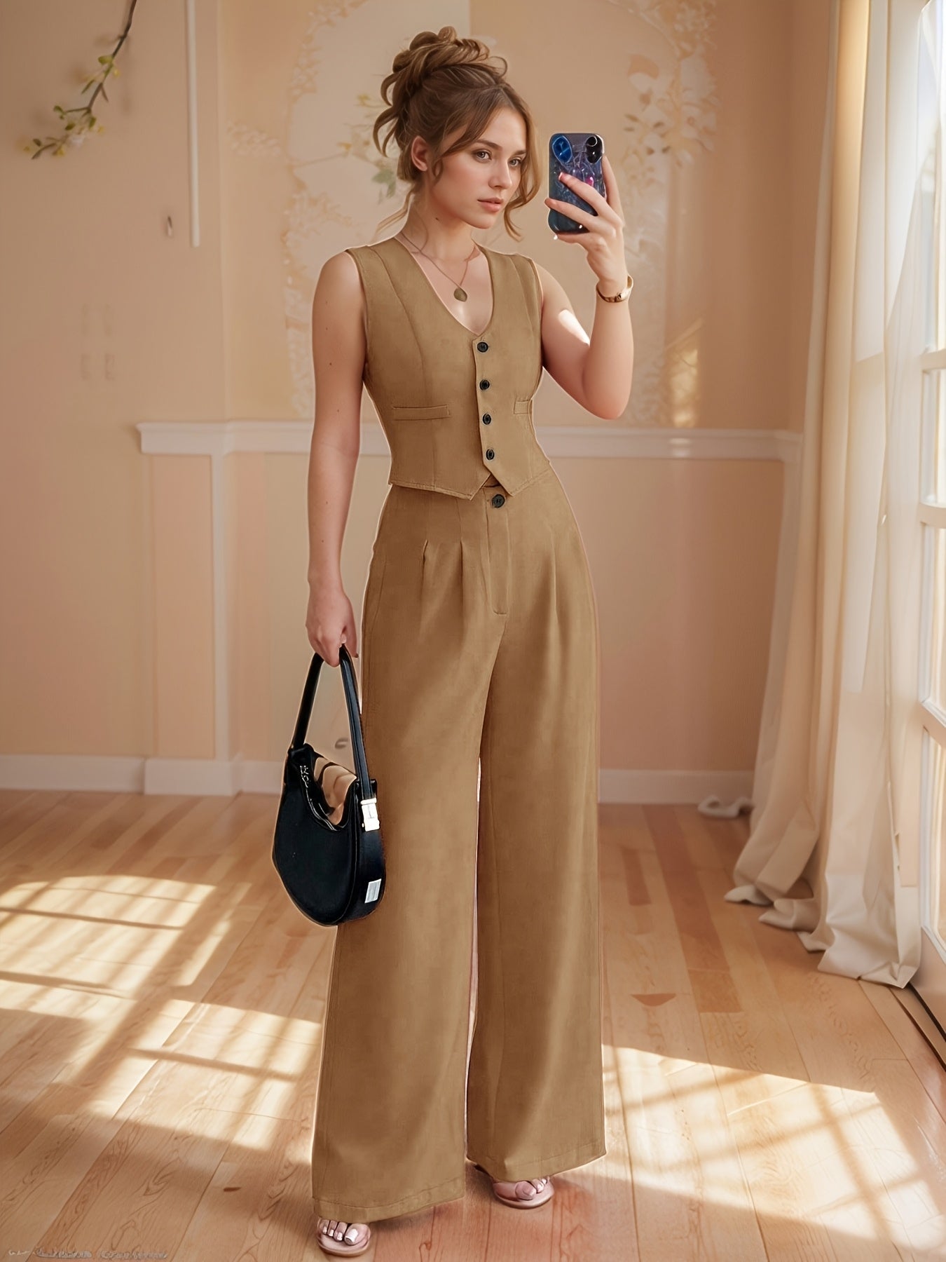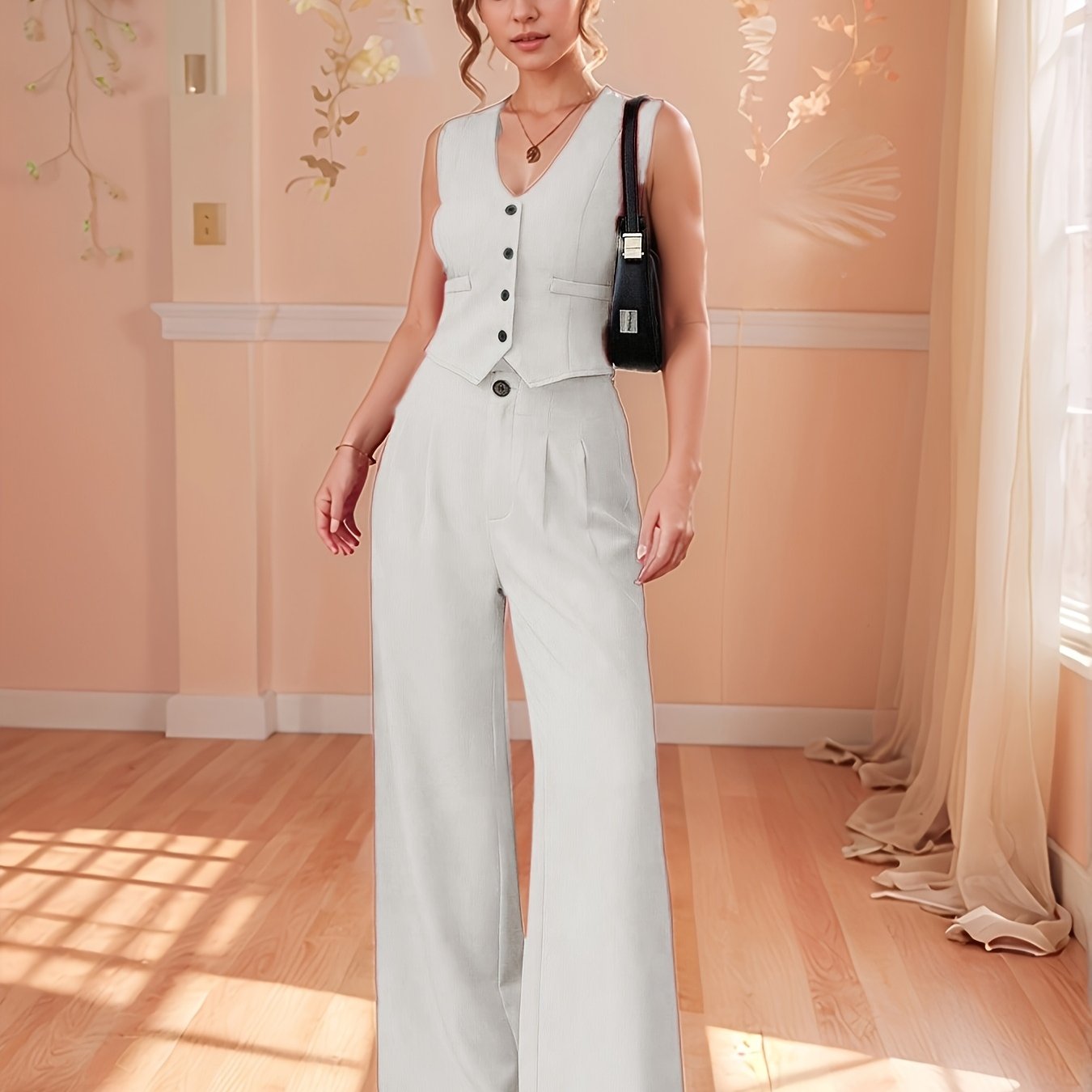 Design-Savvy Red Mini-Chic Sleeveless Suit Vest and Wide-Leg Pants Two-Piece Set