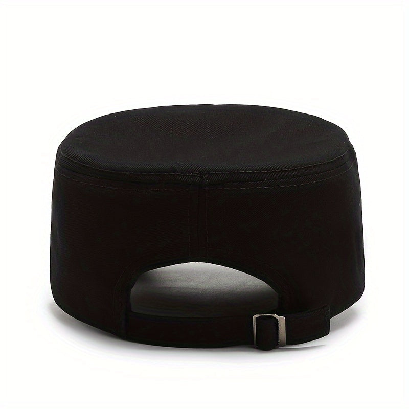EDIKO Men's Cotton Flat Top Cap, Embroidered Adjustable Military Cadet Hat with Lightweight Toggle Closure, Hand Washable, Stretch Fit for New Year's Occasions - Solid Color Woven Cap