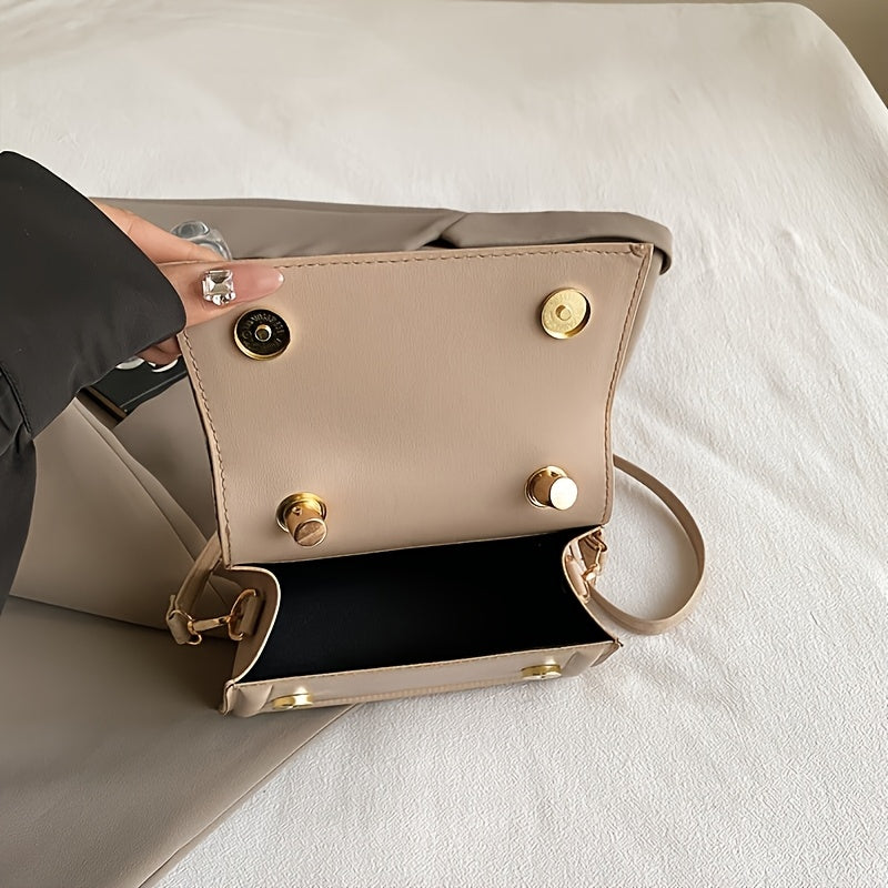 Elegant French Niche Design Women'S Diagonal Backpack - Multifunctional Small Square Commuting Wallet with Adjustable Shoulder Straps, Magnetic Closure, Black Or White Synthetic Faux Leather, Exquisite Daily Wallet for Daily