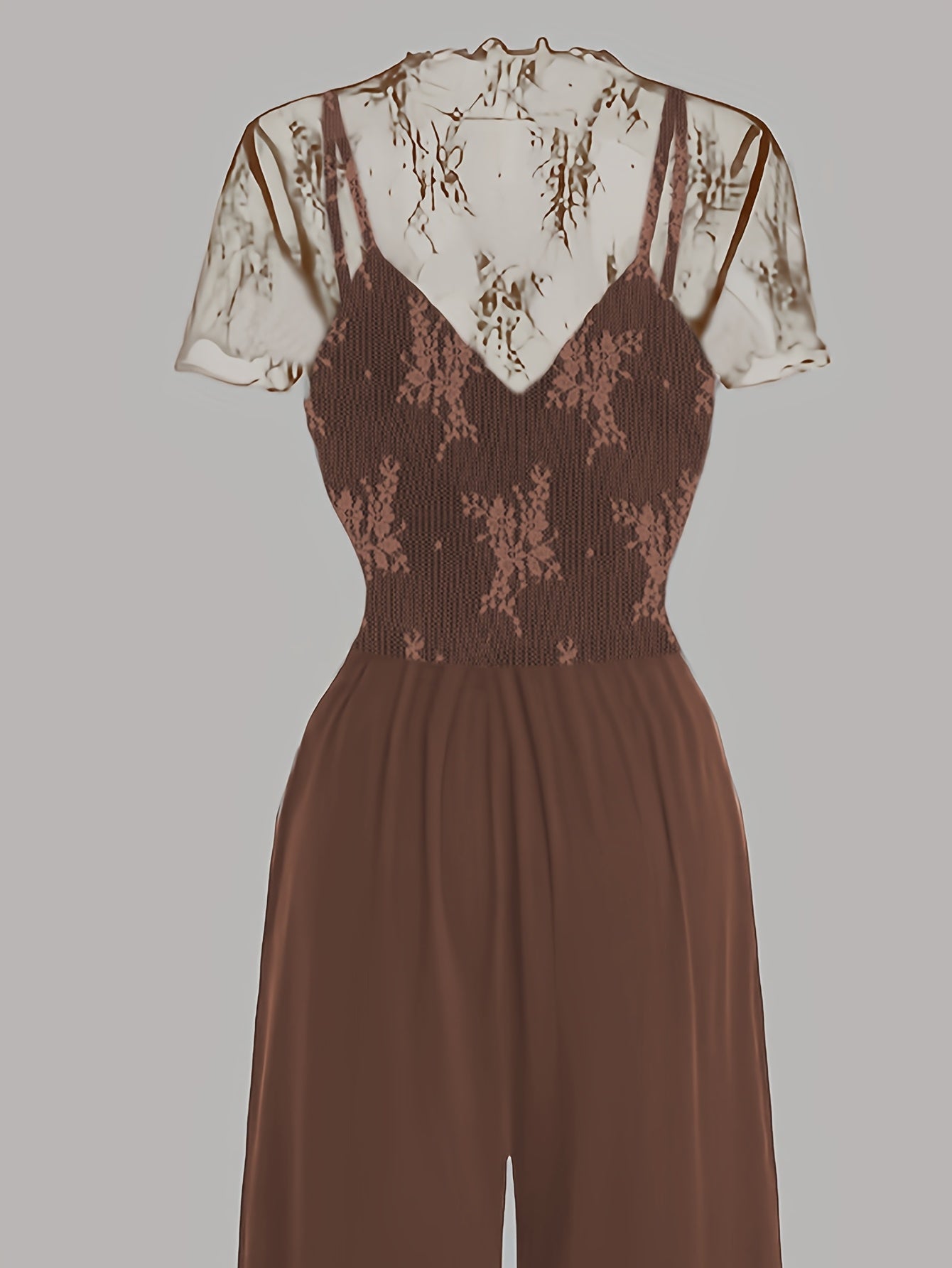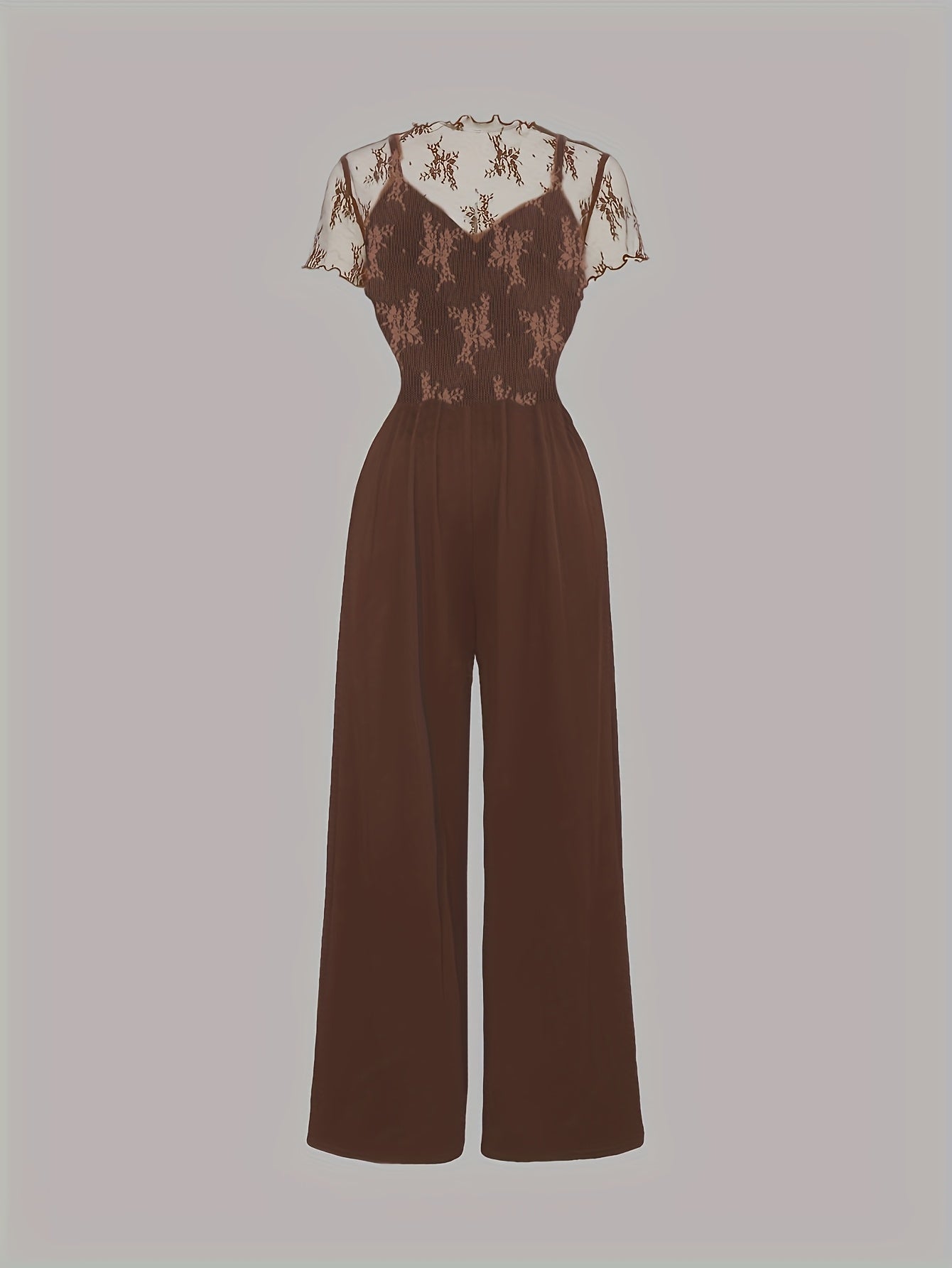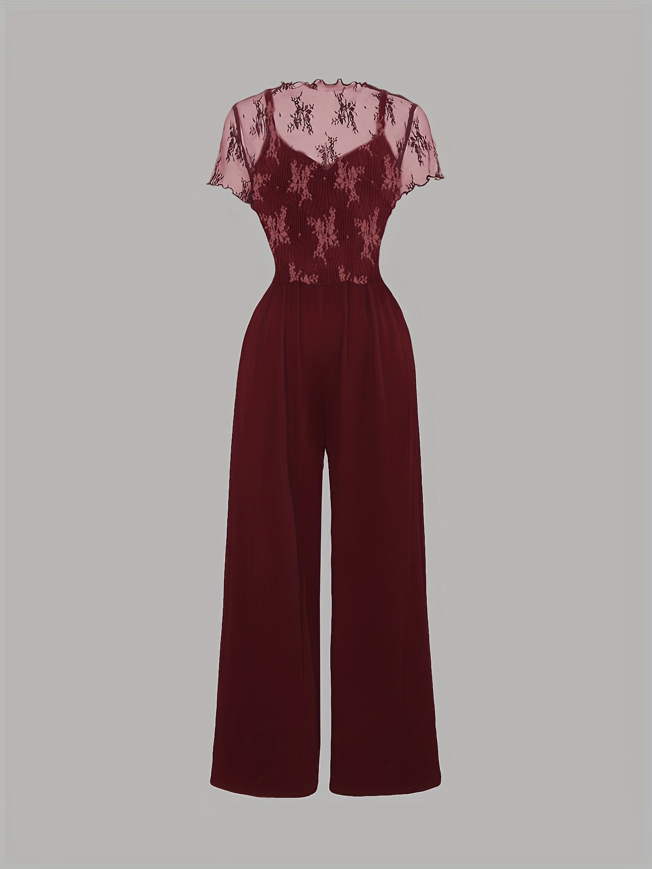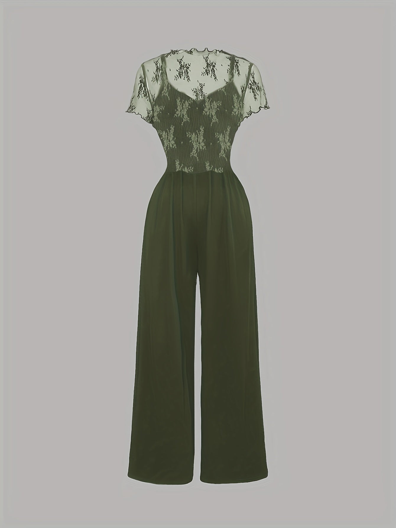 Elegant Mesh Long Sleeve Crop Top & Bodycon Wide-Leg Jumpsuit Set - Chic V-Neck, Ruched Detail, Black Mesh Blouse with Spaghetti Straps, Wide Leg Pants for Spring/Summer, Women'S Fashion, Clothing | Relaxed Fit | Chic Desig