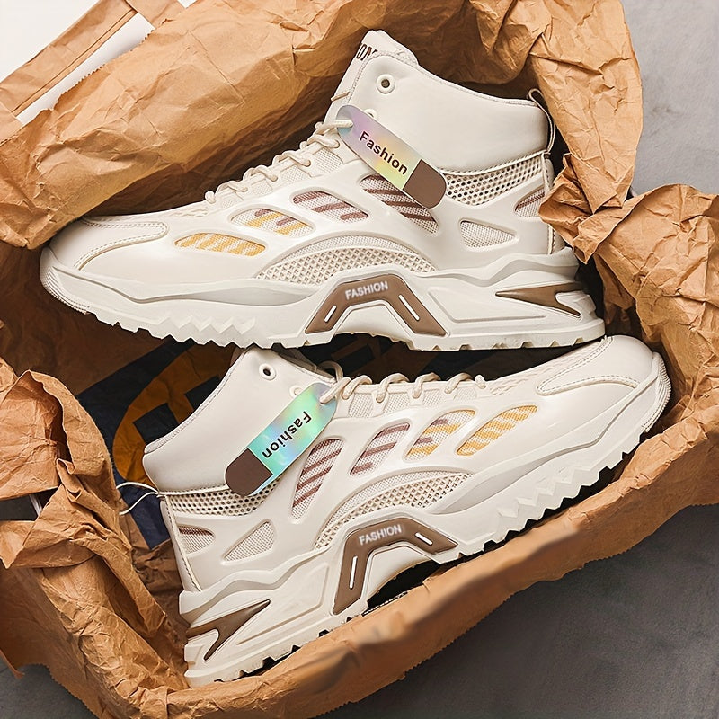 Fashion Mid-Top Sneakers for Men - Casual Street Style Athletic Shoes with Graphic Pattern, Lace-Up Closure, All-Season Round Toe Trainers with PU Upper, Fabric Lining Insole, Anti-Slip PVC Sole