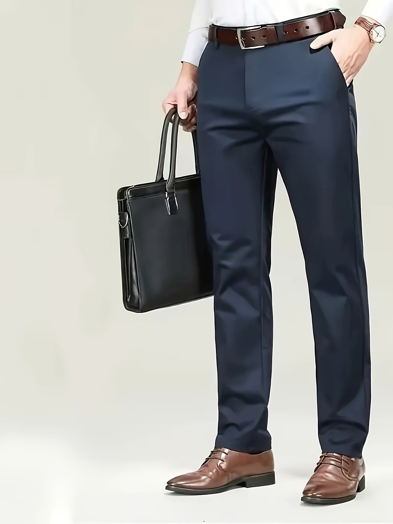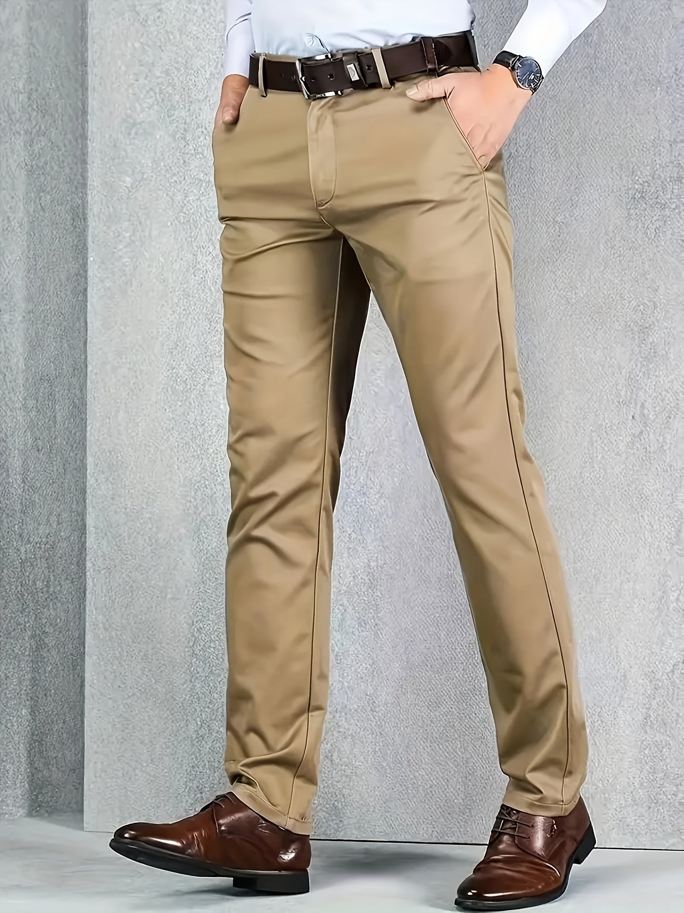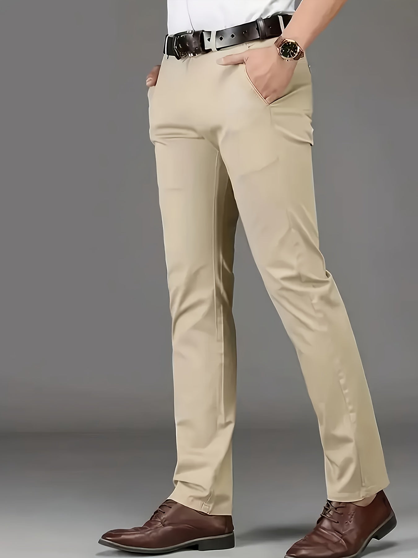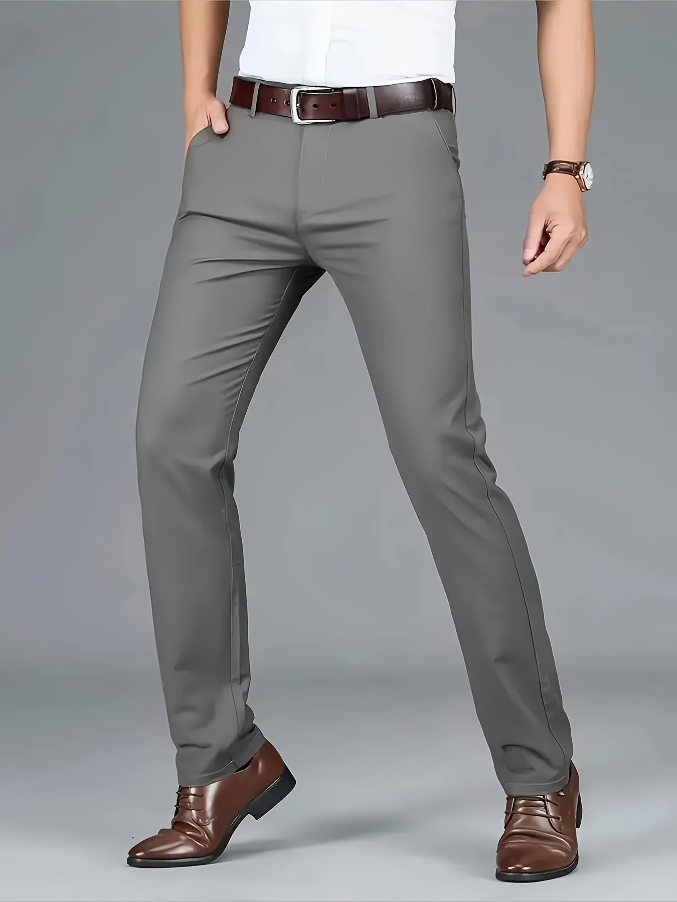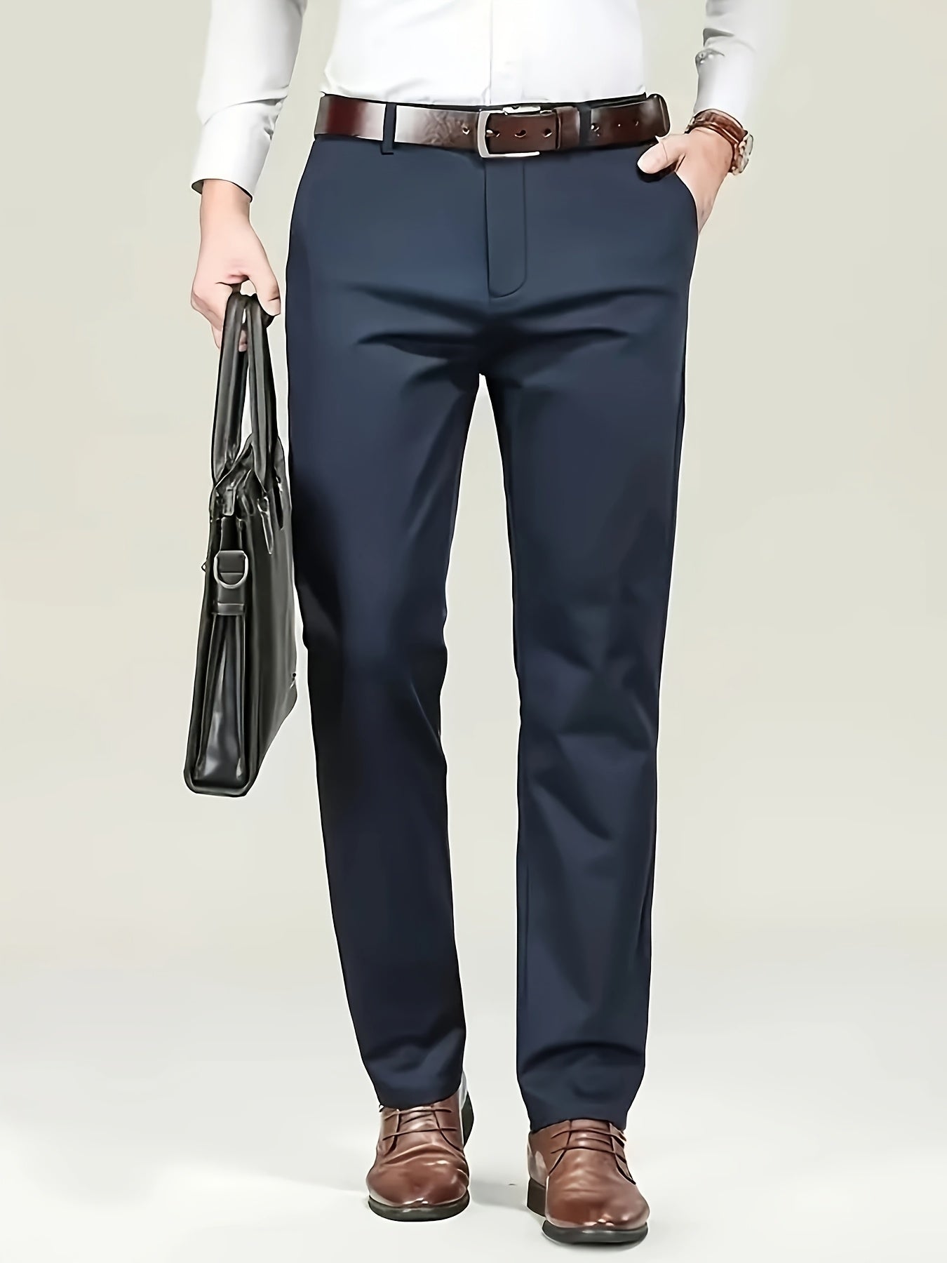 Four Seasons Men's New Casual Formal Pants Business Style Trendy Casual Long Pants Fashionable Versatile Men's Elastic Western Pants Comfortable Classic Design Casual Wear