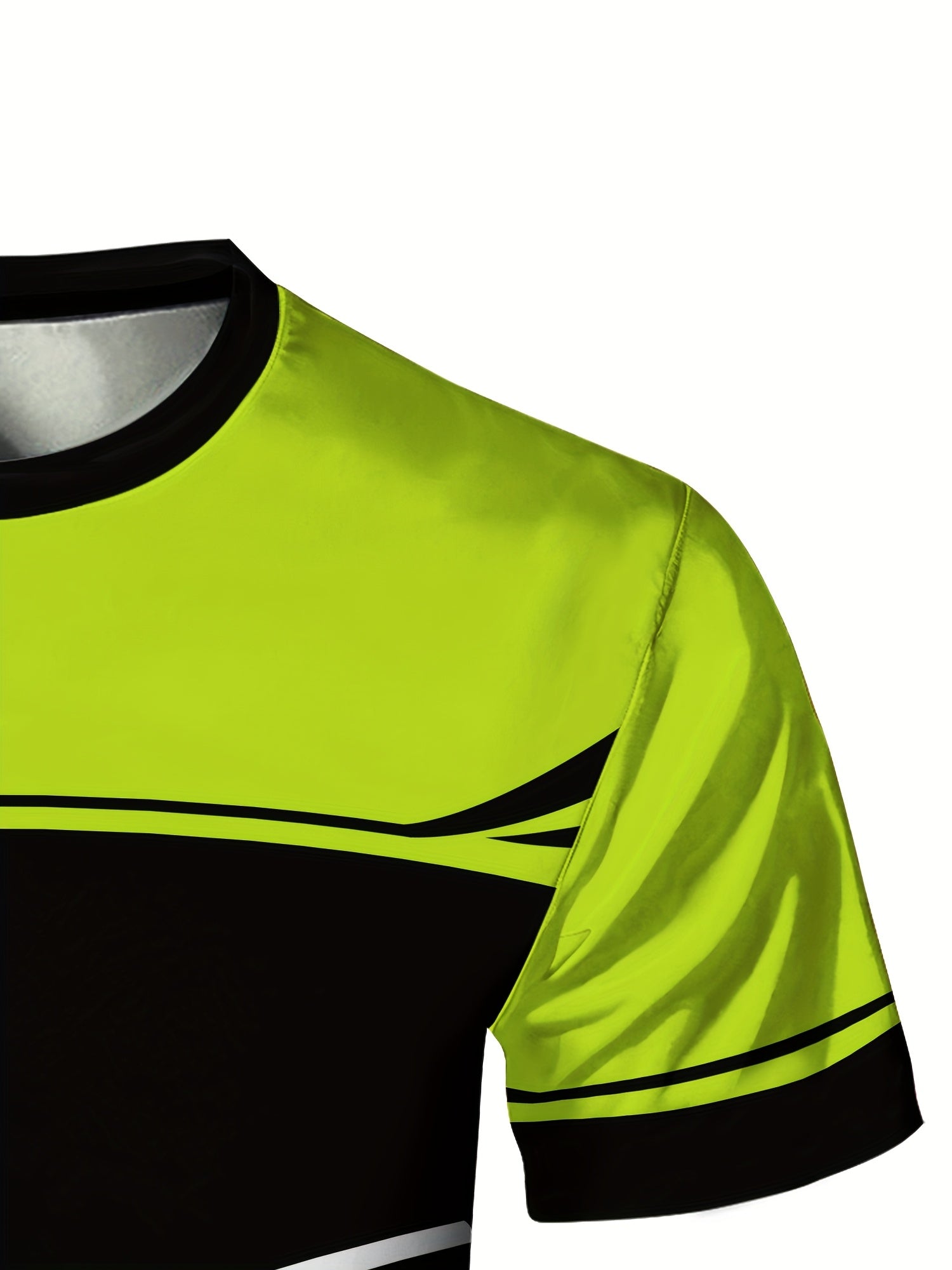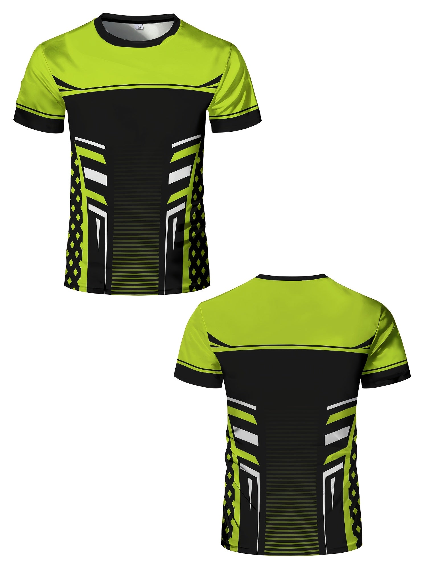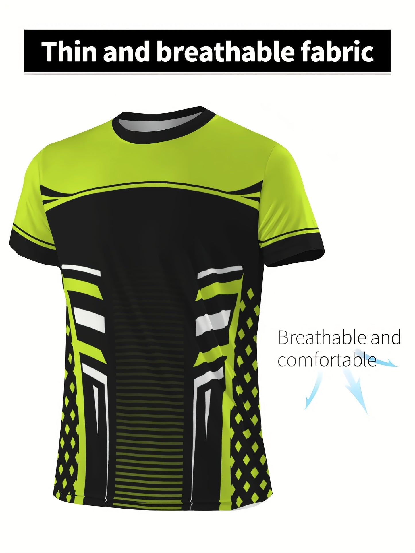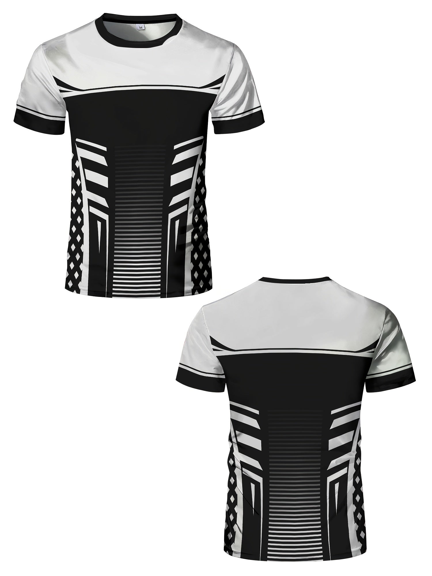 Geometric print high stretch skinny fit short sleeve crew neck T-shirt, quick-drying sports top for summer fitness, training and gym wear
