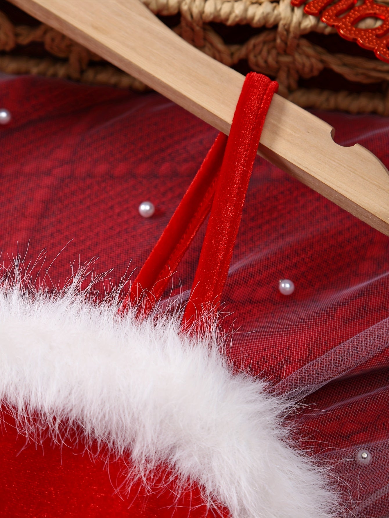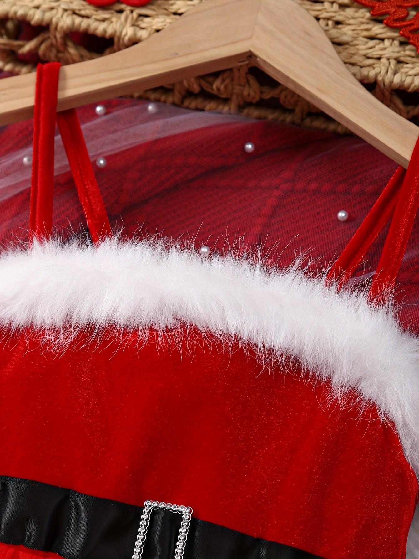 Girls' Christmas Red & White Tulle Dress with Spaghetti Strap Off-Shoulder Neckline, Long Sleeves, Fluffy Trim Hem & Golden Belt - Elegant Party Dress for Holiday Celebrations, Christmas Pageant, New Year's Eve - Machine Wash