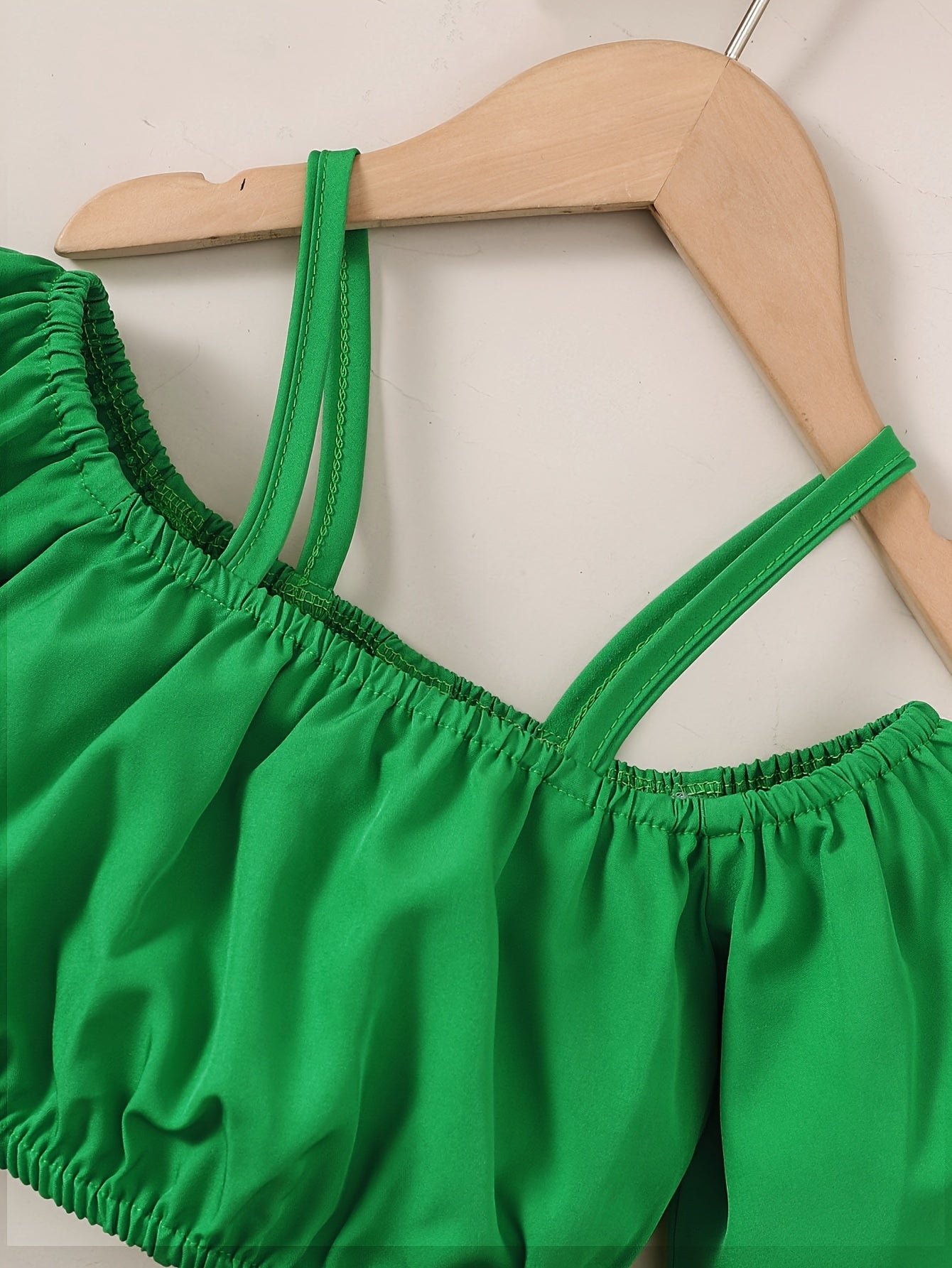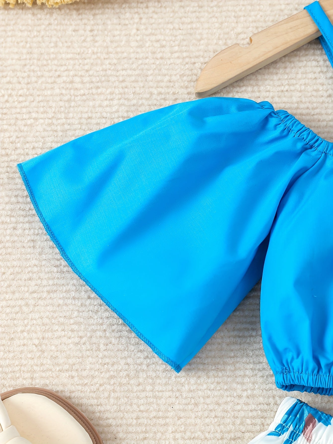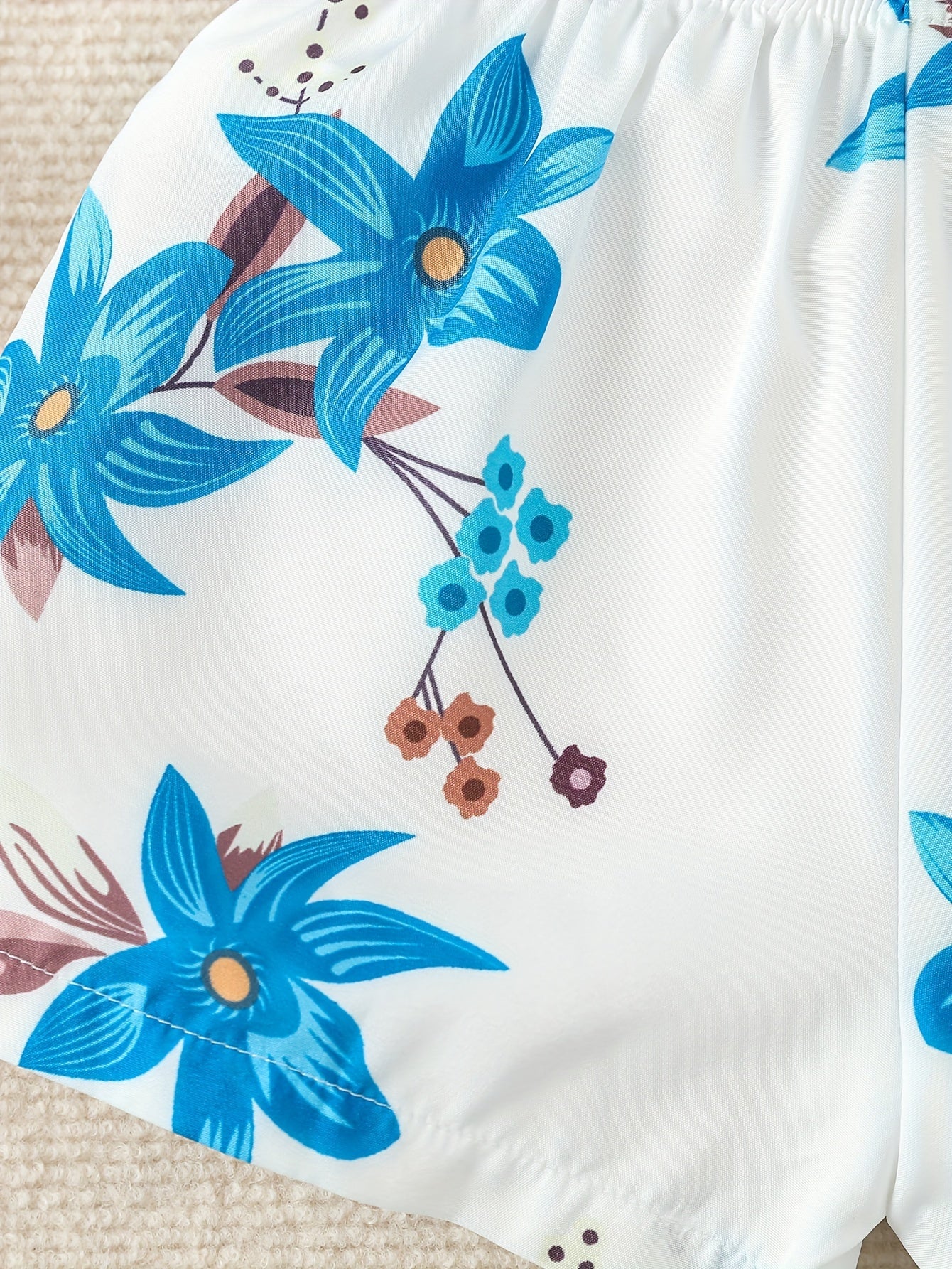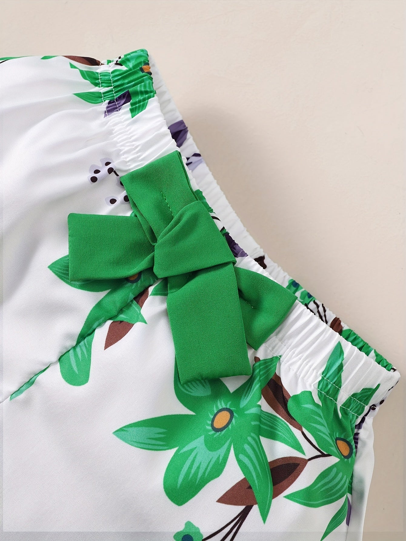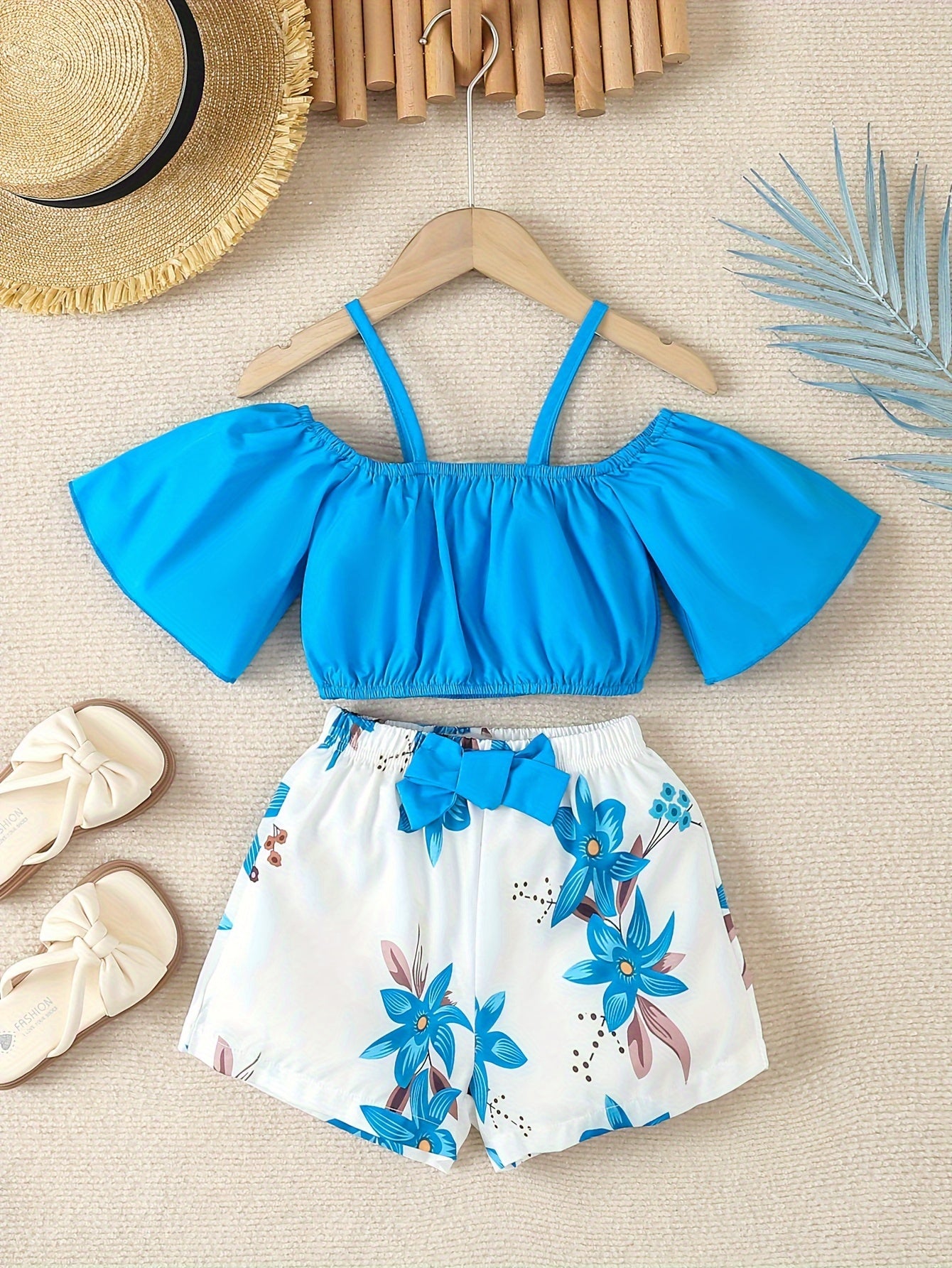 Girls' Shorts Set Two-piece Set Summer Casual Vacation Style Romantic Floral Print Shorts Set Girls' Summer Cool Off-the-Shoulder Strap Top + White Print Shorts Two-piece Set