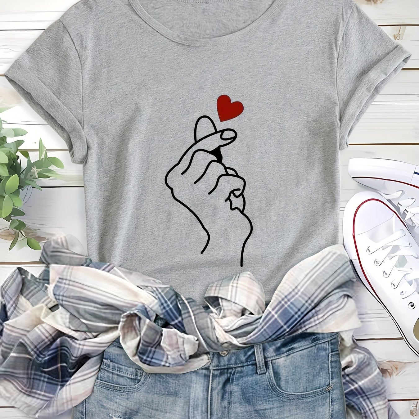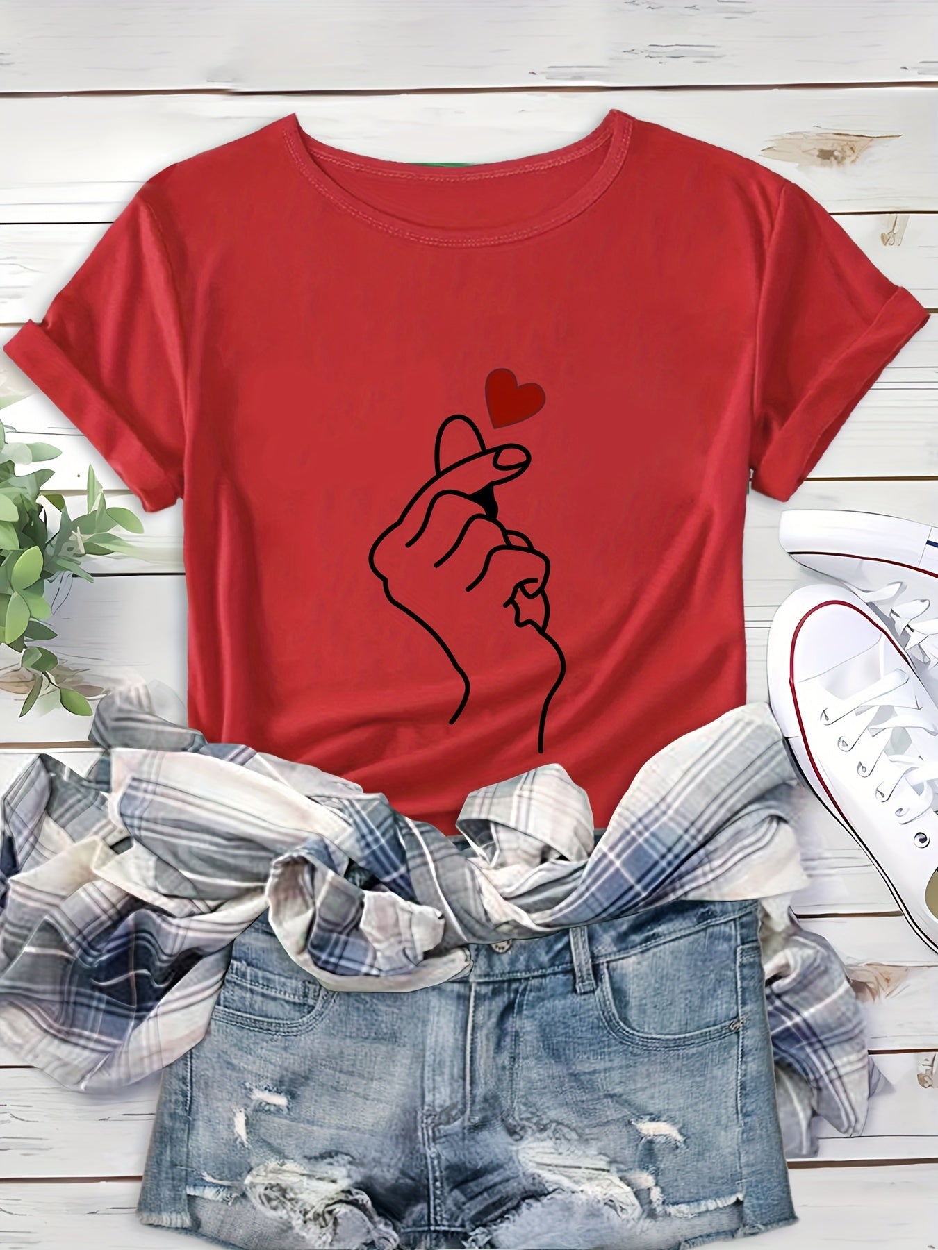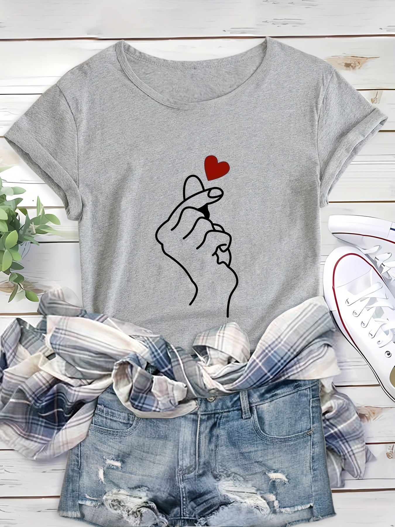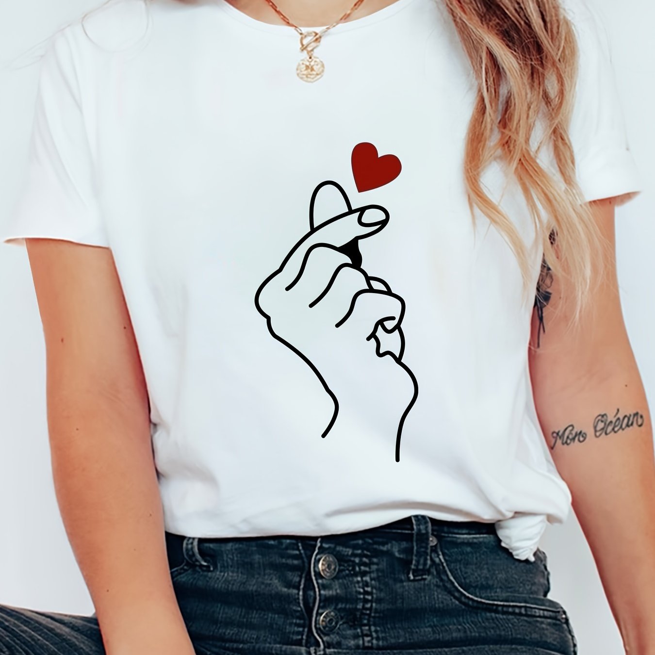 Heart Graphic Round Neck Sports T-shirt, Short Sleeve Running Casual Top, Women's Activewear