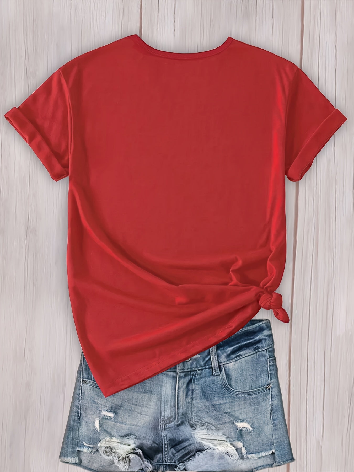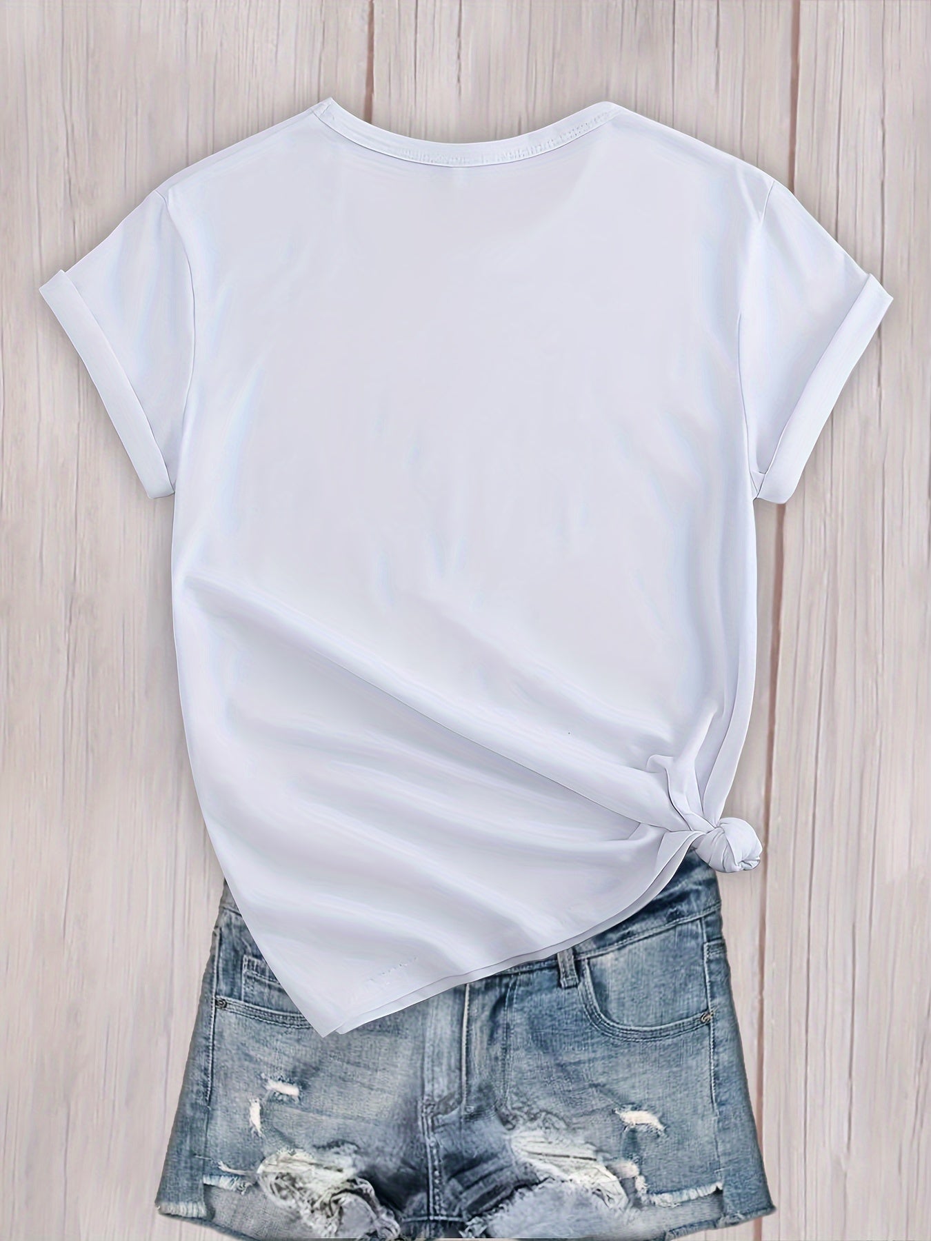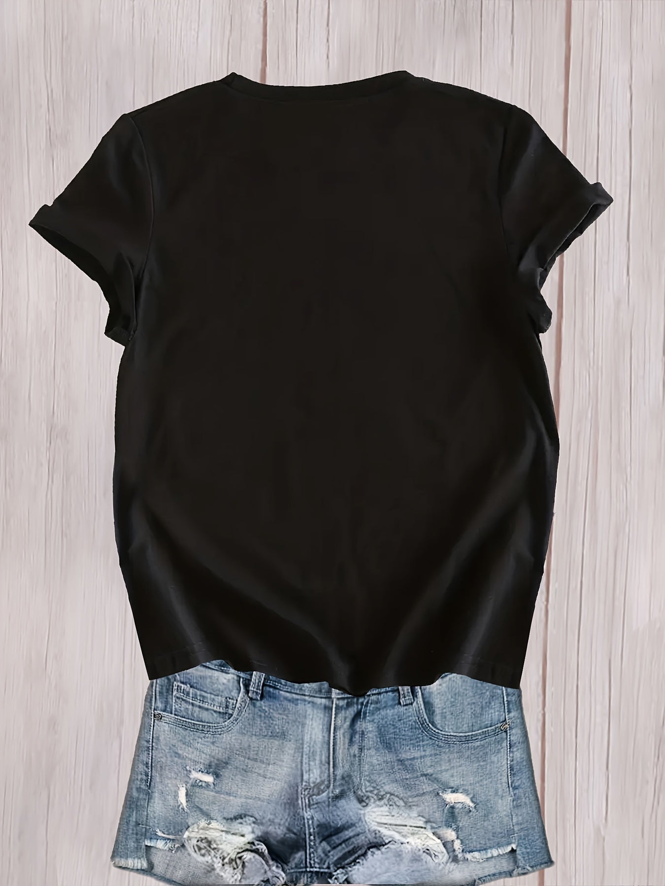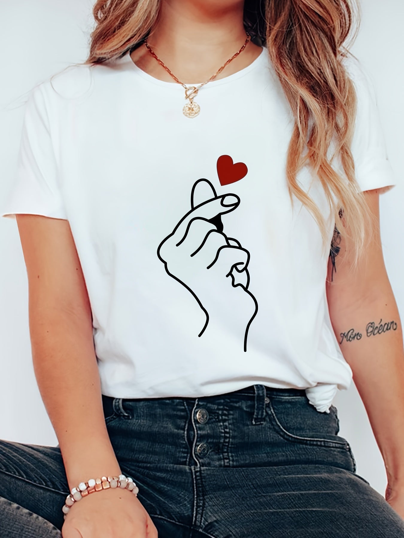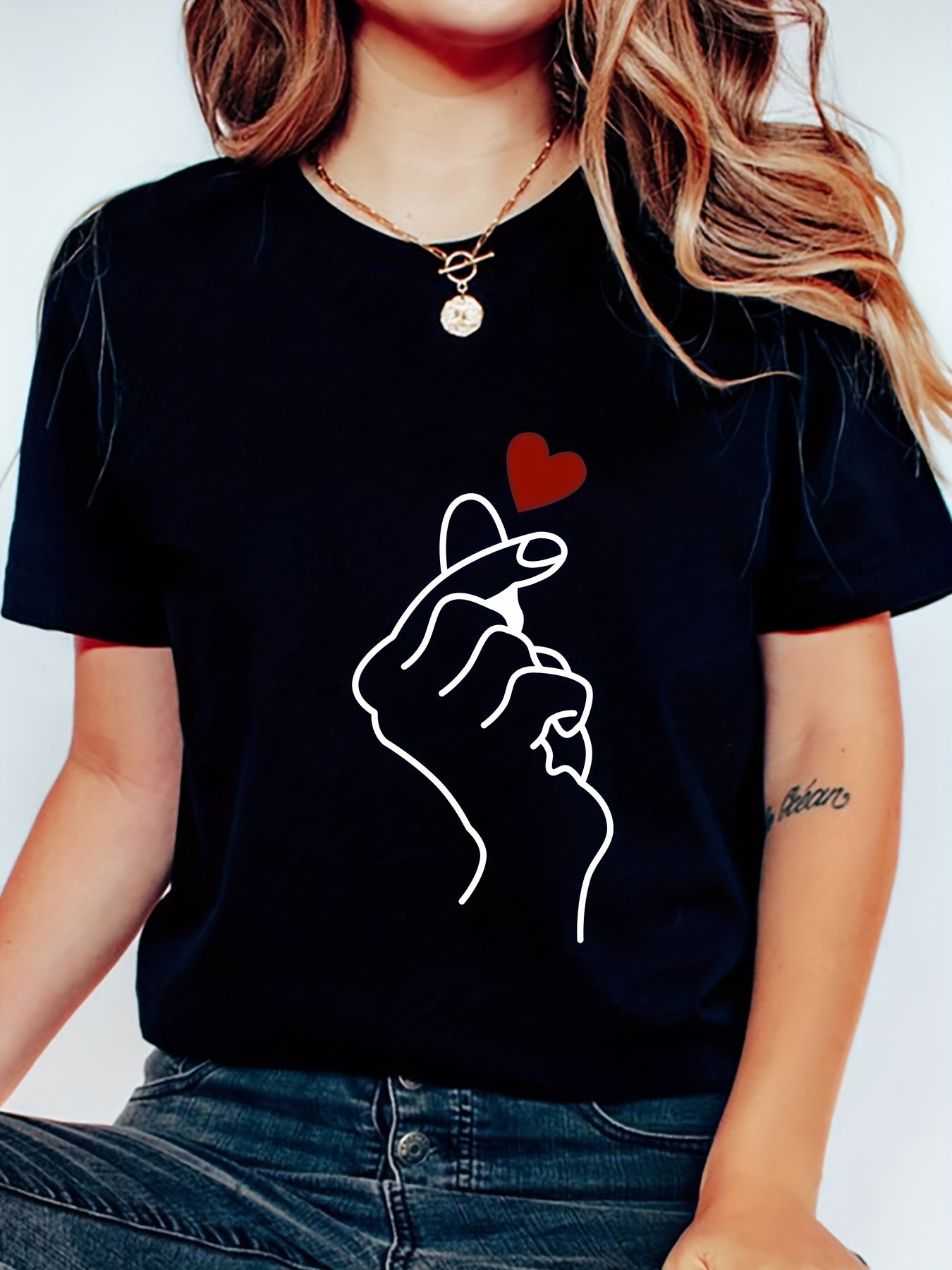 Heart Graphic Round Neck Sports T-shirt, Short Sleeve Running Casual Top, Women's Activewear