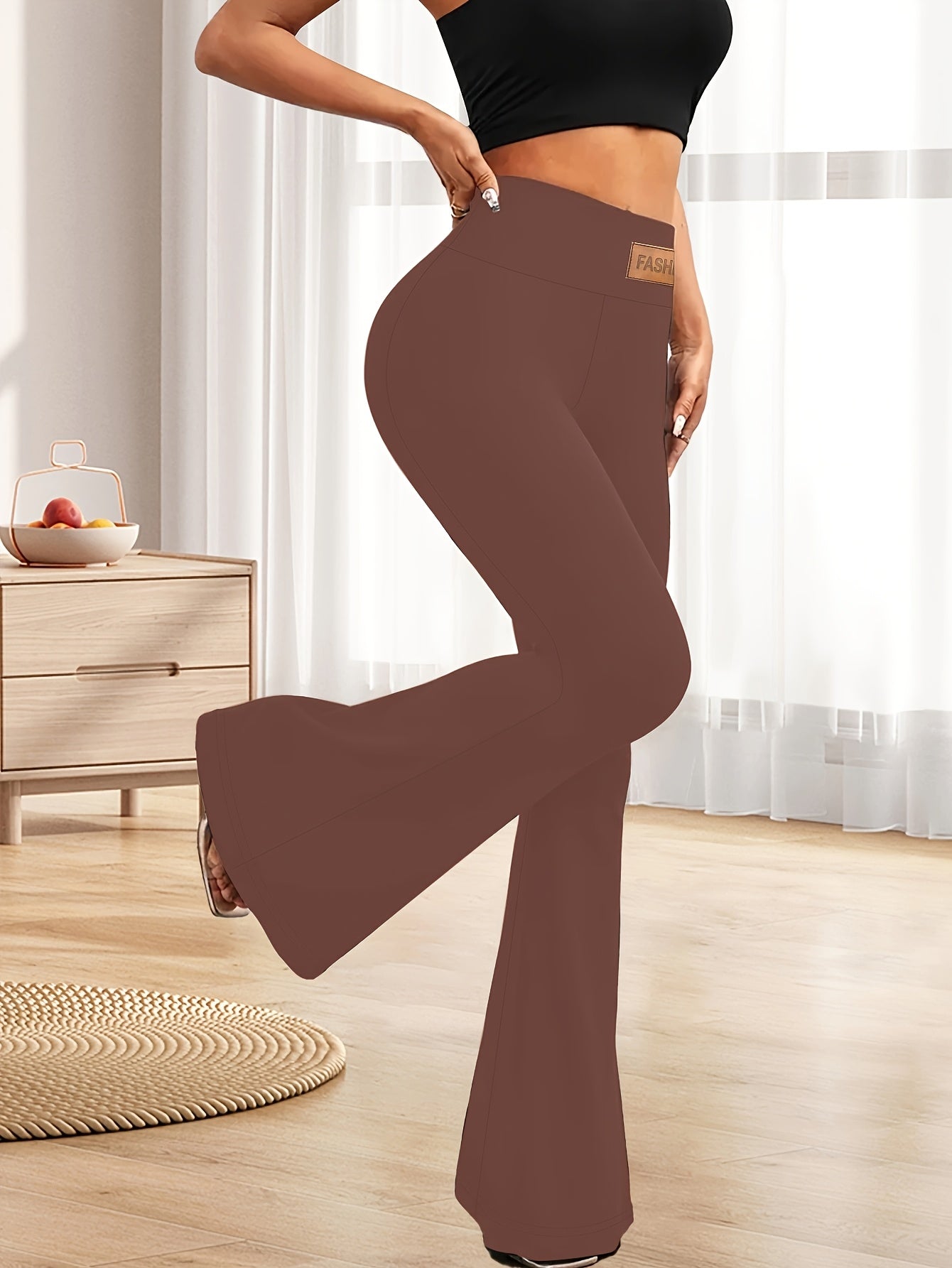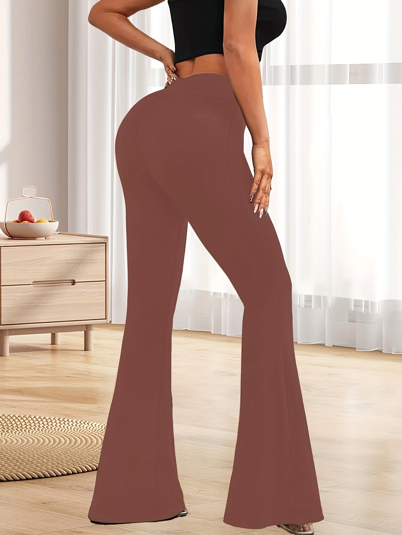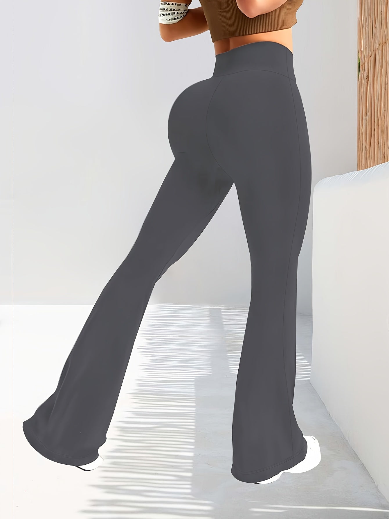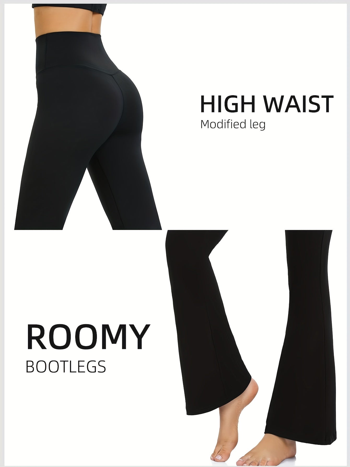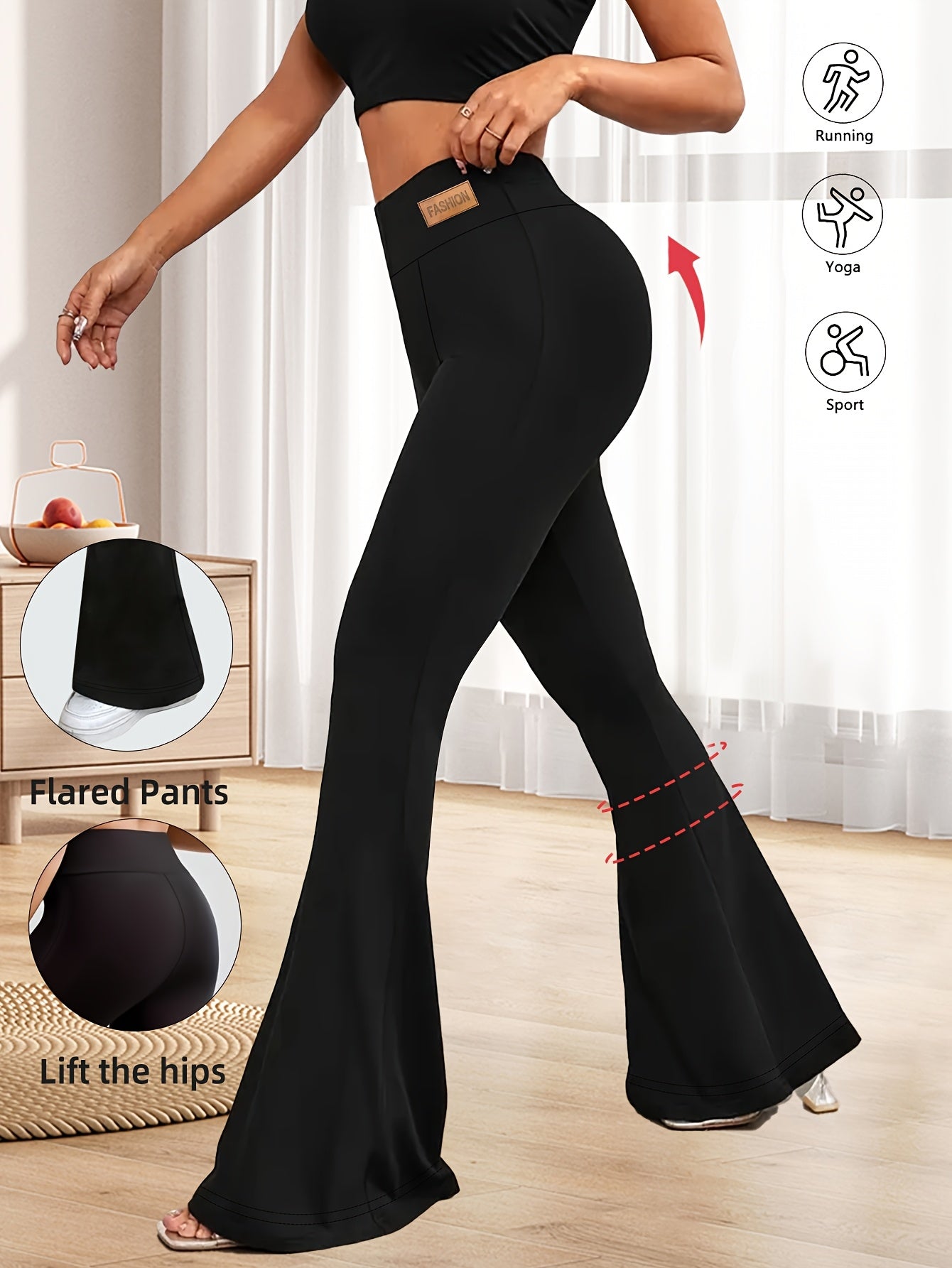 High-Waisted Flared Leggings for Women - Stretchy Black Polyester Pants with Tummy Control, Slimming Fit, and Breathable Design for Spring/Summer/Fall Casual Wear, Spring Summer Leggings | Fitted Leggings | Elastic Waistband