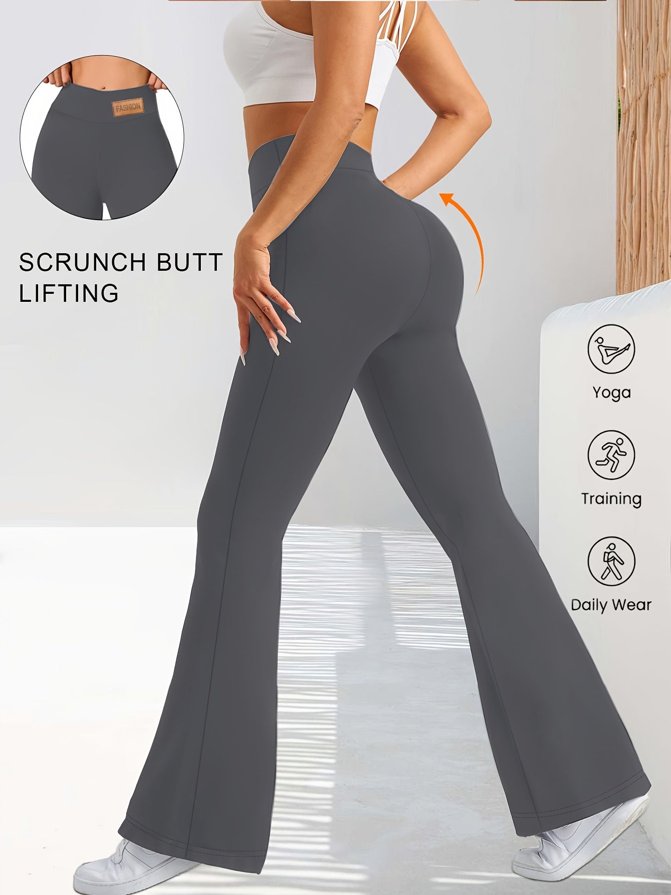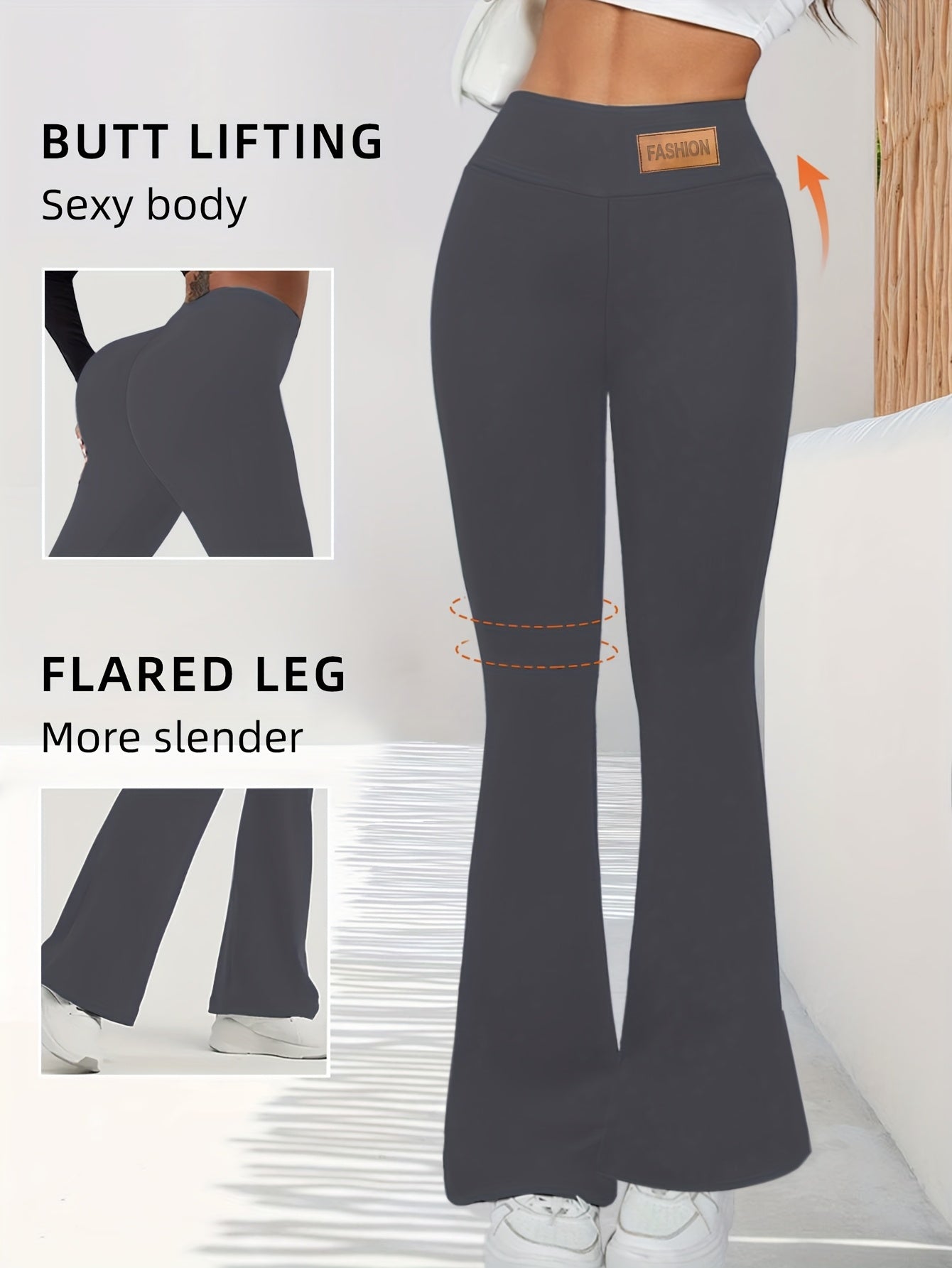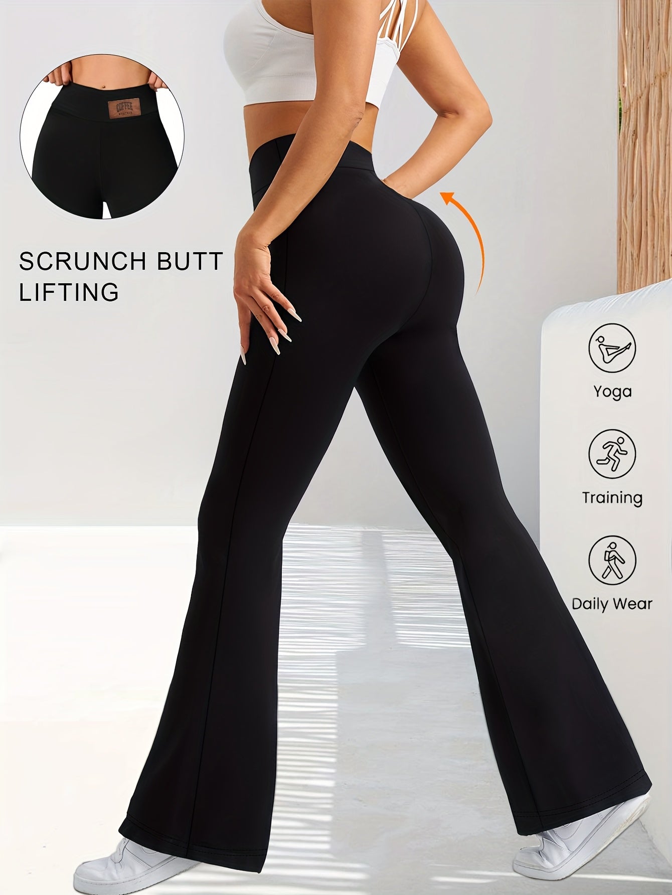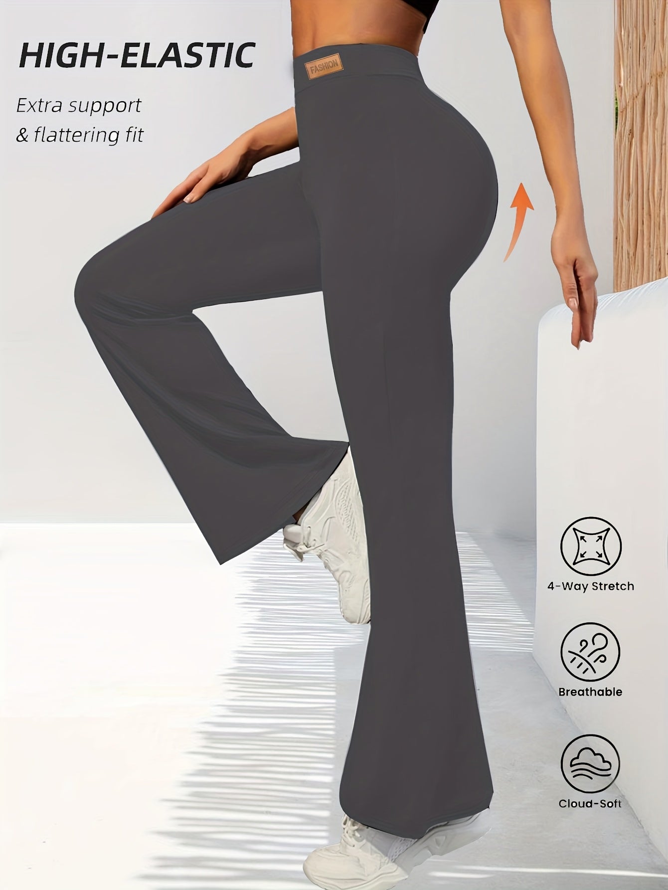 High-Waisted Flared Leggings for Women - Stretchy Black Polyester Pants with Tummy Control, Slimming Fit, and Breathable Design for Spring/Summer/Fall Casual Wear, Spring Summer Leggings | Fitted Leggings | Elastic Waistband