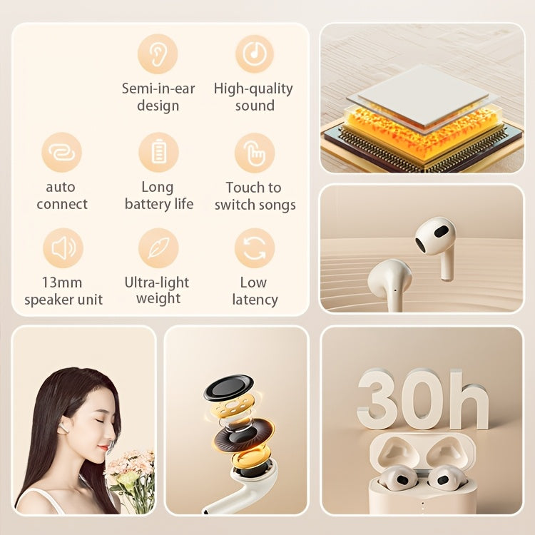 HP Wireless EarBuds, Over 30 Hours Battery Life, Touch Control, Rechargeable Lithium Battery, Compatible with Apple & Android, Built-in Microphone, Type-C Port Charging