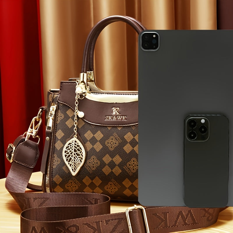 INCK KMCRK Women'S Elegant Large Capacity Tote Bag with Removable Shoulder Strap, Brown & Black Checkered Pattern, Golden-Tone Hardware, Polyester Lining - Ideal for Work, Travel, and Daily Use, Travel Tote Bag | Checkered Pa