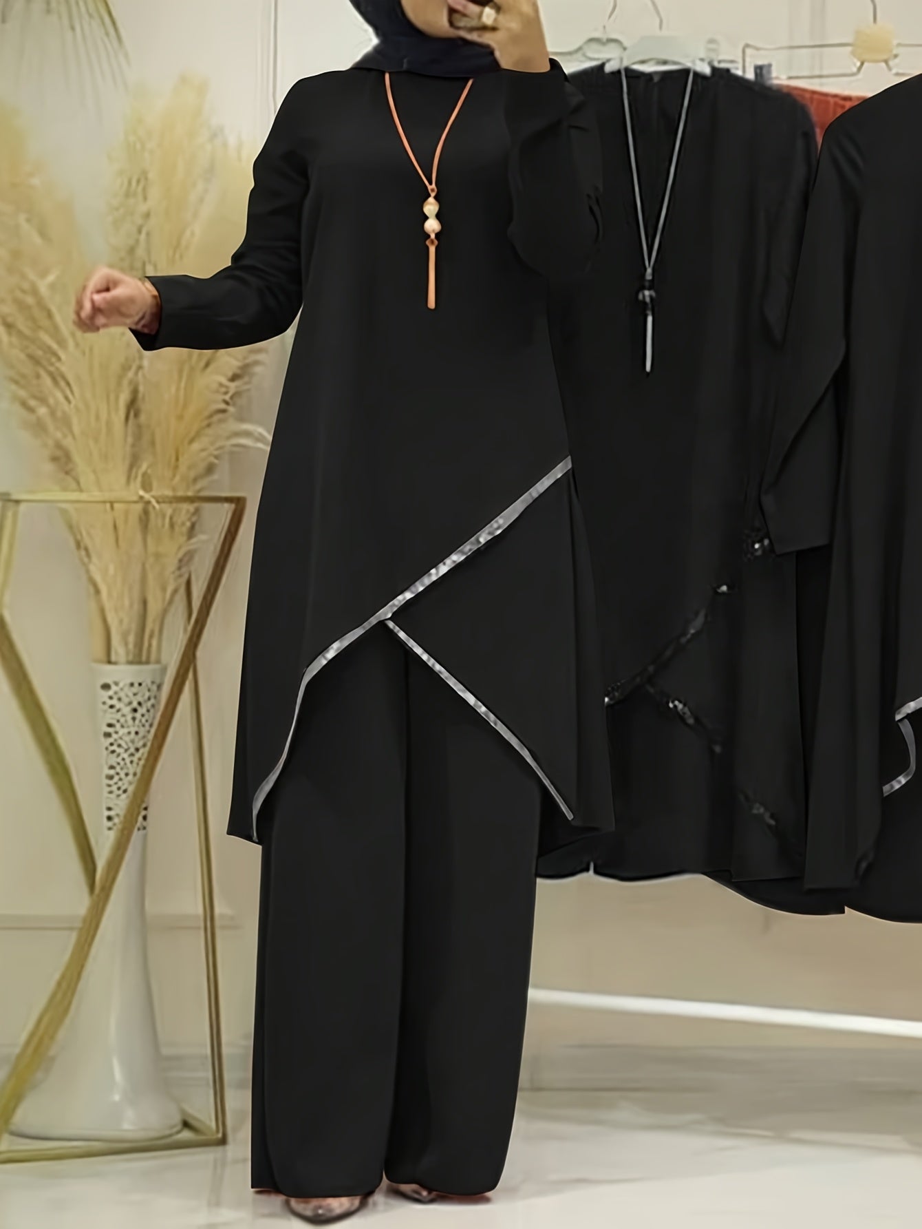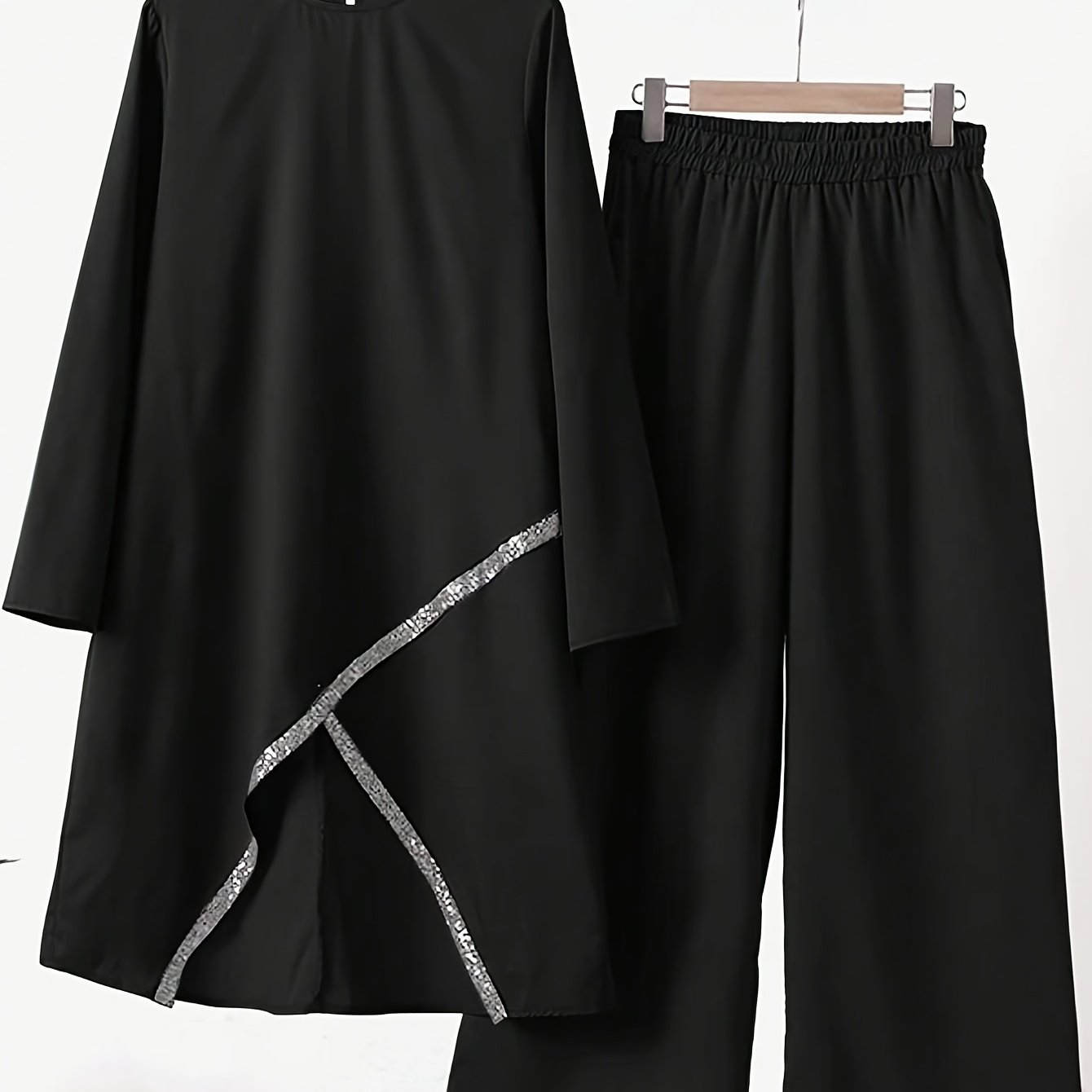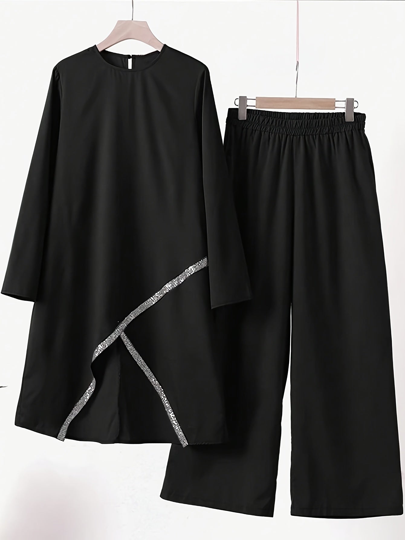 Irregular Long Sleeve New Top Women's Wide Leg Pants Fashion Set Loose Casual Two-Piece Suit