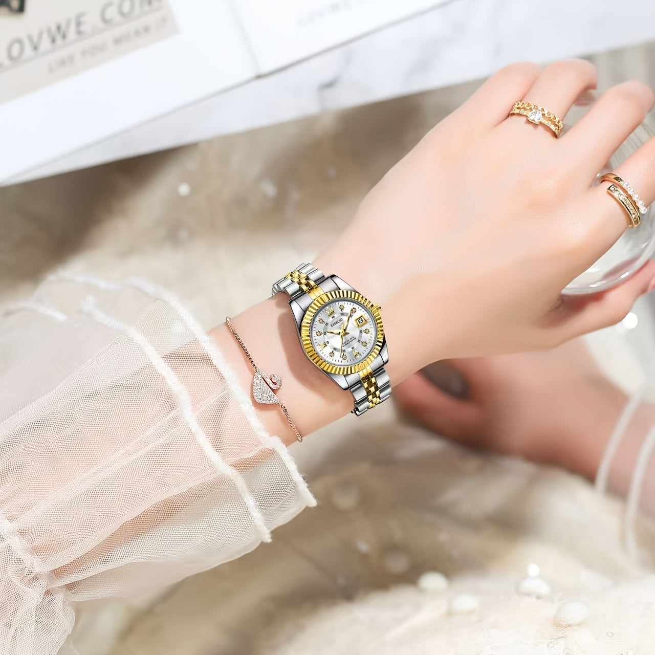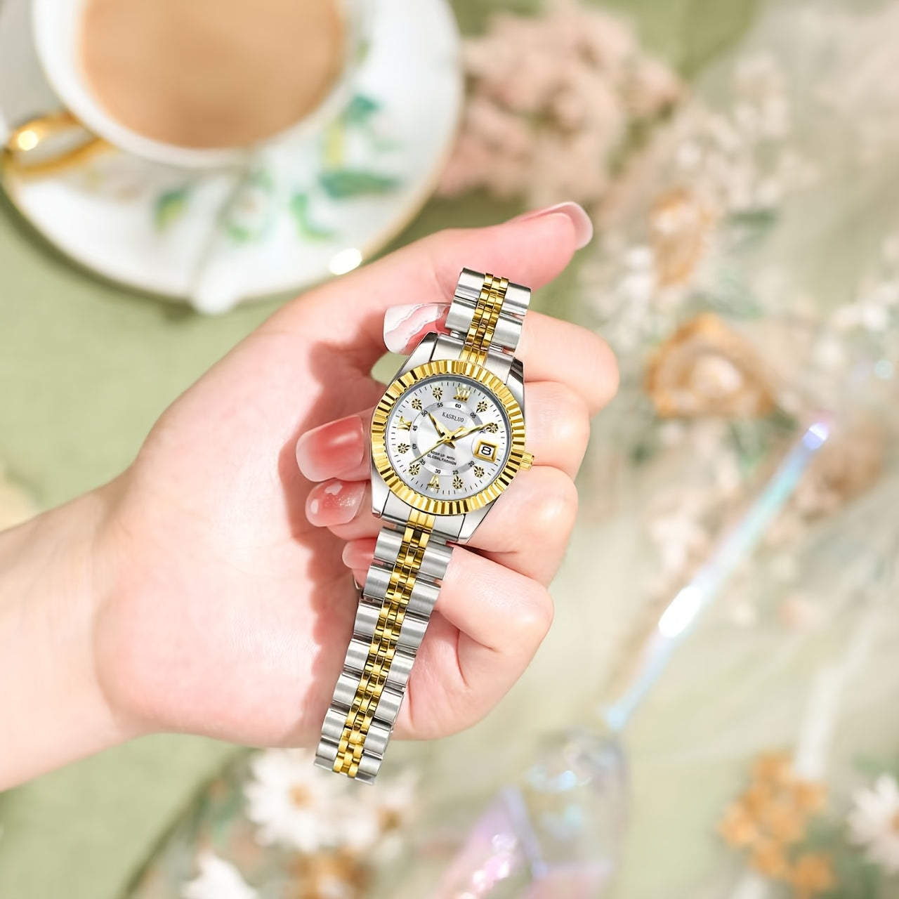 KASRLUO Elegant Women's Quartz Watch - Luminous Date, Stainless Steel Band, Precise Movement with Moon Phase Calendar, Timepiece