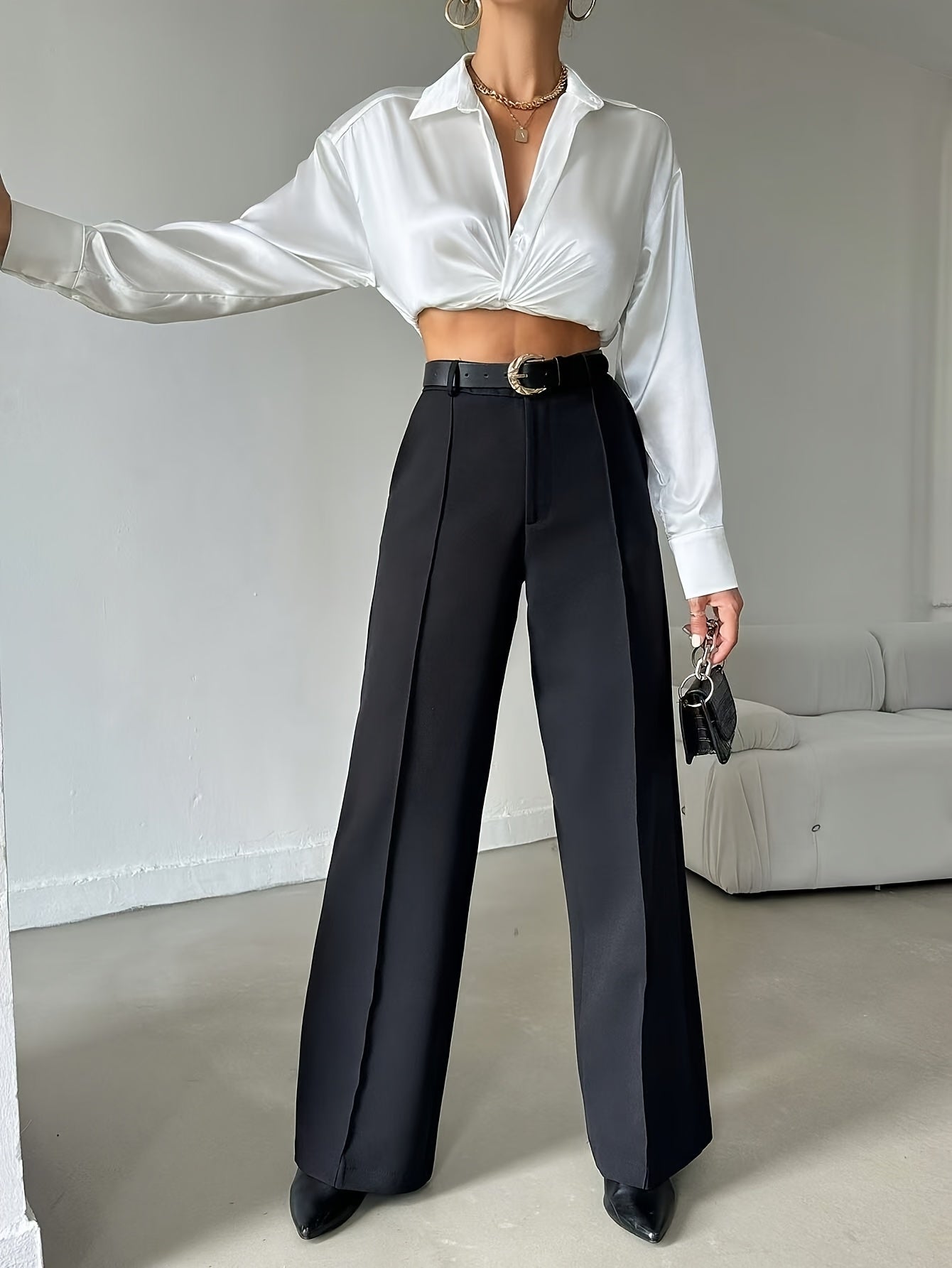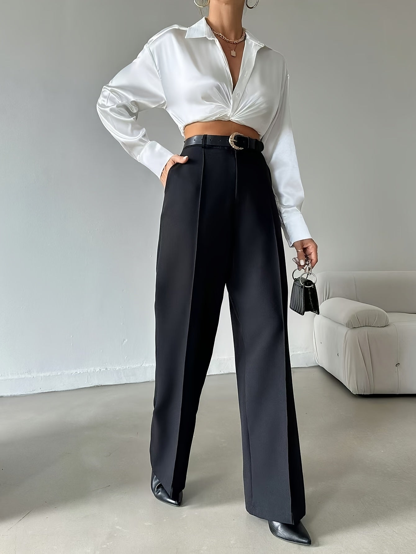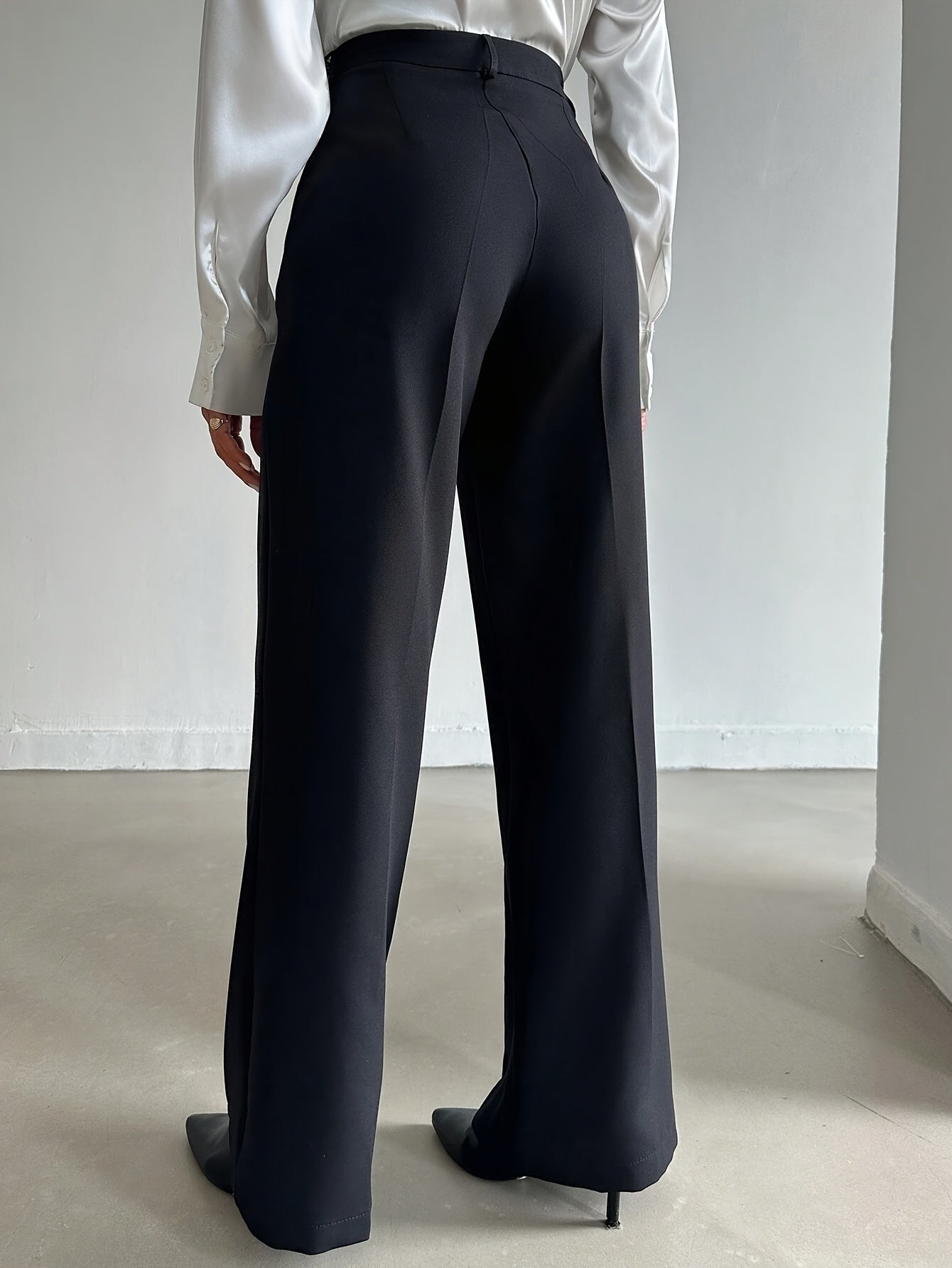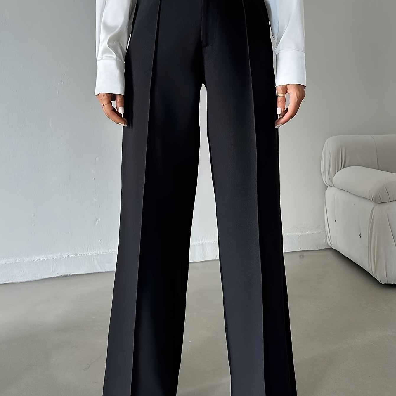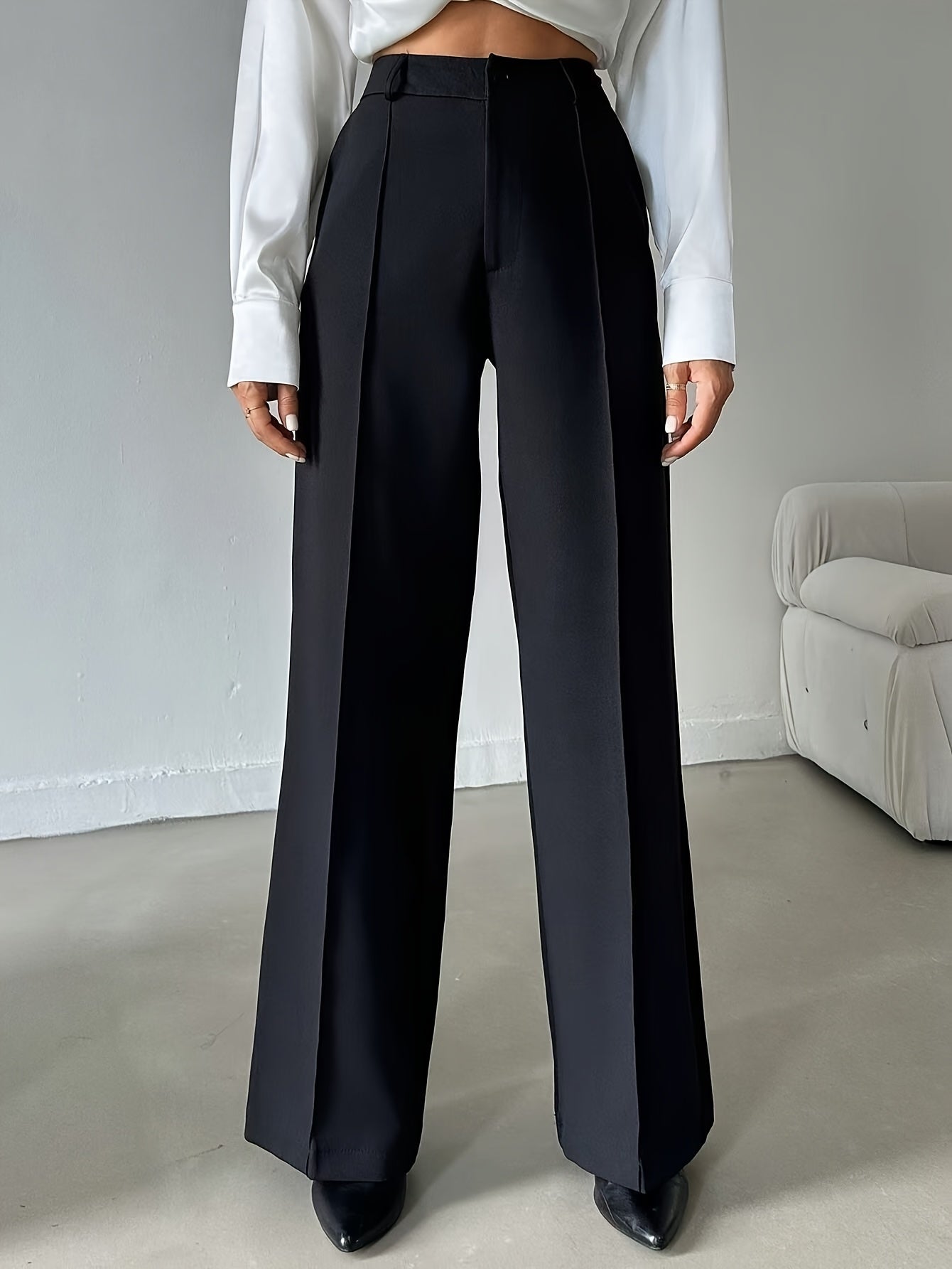 Ladies Elegant Solid Color Straight Leg Polyester Pants 99110643 with Pocket for Adult