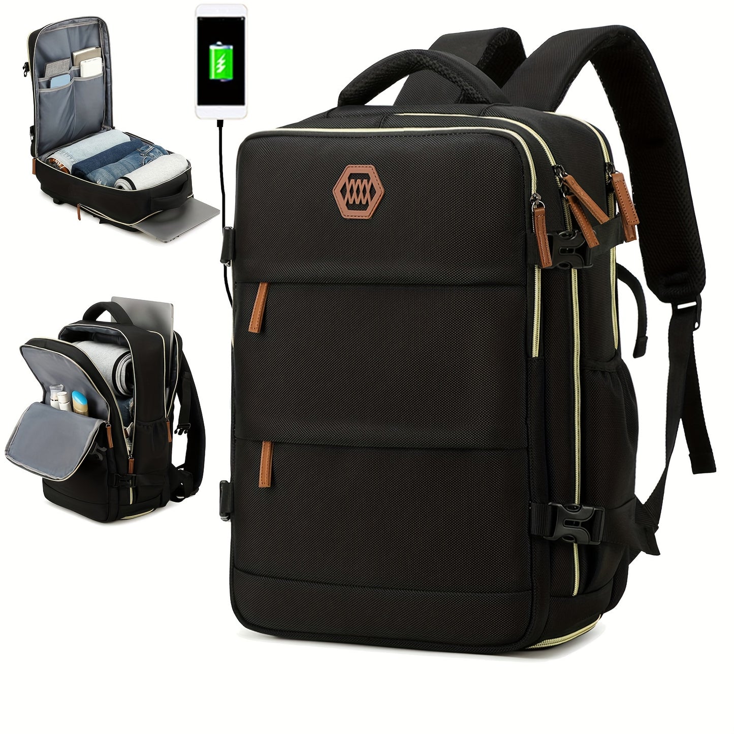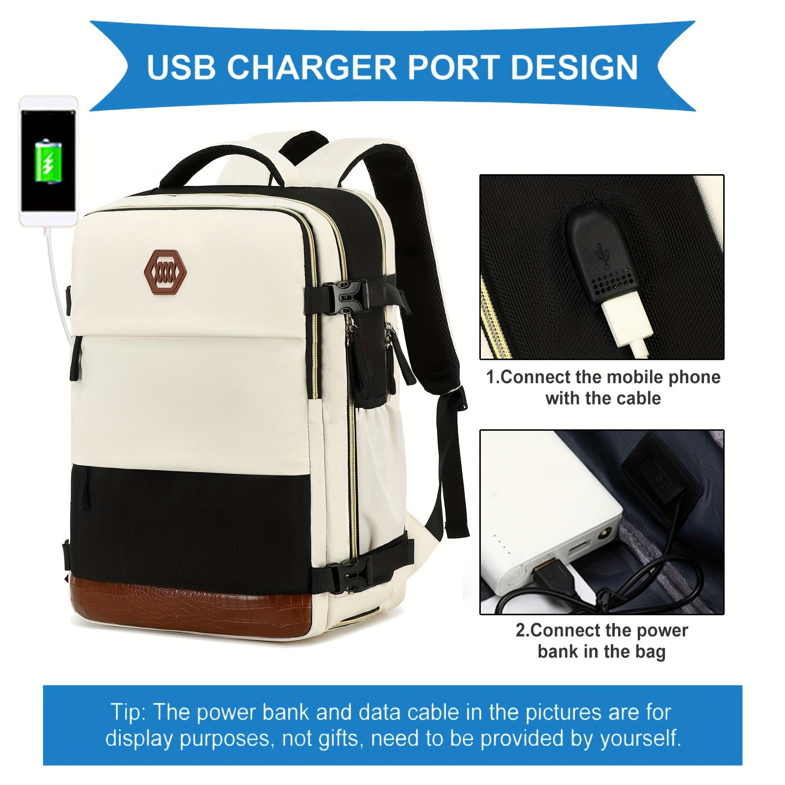 Large Capacity Women'S Travel Backpack with Shoe Compartment, Flight Approved Carry-On, Business Laptop Bag, Polyester Lined, Adjustable Strap, Zipper Closure, Solid White, USB Powered