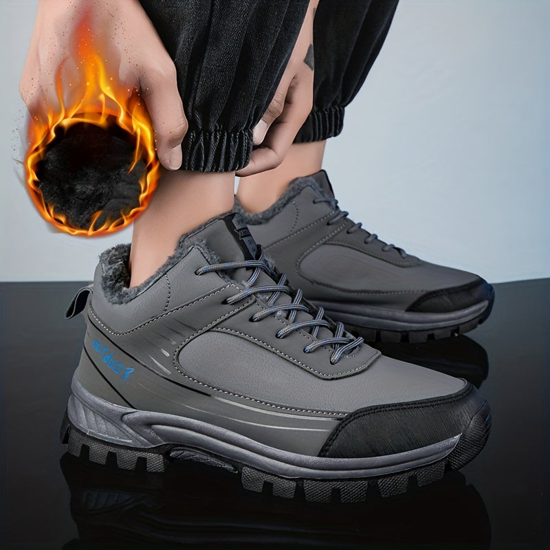 LEIJOP Men'S & Women'S Winter Snow Boots - Thermal Insulated Low-Top Hiking Boots with TPR Sole, Lace-Up Closure, All-Terrain Traction - Cold Weather Outdoor Boots for, Snowshoeing, Ice, And Rocky Terrain - Warm & Durable Pu/