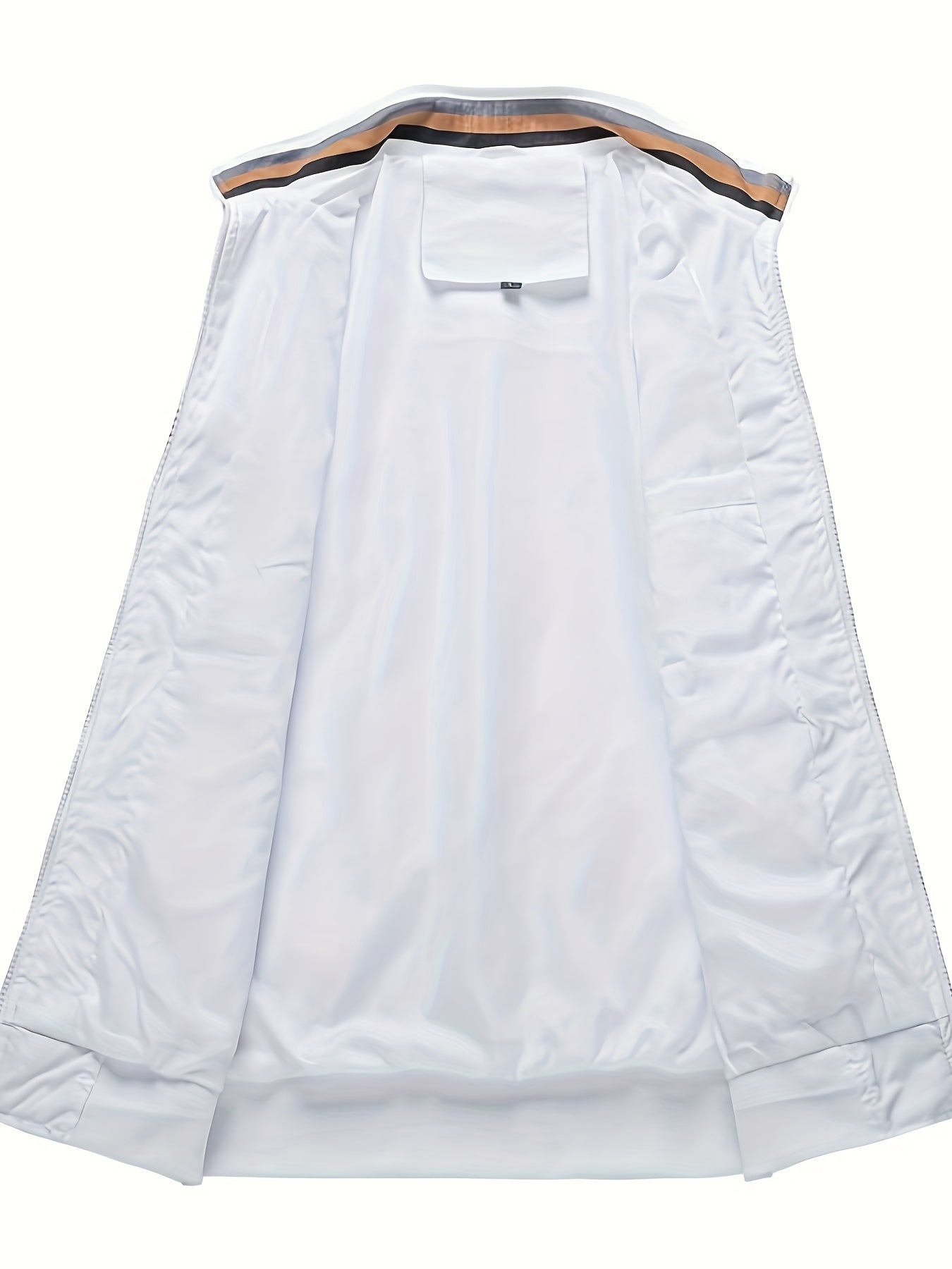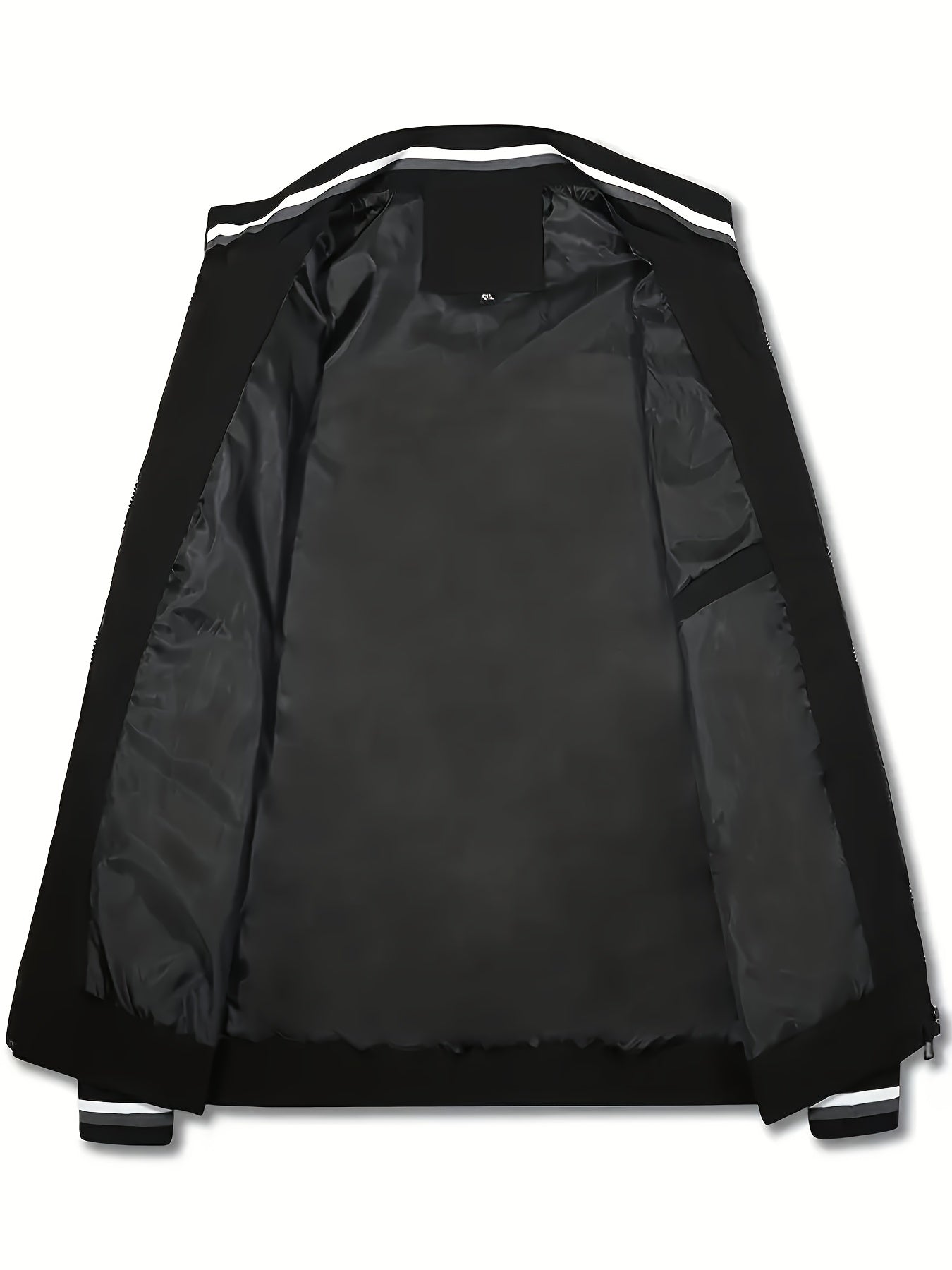 Lightweight And Trendy Men's Long Sleeve Zipper Jacket With Stand Collar, Pockets And Stripe Pattern Pieces, Suitable For Spring And Autumn Outdoors Activities