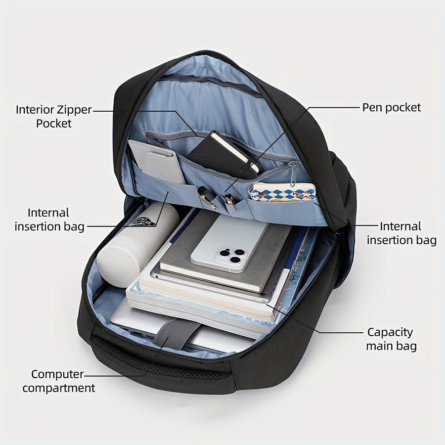 Lightweight Black Laptop Backpack - Durable, Adjustable Shoulder Straps, Zippered Compartments - Ideal for Travel & Daily Use, Laptop Bag