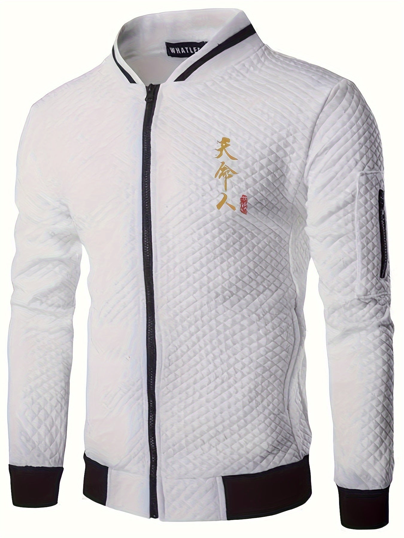 [Lightweight Design] Men's Navy Blue Varsity Jacket with Golden Embroidery - Casual Zip-Up Baseball Coat for Fall/Winter, Quilted Polyester Fabric, Loose Fit, Machine Washable