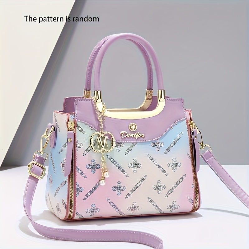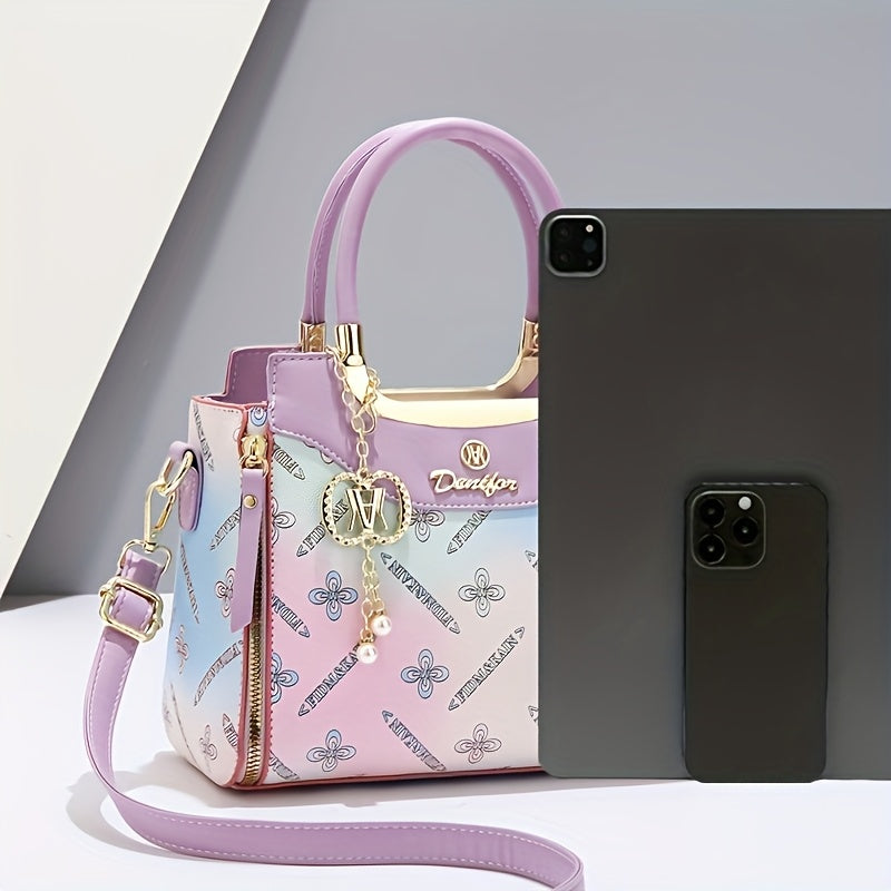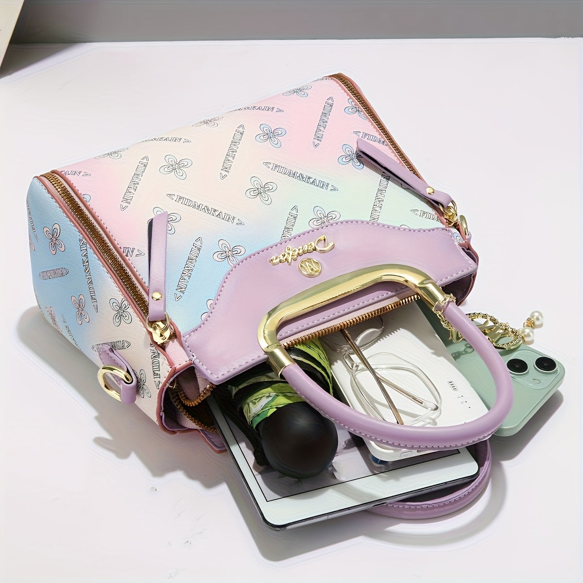 LOEYN Women'S Elegant Crossbody Bag with Detachable Strap - Chic Floral & Butterfly Print, Golden-Tone Hardware, Zipper Closure, Polyester Lining - Perfect Gift for Mom, Versatile Shoulder & Handbag, Fashion Accessory | Flora