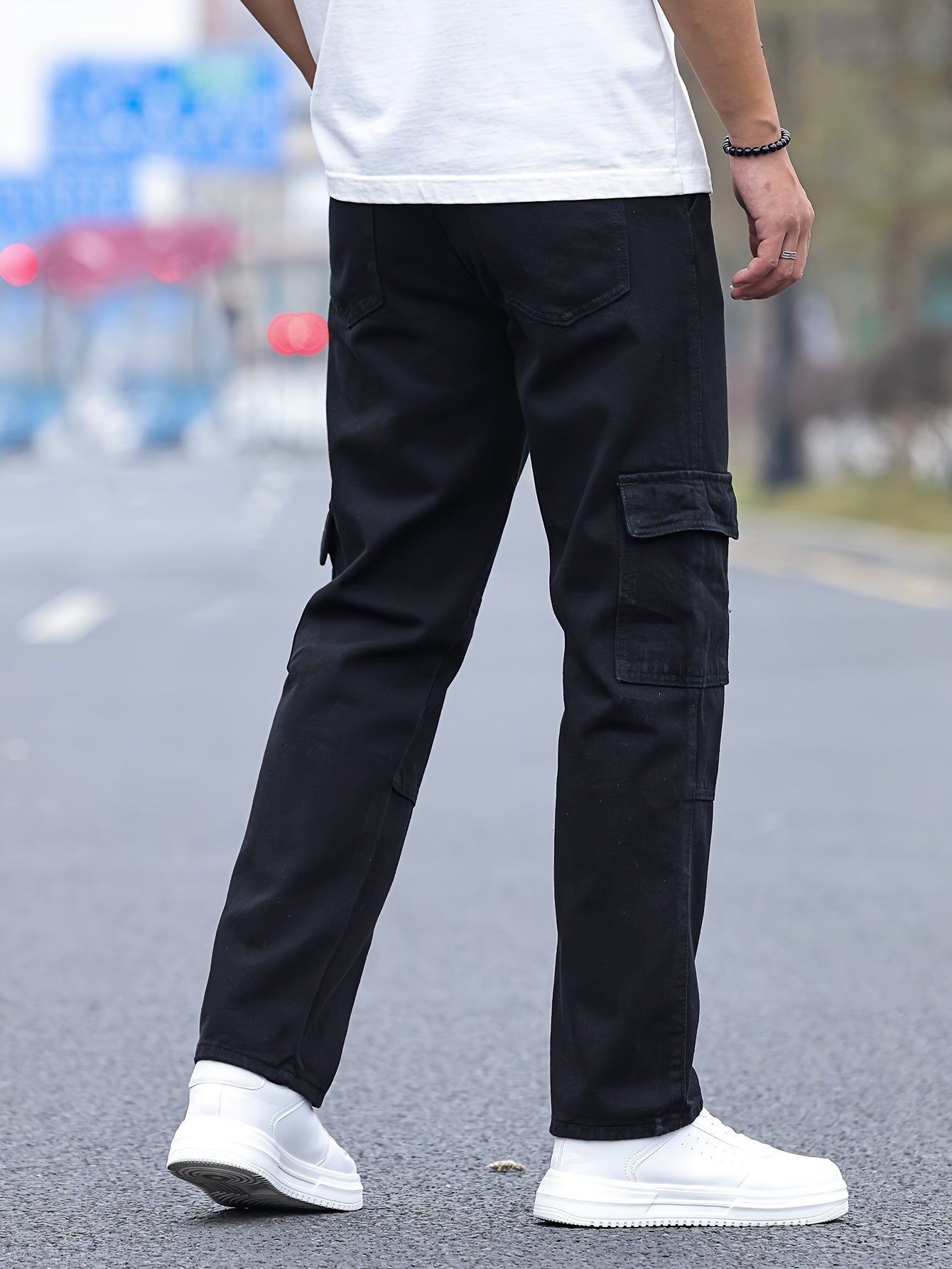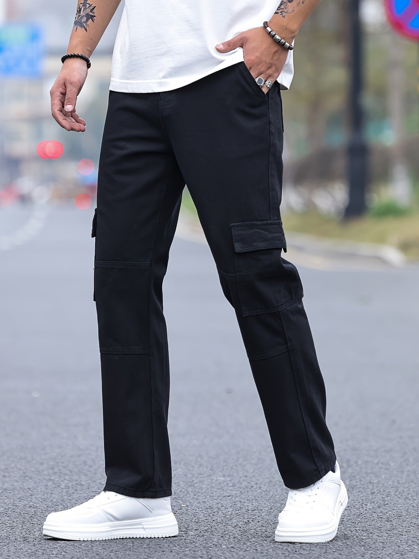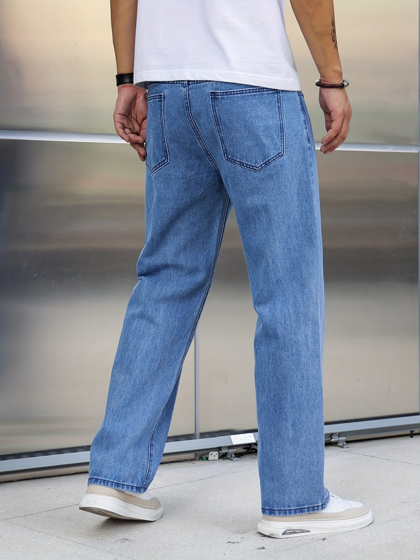 Loose Cotton Blend Men's Solid Wide Leg Pants, Men's Casual Denim Pants, All Seasons