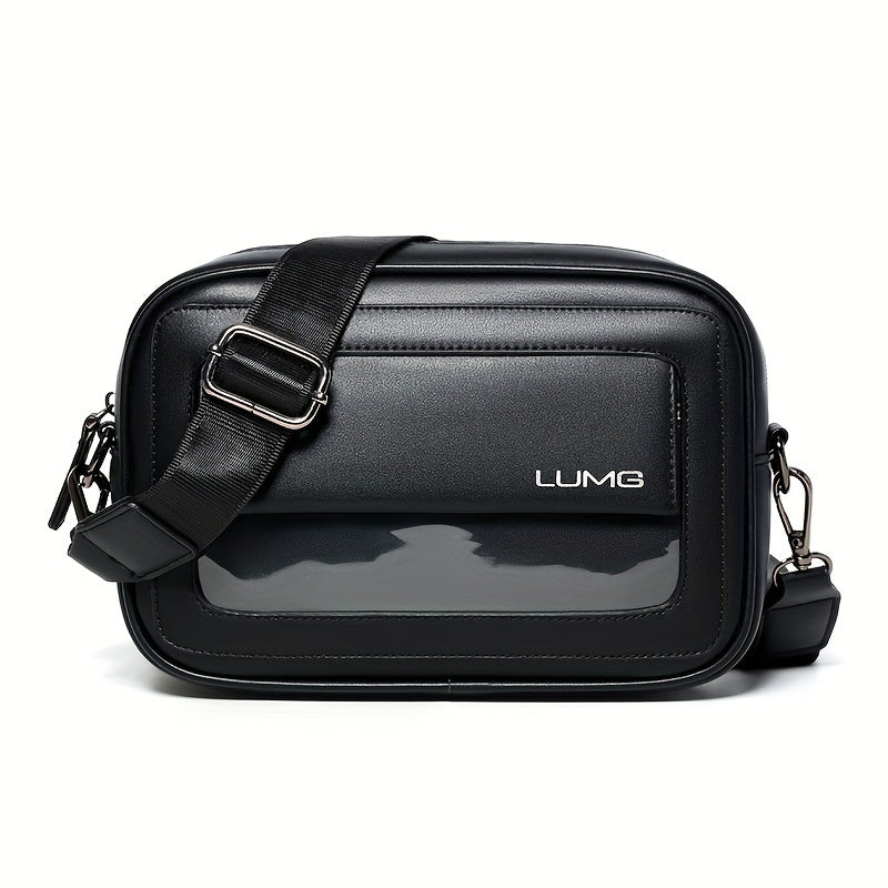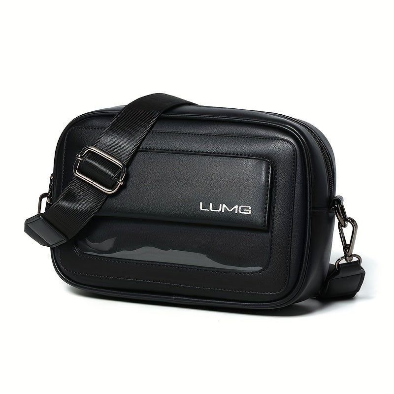 LUMG Fashion Faux Leather Crossbody Bag, Small Square Sling Shoulder Bag, Casual Messenger Chest Pack, Ideal for Valentine's Day Gift, Adult Birthday Present, Daily Commute - Adjustable Strap - Black