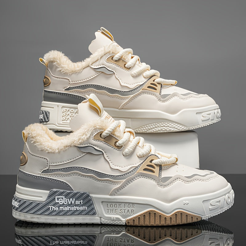 MAINALUN Men's Winter Ankle-High Low-Cut Snow Boots - Warm Lace-Up Traction Tires (PVC Sole) & Plush Collar, PU for Ice Walking, Jogging, - All-Terrain Black/White/Grey Casual Outdoor Shoes