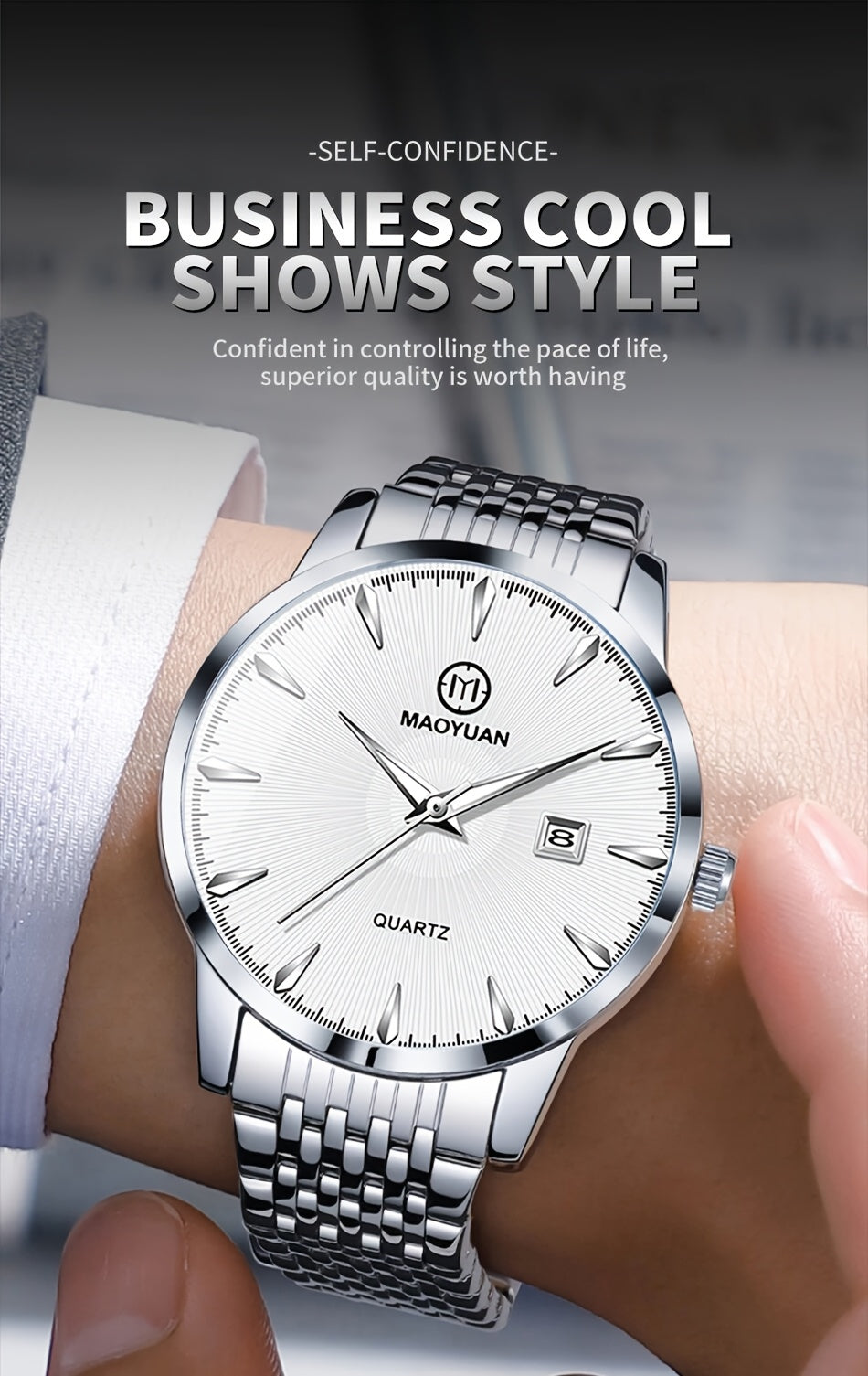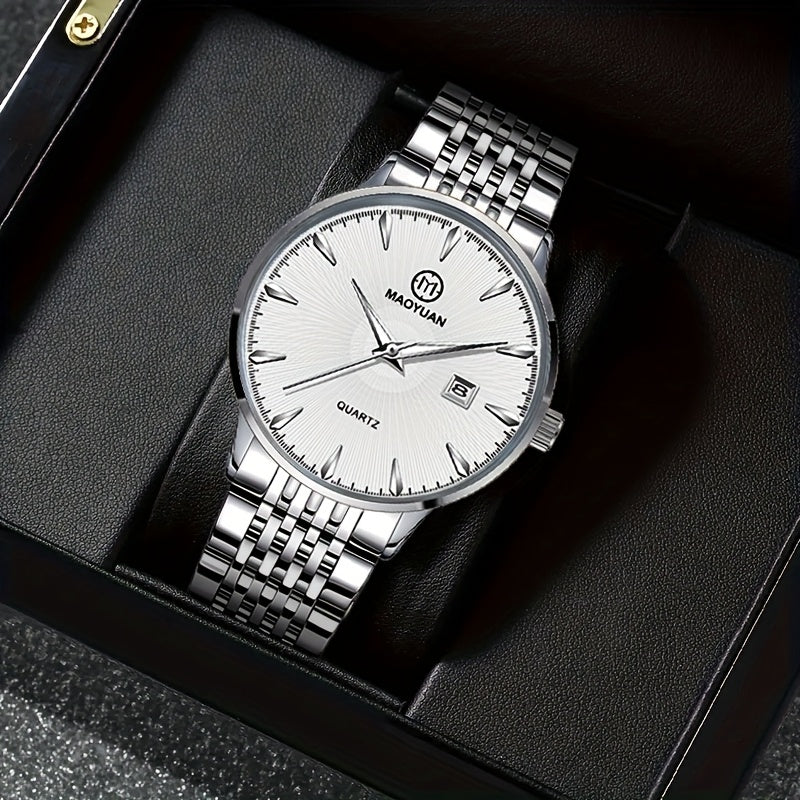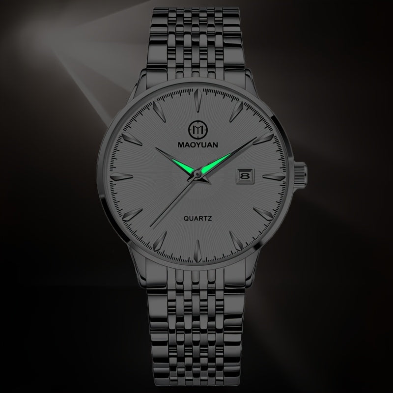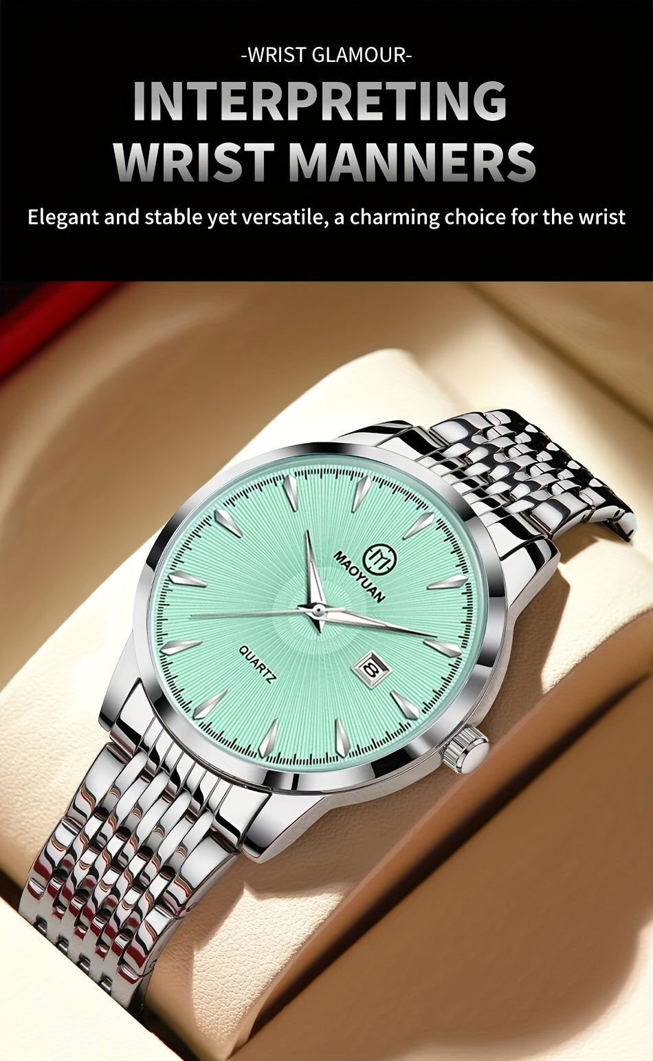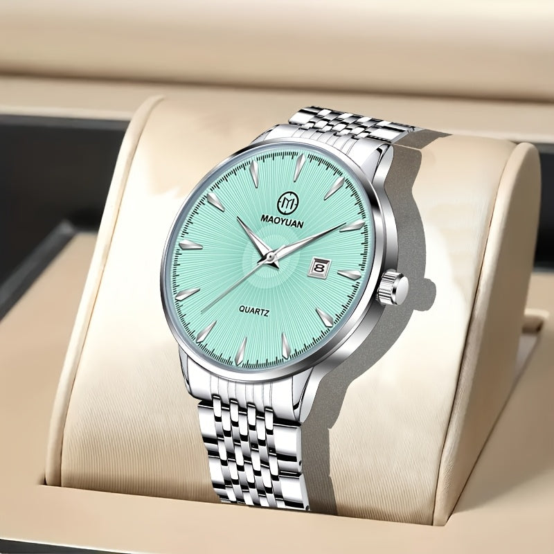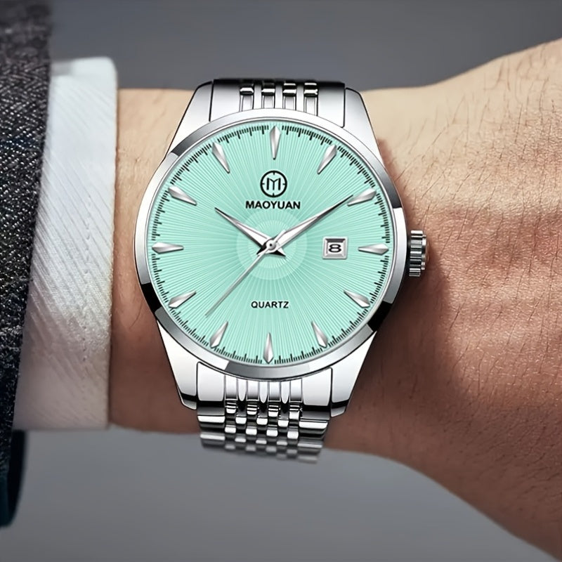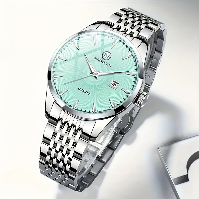 MAOYUAN Men'S Luxury Stainless Steel Quartz Watch with Date Display and Luminescent Hands - Elegant Green Dial, Metal Bracelet, Perfect for Business and Casual Attire, Ideal Gift for Men, Casual Watch | Elegant Watch | Quartz