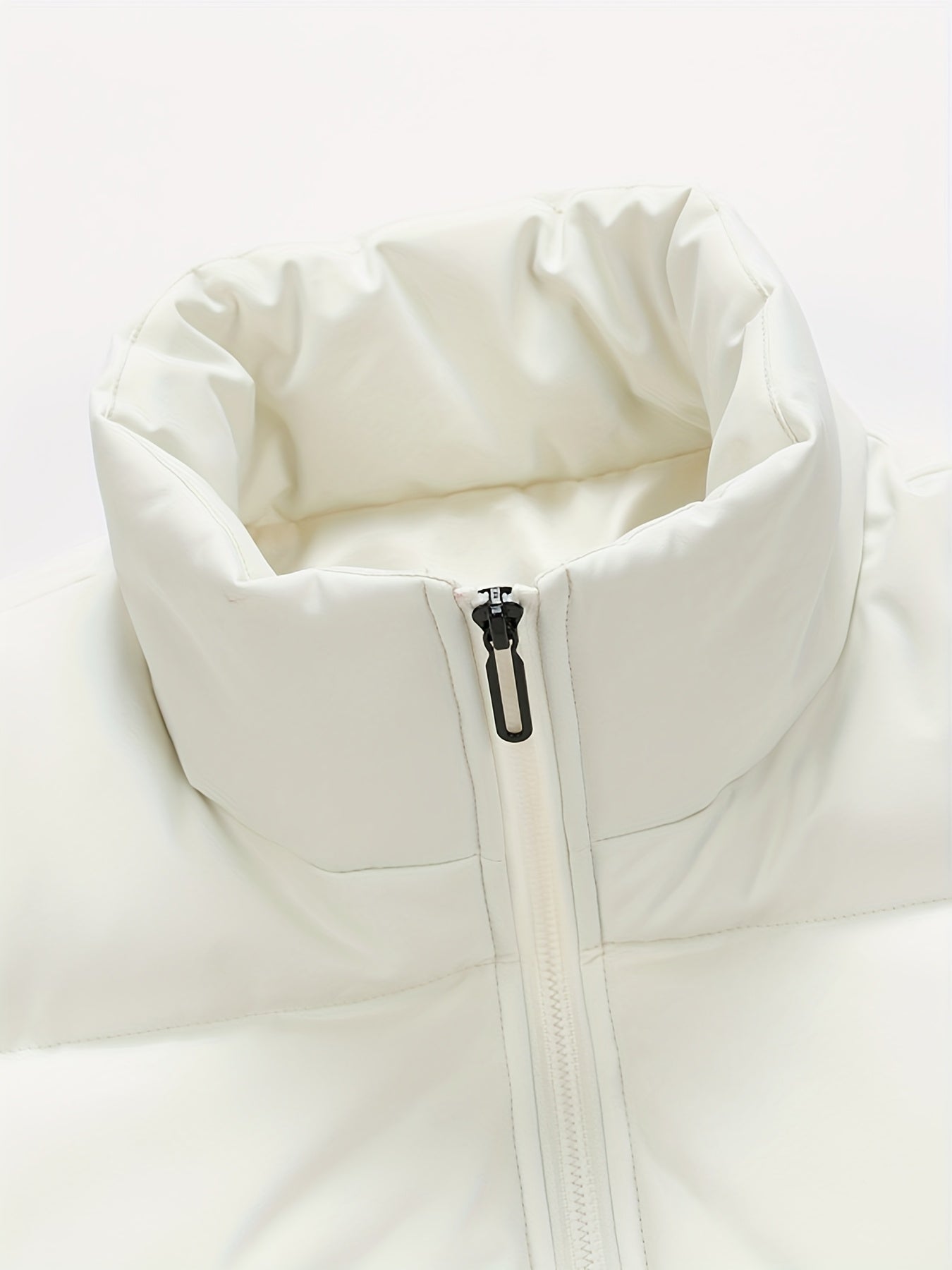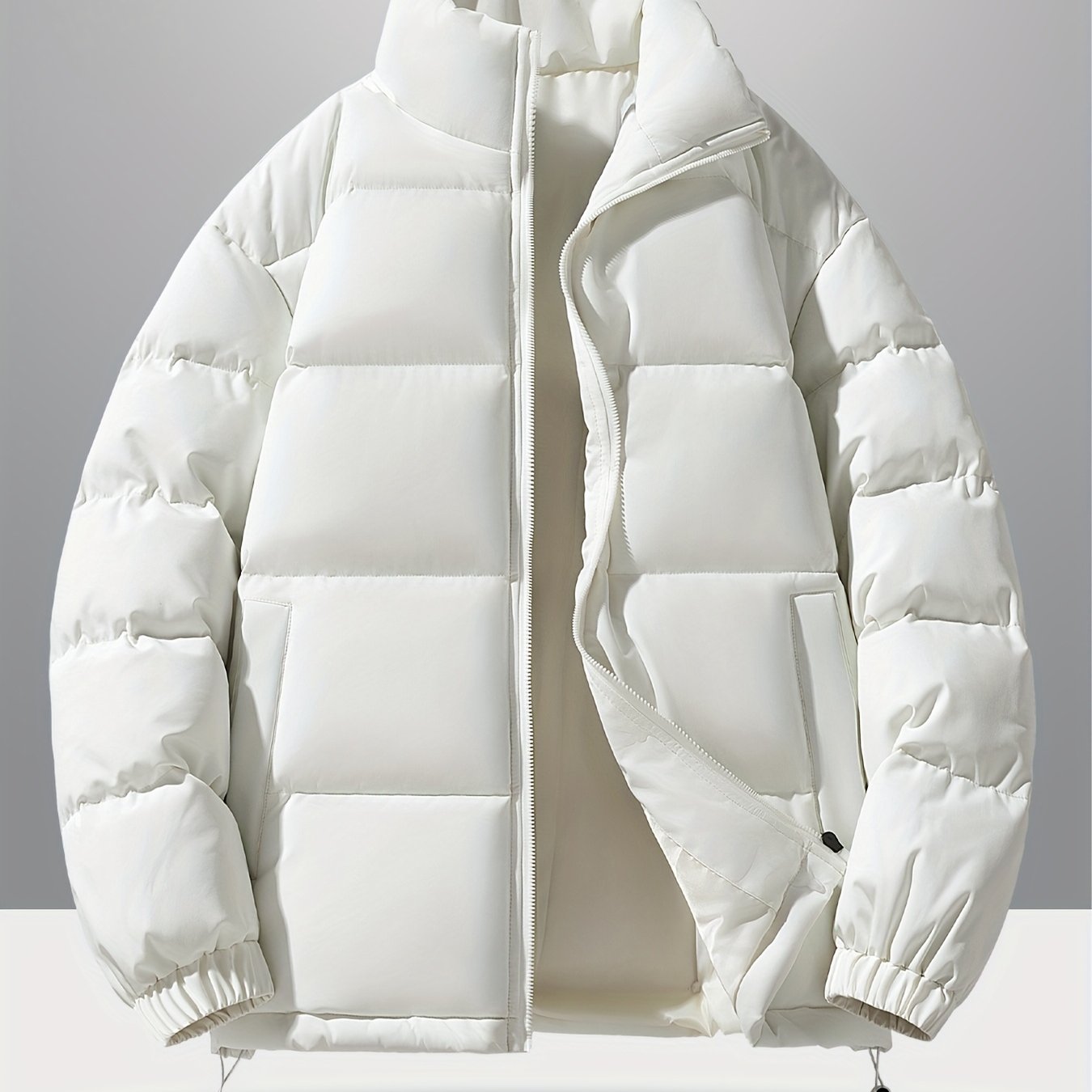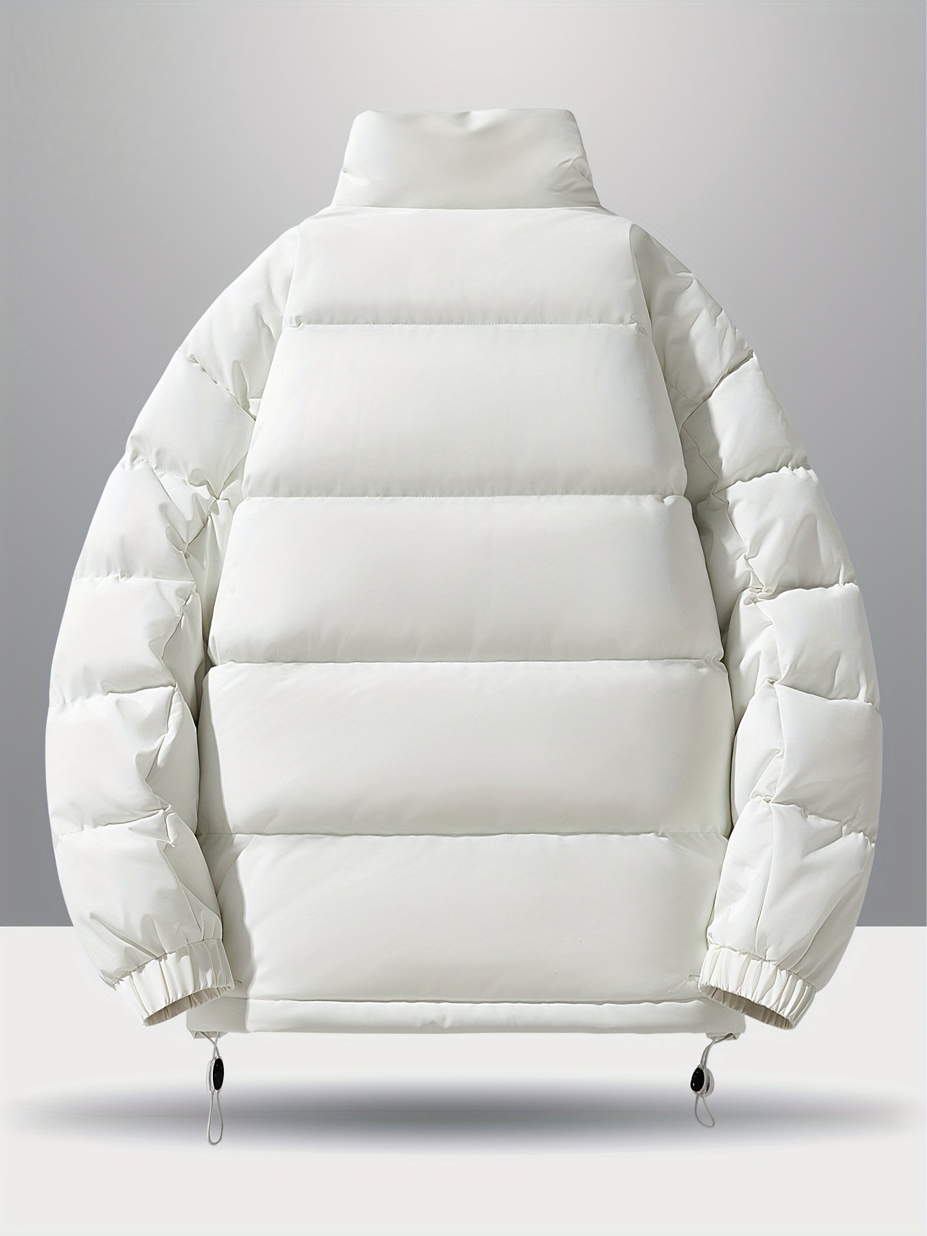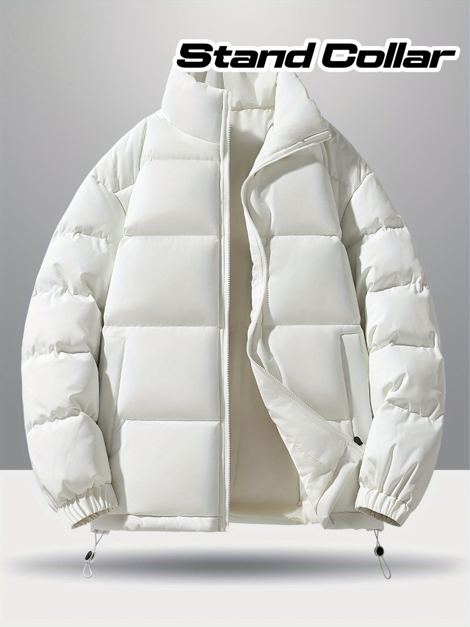 Men'S 2025 New Casual Jacket - Black, Stand Collar, Zip-Up, Long Sleeve, Polyester Filled, Winter Coat with Adjustable Drawstring Hood