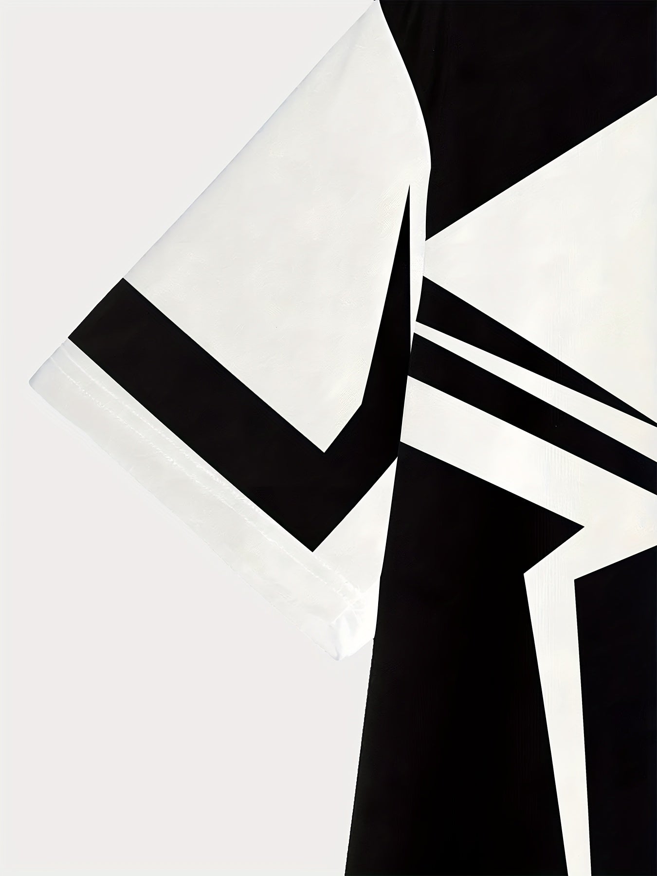 Men'S 3D Printed Short Sleeve T-Shirt - Stylish Black and White Geometric Design, Lightweight Polyester Fabric, Regular Fit Crew Neck for Casual Wear, Modern Apparel Geometric Pattern Shirt Lightweight Tshirt