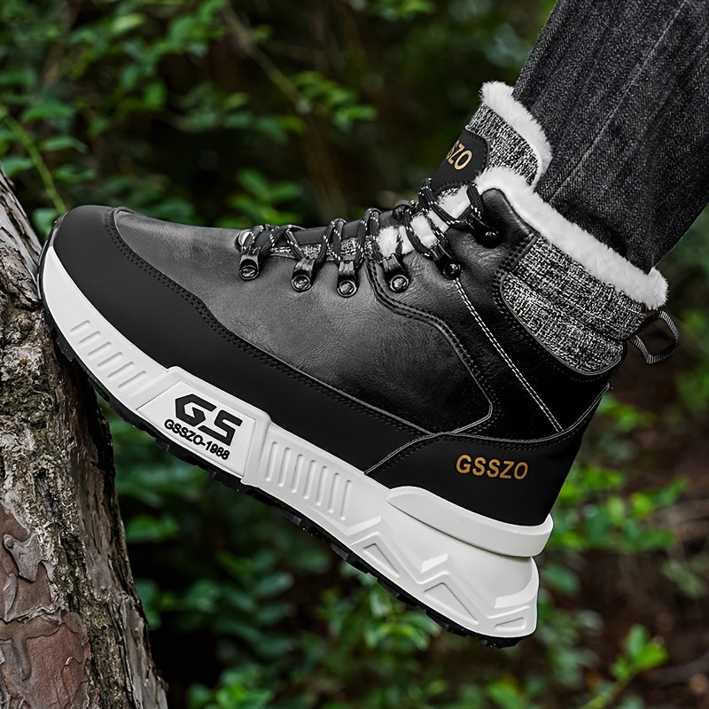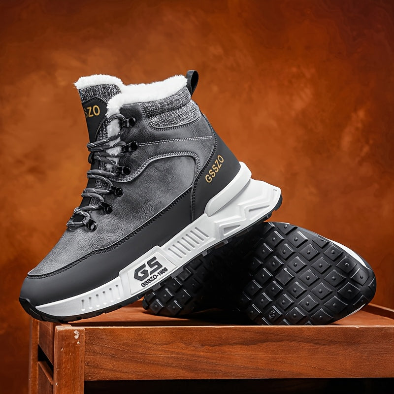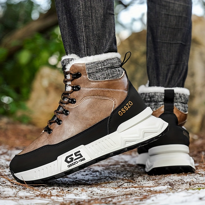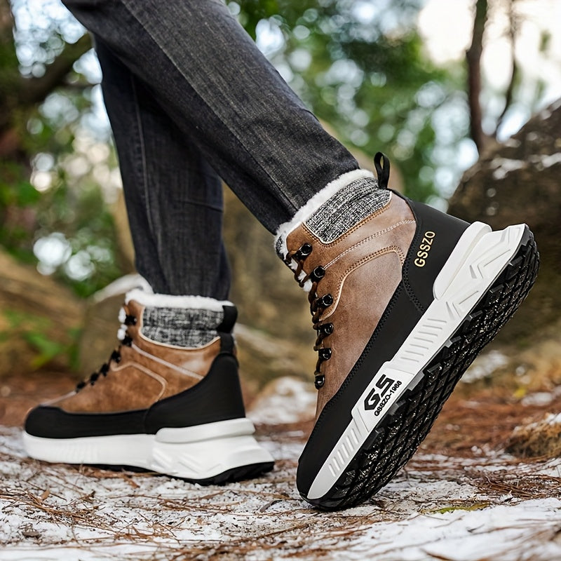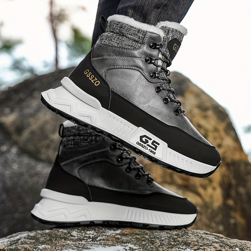 Men'S All-Season High-Top Ski Boots with Non-Slip Rubber Sole & Lace-Up Closure - Heavy-Duty Winter Hiking Boots with Arch Support, Durable Pu/fabric Construction For Snow, Ice, Mud - All-terrain Outdoor Boots For Training, C