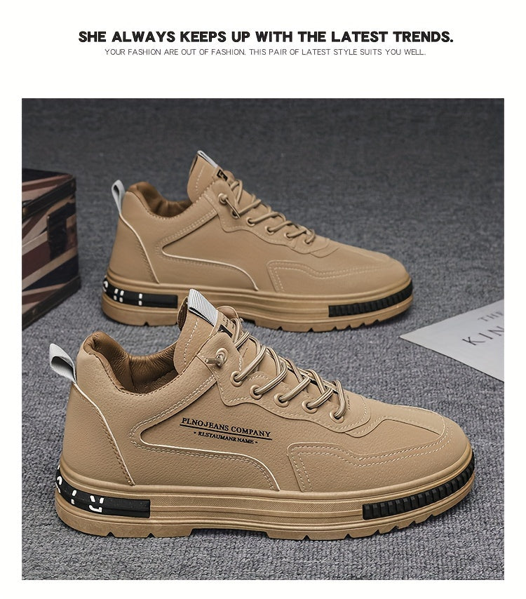 Men's All-Season Work Shoes - Anti-Slip, Durable, Breathable Low-Top Lace-Up Sneakers in Black with PU Upper & PVC Sole, Perfect for Casual & Outdoor Activities