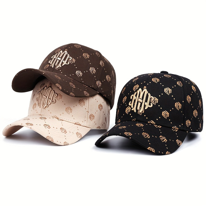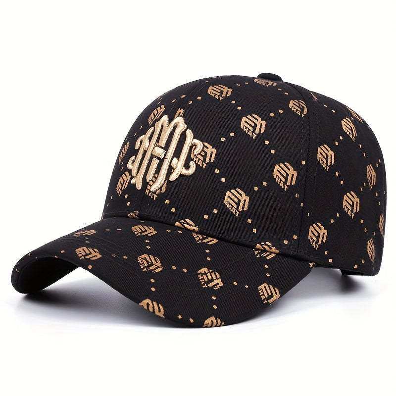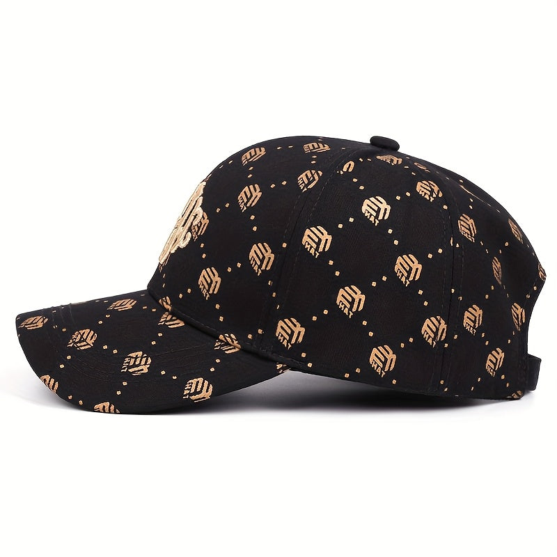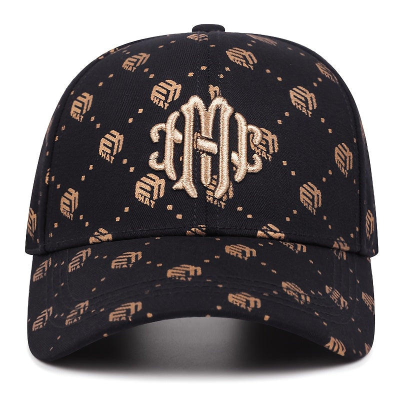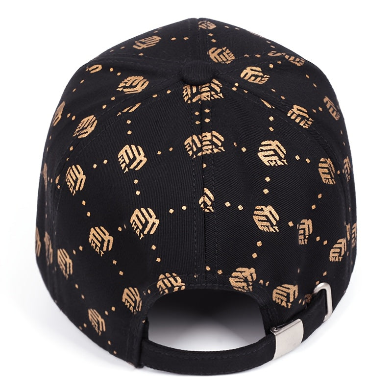 Men's Athletic Baseball Cap - Breathable Polyester, Adjustable Fit, "ATH" Logo, Beige & White with Golden Pumpkin Pattern, Dark Brown & Golden, Perfect for Outdoor Sports and Golf, Casual Wear Hat | Sporty Baseball Cap | Adju