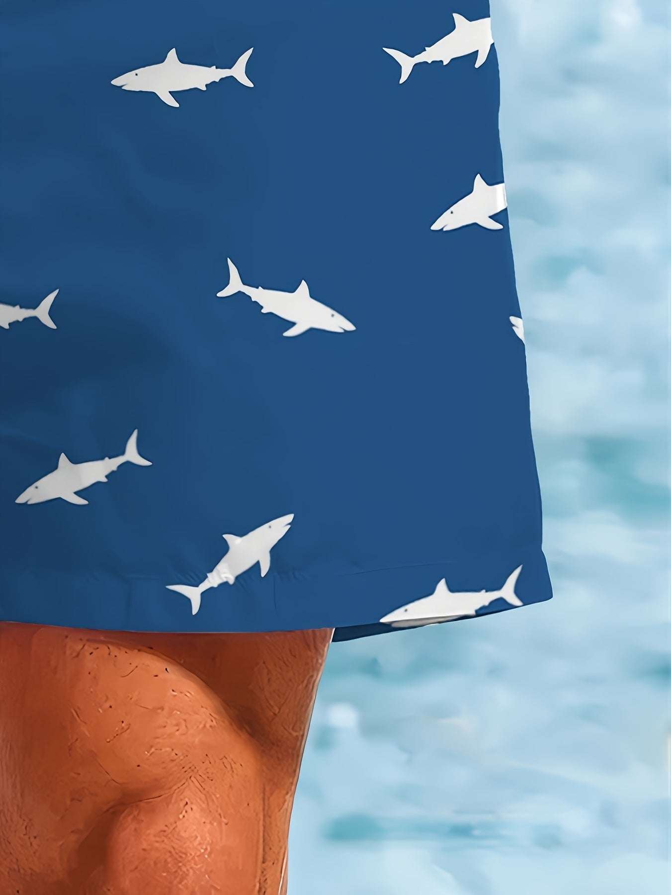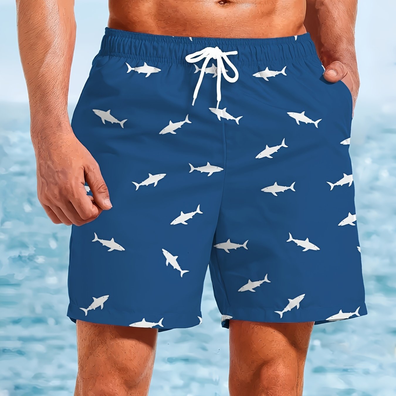 Men'S Beach Shorts Featuring a Group of Adorable Little Sharks in a High-Definition 3D Print, Quick-Drying Swim Trunks with Drawstring, Perfect for Summer Outdoor Activities, Beach Vacations, Swimming, And Surfing.