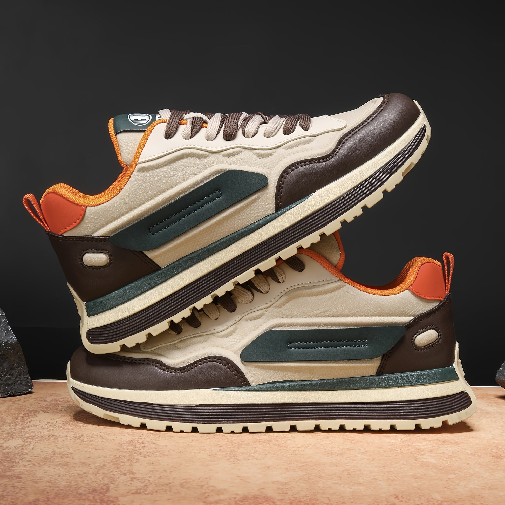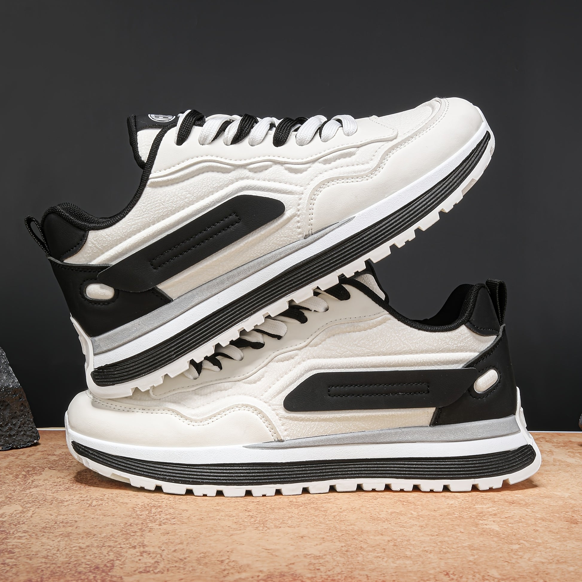 Men'S Breathable Lace-Up Sneakers - Color Block Design, Thick Sole, Casual Athletic Shoes for Casual Attire, Low-Top Style, Lace-Up Closure, PVC Sole, Fabric Inner, Round Toe, Faux Upper, Available in Black, Gray, Blue, Green
