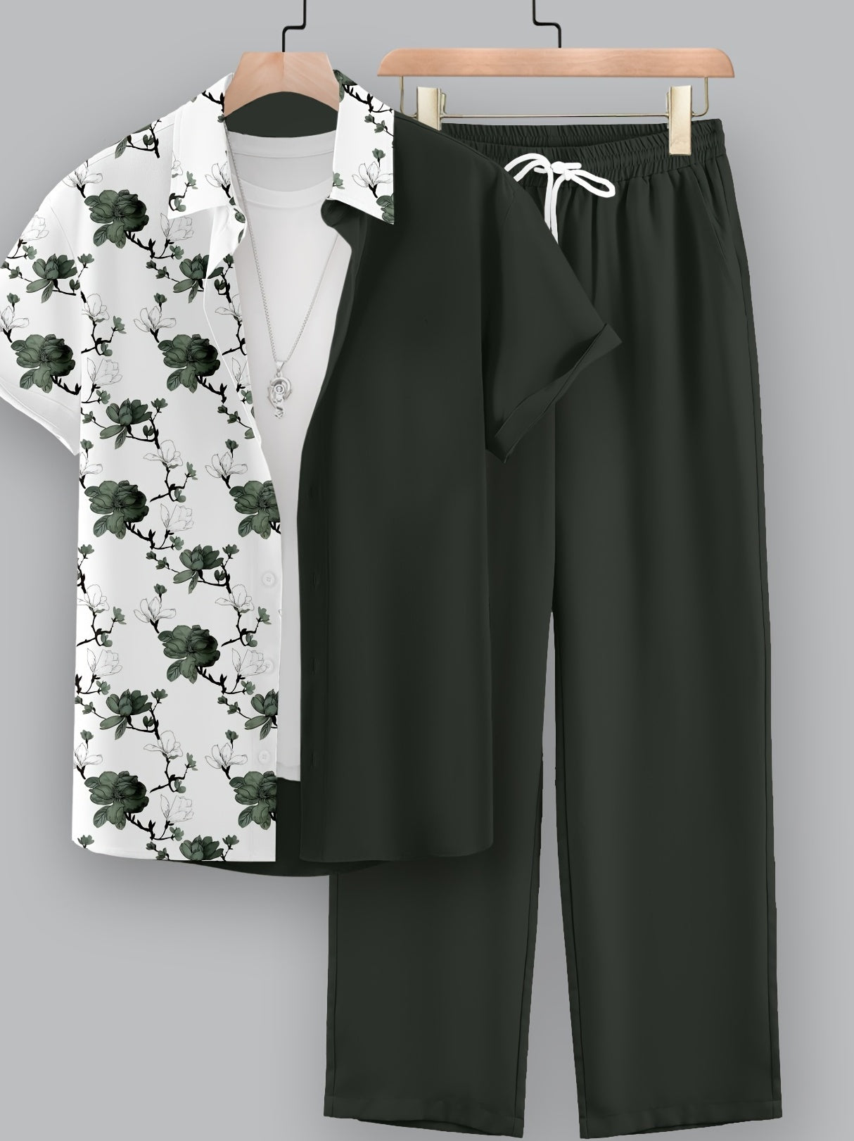 Men's Casual 2-Piece Set, Random Print Short Sleeve Shirt And Drawstring Pants, Regular Fit, Casual Beach Vacation Outfit