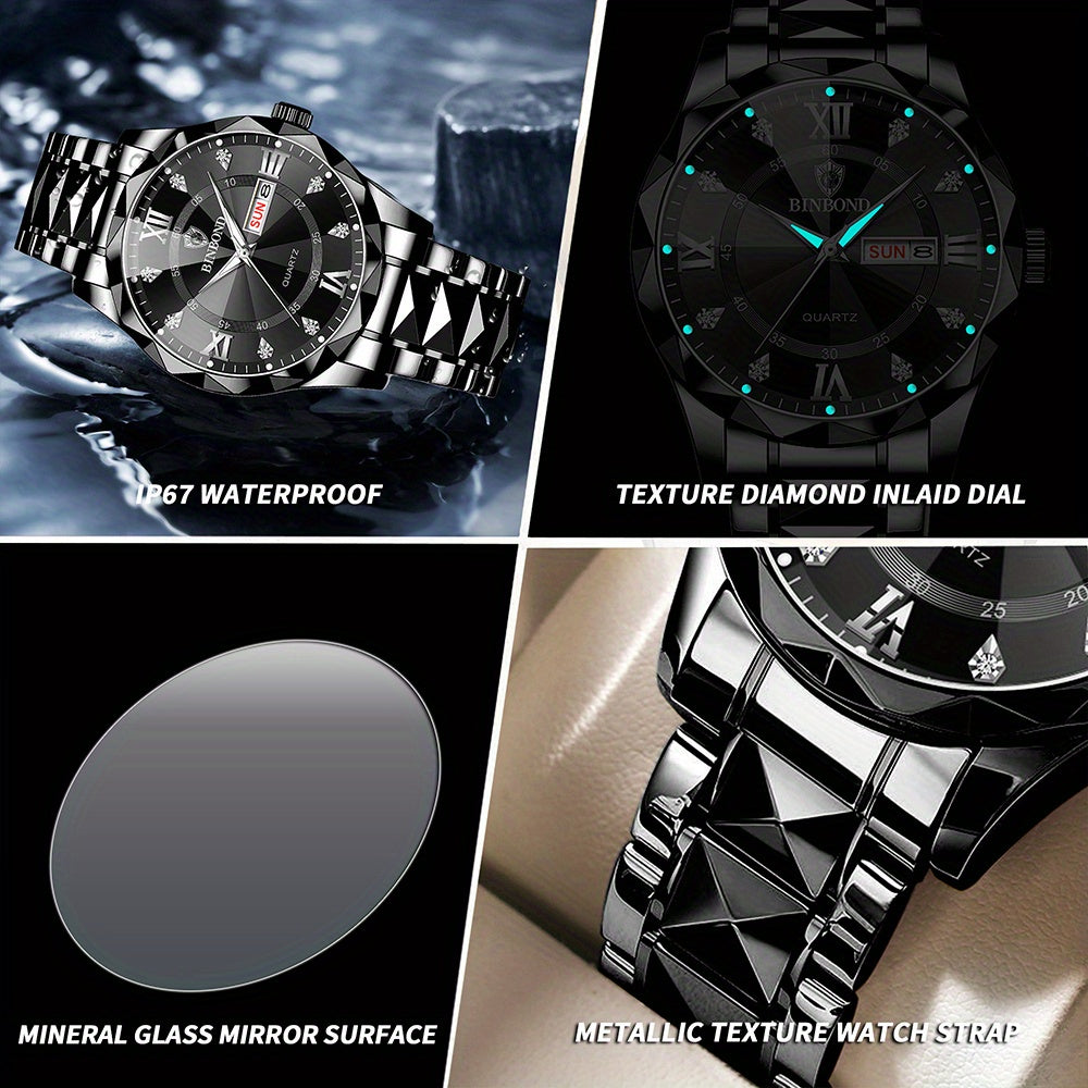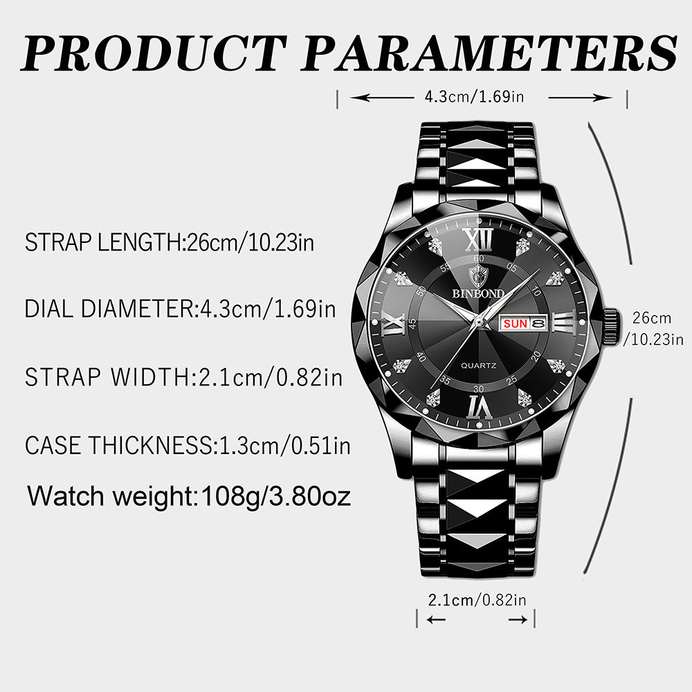 Men'S Casual Business Waterproof Date Quartz Watch with Luminous Hands and Dial - Stainless Steel Band, IP67 Rating, Date Display, Casual Business Watch | Minimalist Watch | Quartz Movement